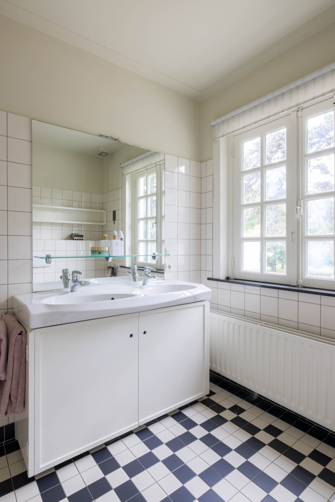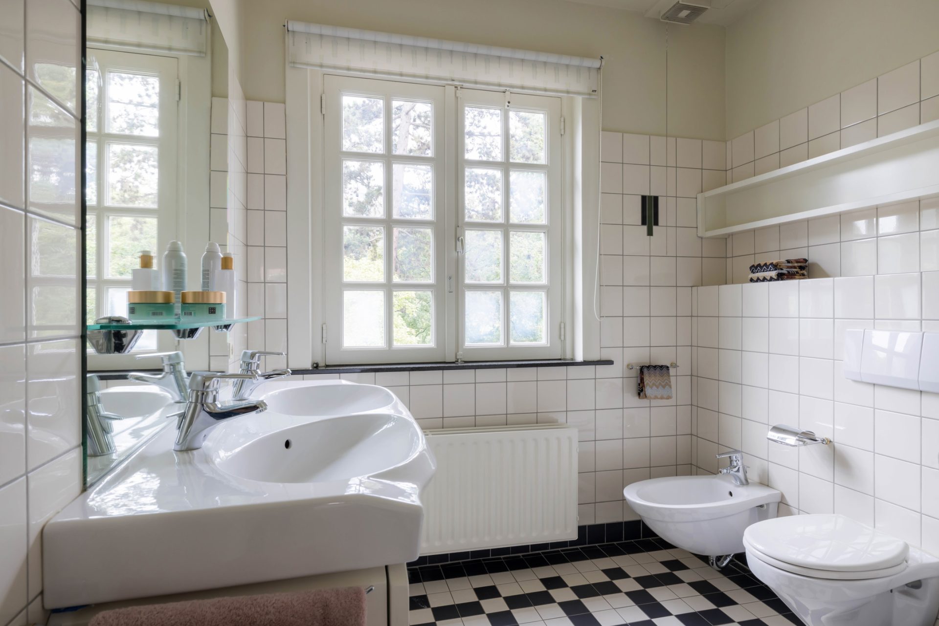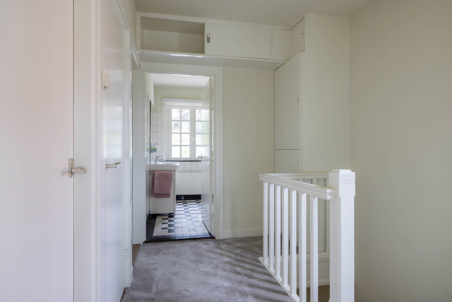 Op de eerste verdieping zijn drie slaapkamers en de badkamer. De badkamer in klassieke stijl is ingedeeld met een dubbel wastafelmeubel, inloopdouche, toilet en een bidet. Vanuit de slaapkamer aan de voorzijde heeft u prachtig uitzicht naar het plantsoen en aan de achterzijde zijn twee slaapkamers, waarvan een met een heerlijk dakterras, waar u ultiem kan genieten van de zon.