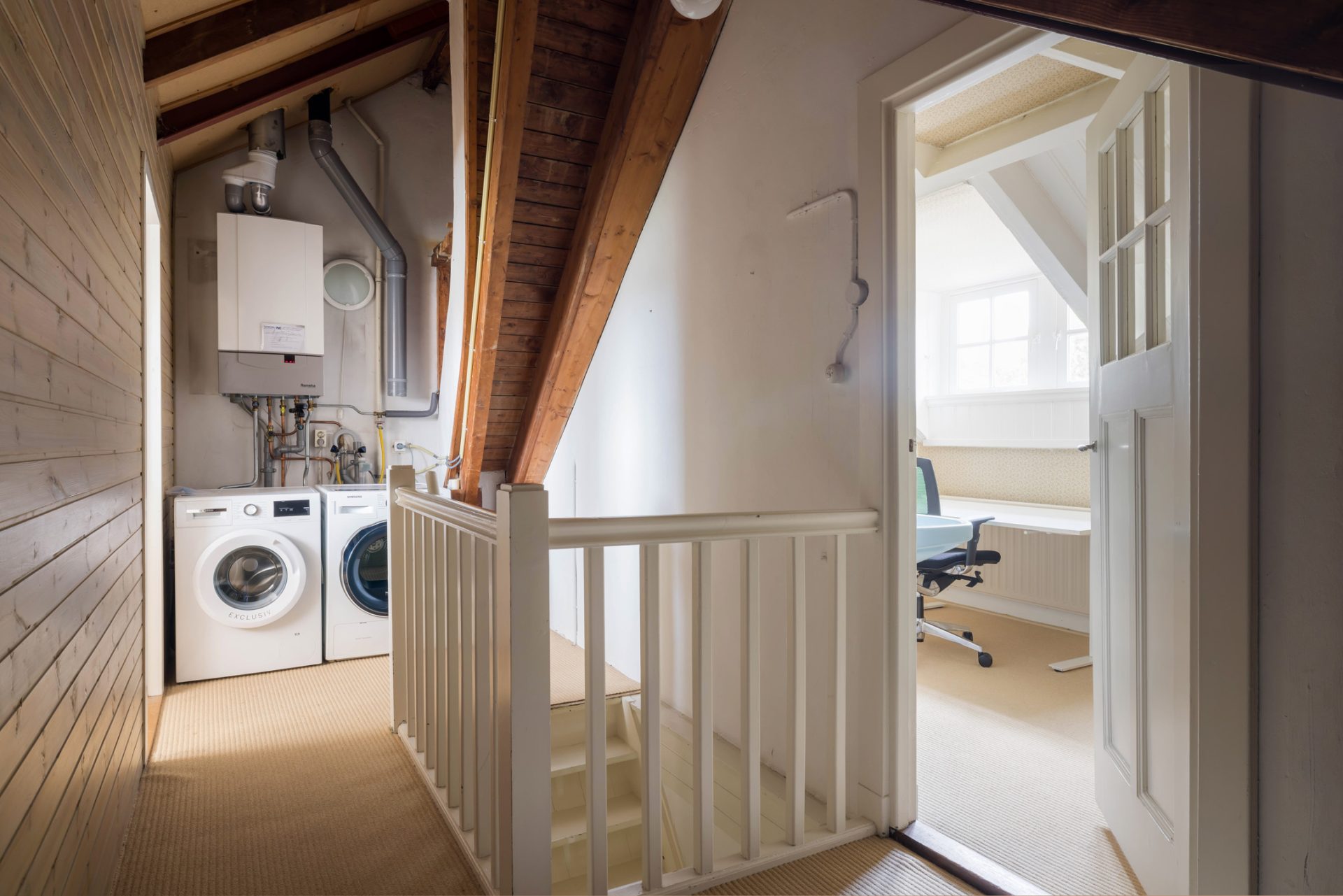 Er is een vaste trap naar de tweede verdieping, waar nog twee slaapkamers zijn. Op de overloop, bij de cv-ketel, is ruimte voor de wasapparatuur. Beide slaapkamers zijn voorzien van een dakkapel en wastafel. Met een herindeling is het mogelijk om een ruime master bedroom met badkamer te realiseren.
