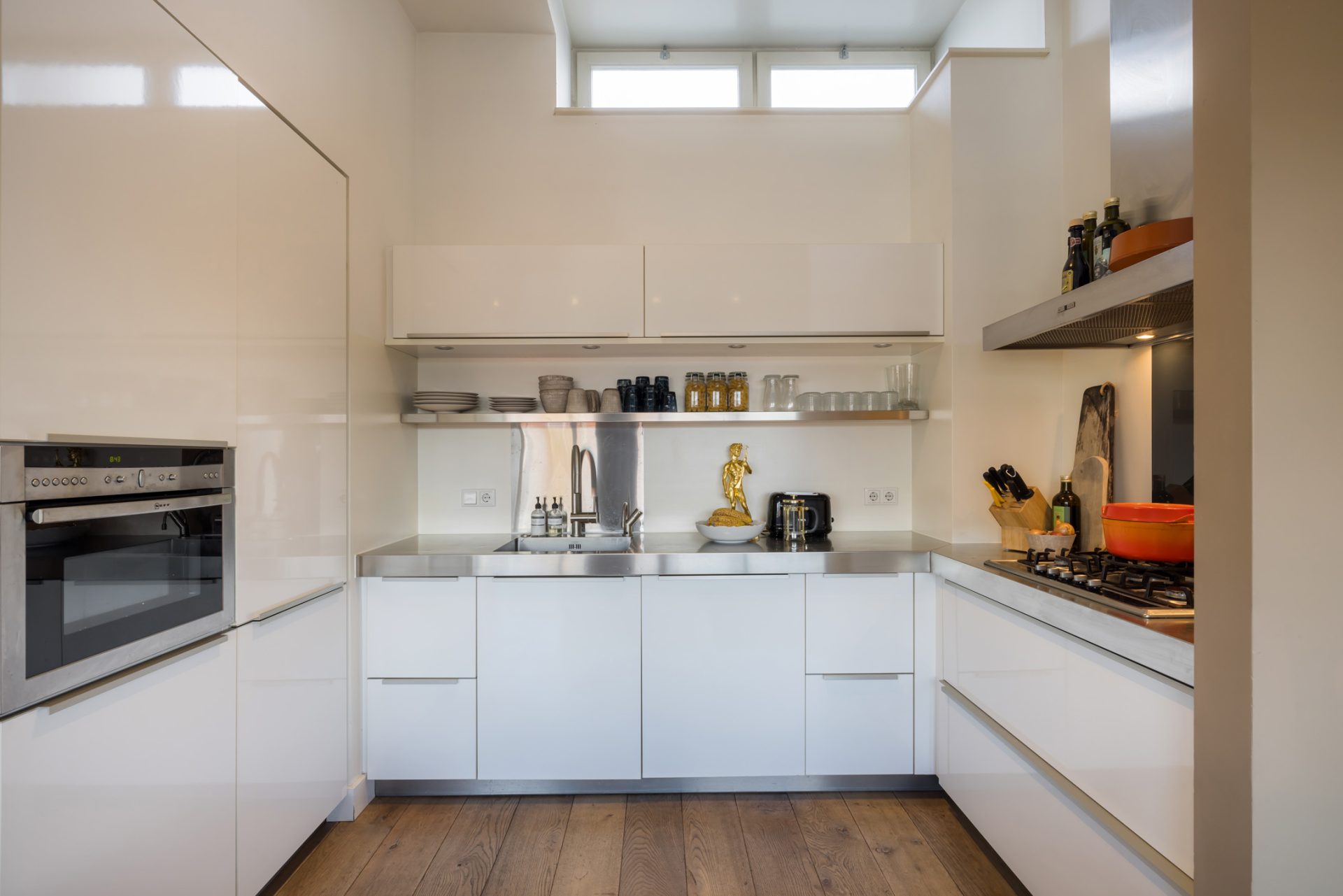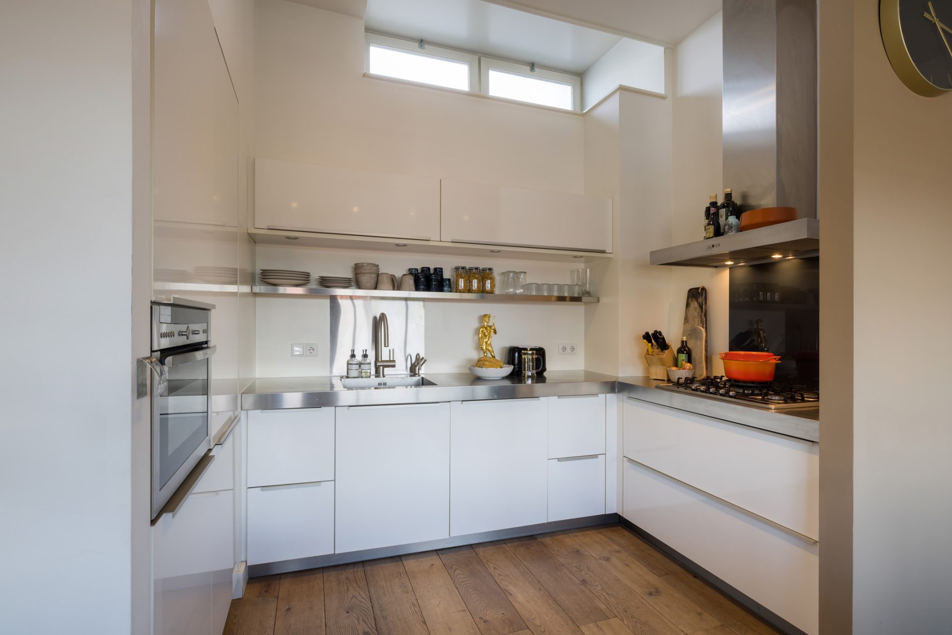 In de keuken is, met het plaatsen van een U-opstelling, de ruimte goed benut. Deze keuken heeft een rvs blad en alle benodigde apparatuur is ingebouwd: een 5-pits gaskookplaat, afzuigkap, vaatwasser, combi-oven, koelkast en een vriezer.