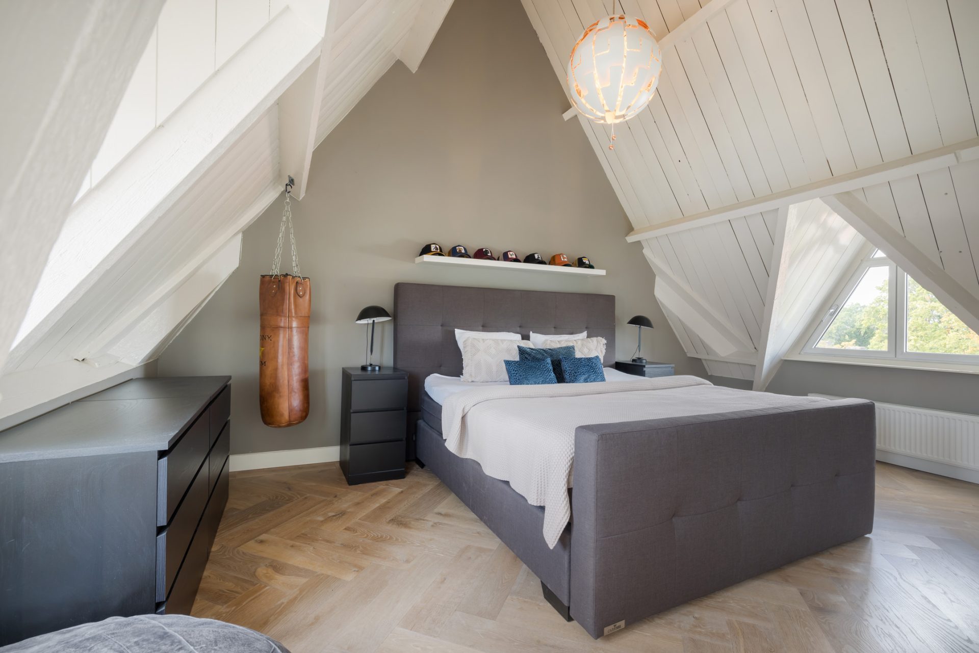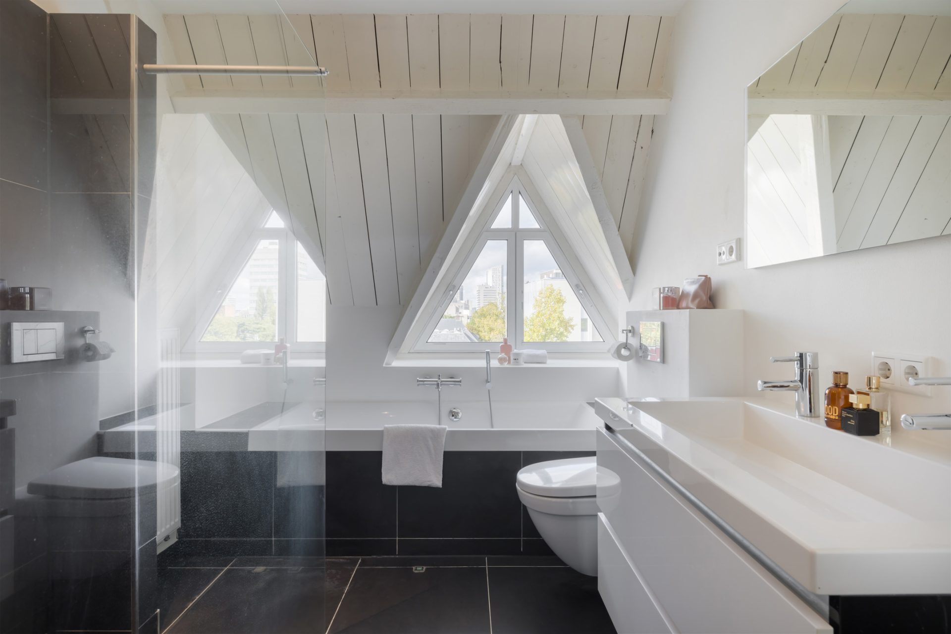 De sfeervolle master bedroom heeft een apart kleedgedeelte en vanuit de tweede slaapkamer, ingericht als kinderkamer, is een wasruimte/berging te bereiken. Beide slaapkamers zijn, net als de badkamer, voorzien van een fraai vormgegeven dakkapel aan de achterzijde. In de badkamer heb je de beschikking over een ligbad, inloopdouche, tweede toilet en een breed wastafelmeubel.