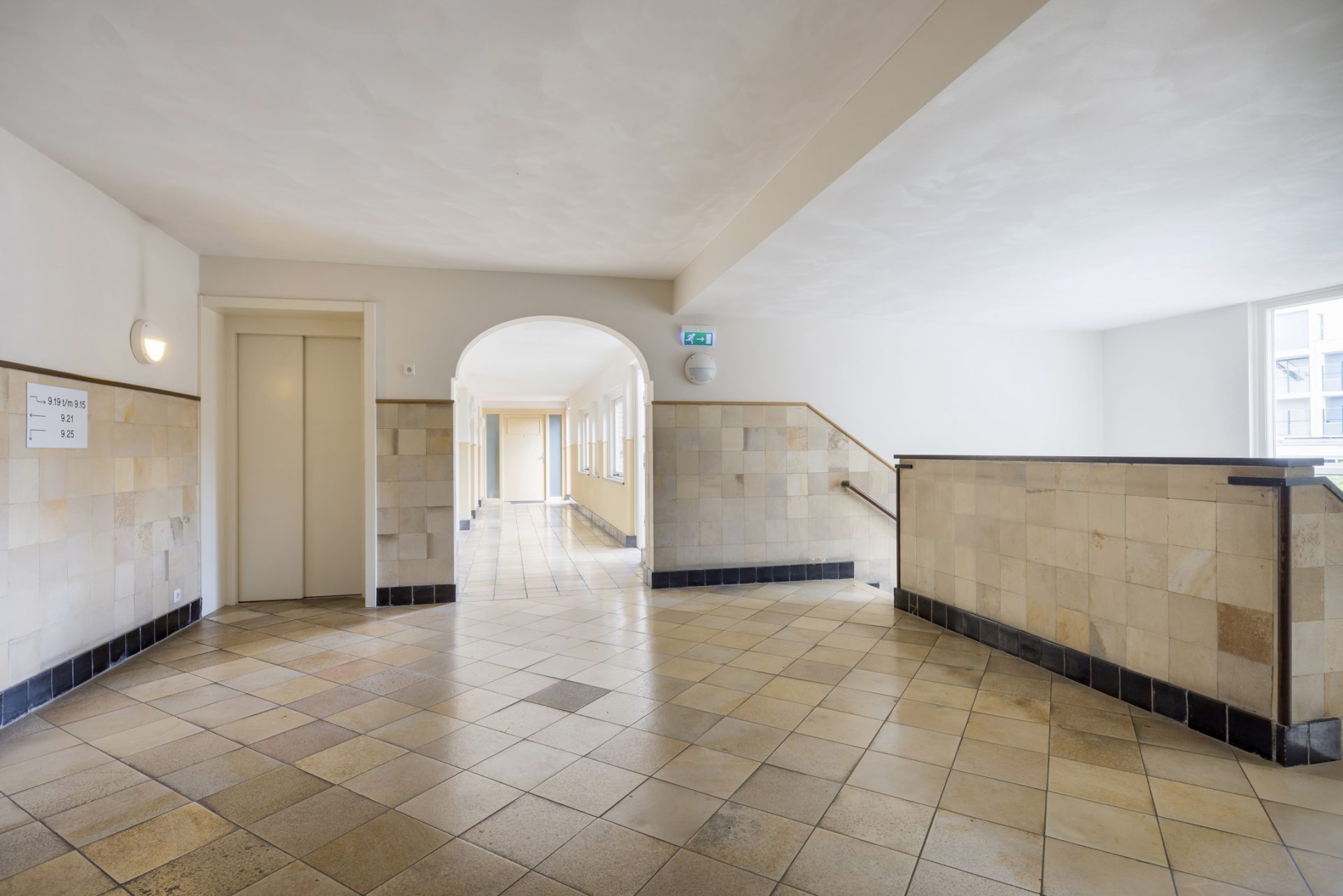 Bij de centrale entree zijn de brievenbussen en de video-intercom, waardoor je vanuit de maisonnette kunt zien wie aanbelt bij nummer 9-19. Met de trap of lift ga je naar de tweede verdieping, waar een brede gang je naar de voordeur leidt.