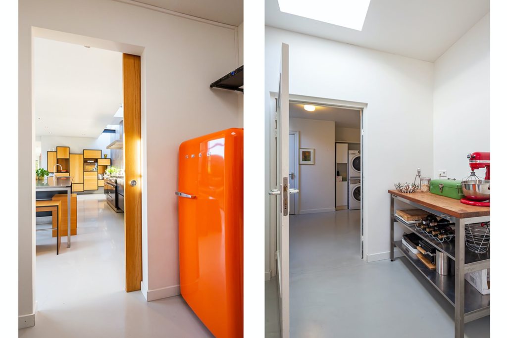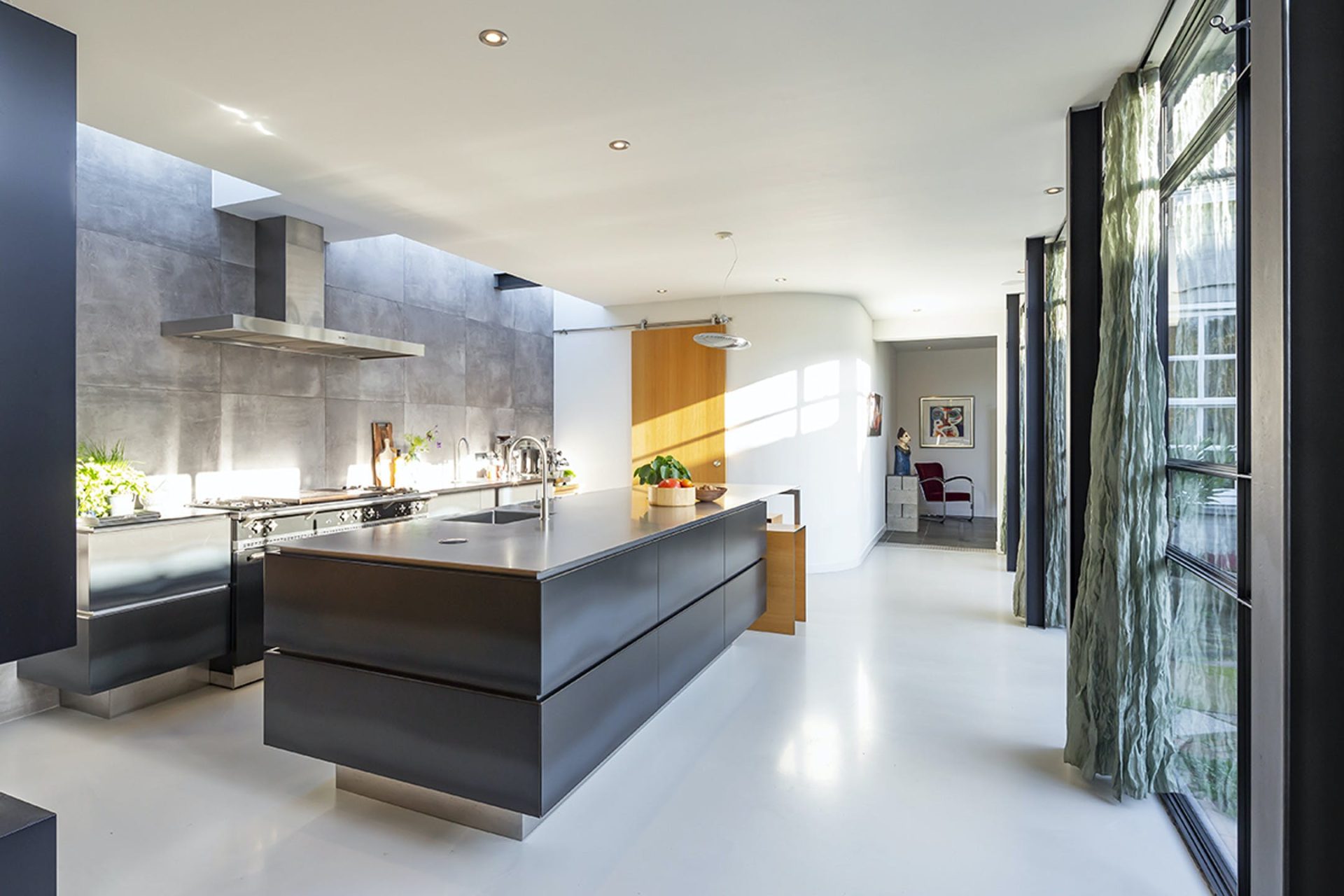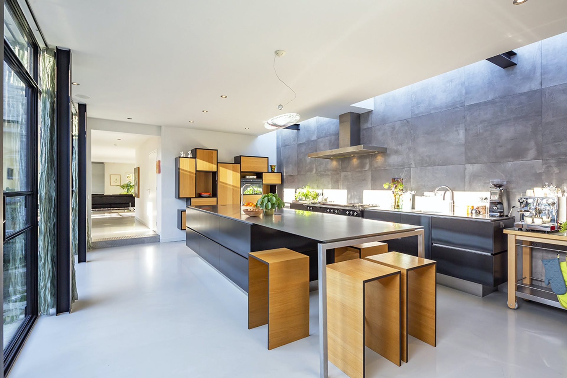 De eetkamer is een stijlvolle ruimte met op maat gemaakte kasten, voorzien van paneeldeuren in een mooie kleurstelling. Er is genoeg ruimte voor een grote eettafel waar u kunt dineren met fraai uitzicht naar de achtertuin. Een scherp contrast is de zeer moderne keuken met een lichtstraat, grote ramen en openslaande tuindeuren. Het grote eiland, de wandopstelling met stijlvol fornuis en de kastenwand trekken direct uw aandacht. Via een portaal is een bijkeuken/wasruimte bereikbaar. In de bijkeuken is een deur naar de wijn-/provisiekelder.