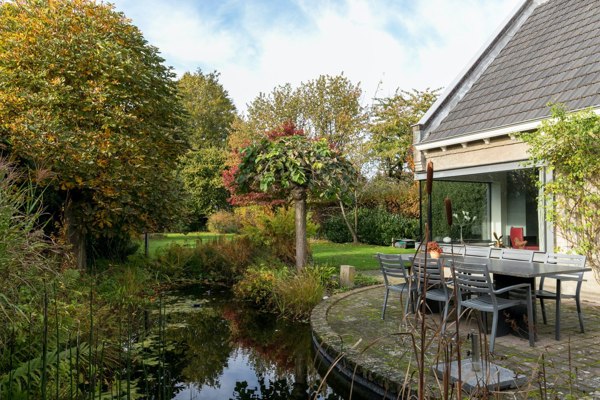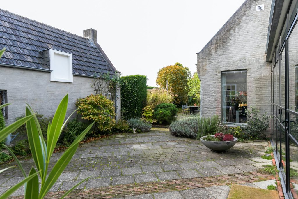 Aan de voorzijde is de inpandige garage, geschikt voor uw (klassiek) auto en de fietsen. In de achtergevel van de garage ziet u openslaande deuren naar een overkapping en de tuin. De aangrenzende berging is een zeer geschikte ruimte voor het tuin-/klusgereedschap.