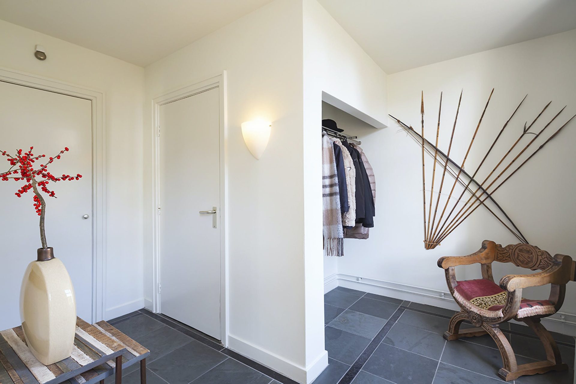 Boven de eerste verdieping van het voorhuis is een bergvliering, te bereiken via een vlizotrap.