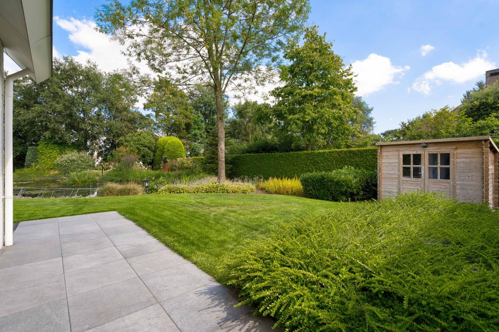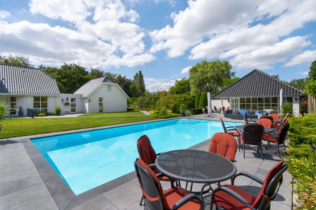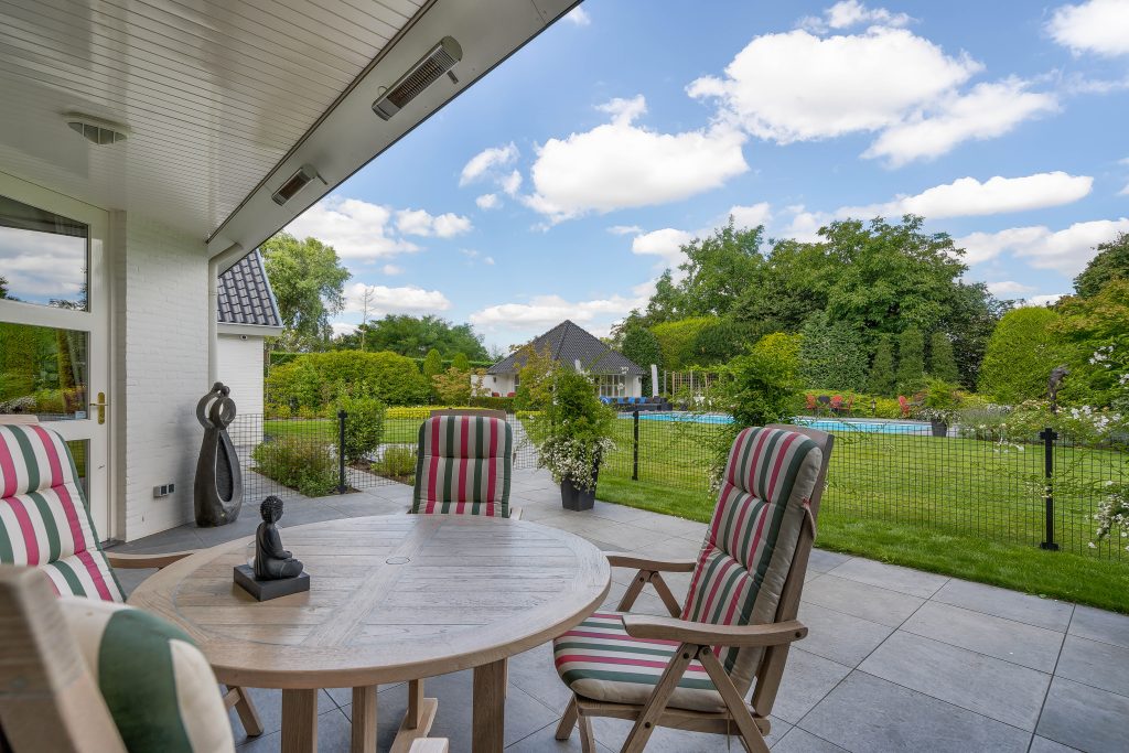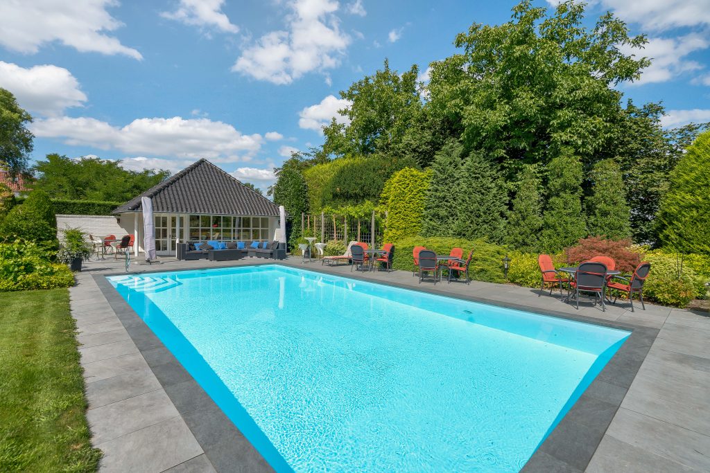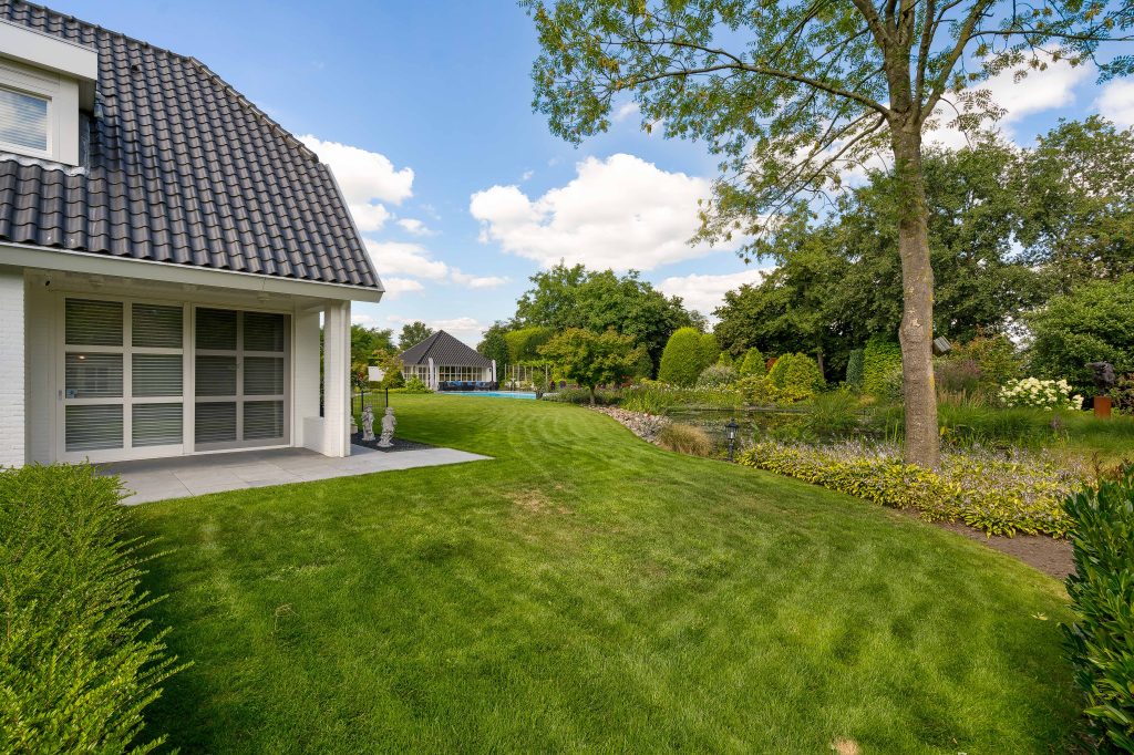 De tuin rondom de woning is een oase van ontspanning. Naast een verwarmd zwembad met een solardek en jetstreams, is er een vrijstaand bijgebouw dat dienst doet als poolhouse. Dit bijgebouw is volledig onderkelderd en beschikt over een bar en een wellnessruimte met sauna, whirlpool en dompelbad. Het poolhouse is de perfecte aanvulling voor wie houdt van een luxueuze spa-ervaring aan huis.