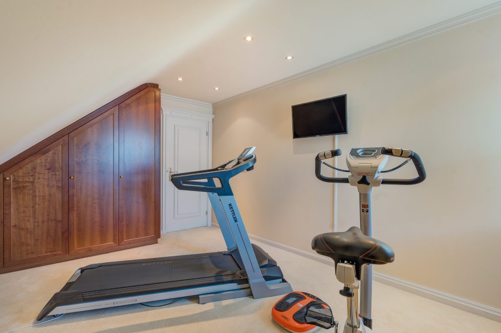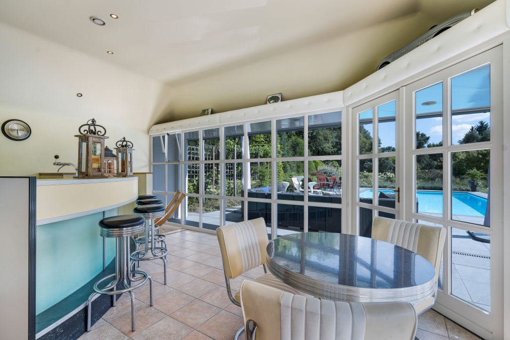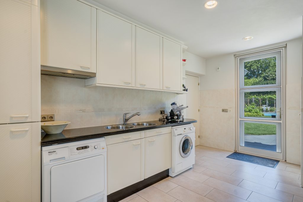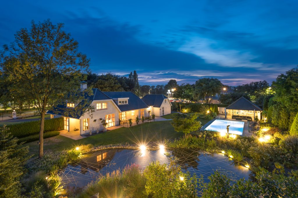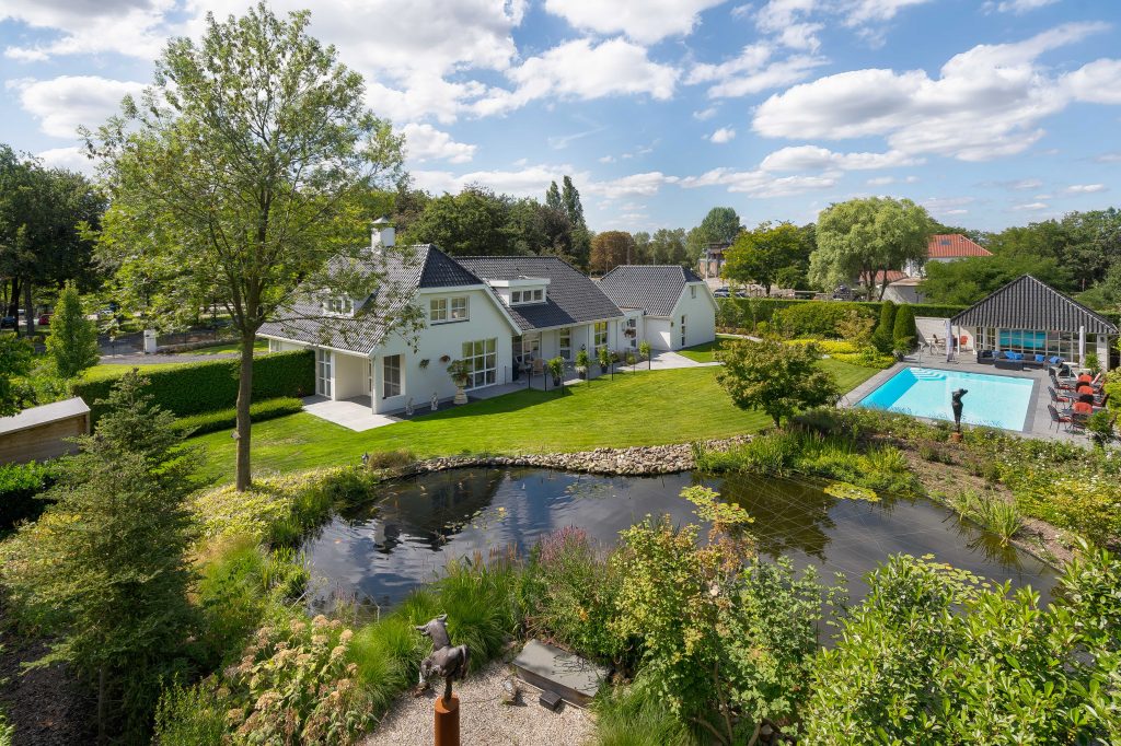 De tuin rondom de woning is een oase van ontspanning. Naast een verwarmd zwembad met een solardek en jetstreams, is er een vrijstaand bijgebouw dat dienst doet als poolhouse. Dit bijgebouw is volledig onderkelderd en beschikt over een bar en een wellnessruimte met sauna, whirlpool en dompelbad. Het poolhouse is de perfecte aanvulling voor wie houdt van een luxueuze spa-ervaring aan huis.
