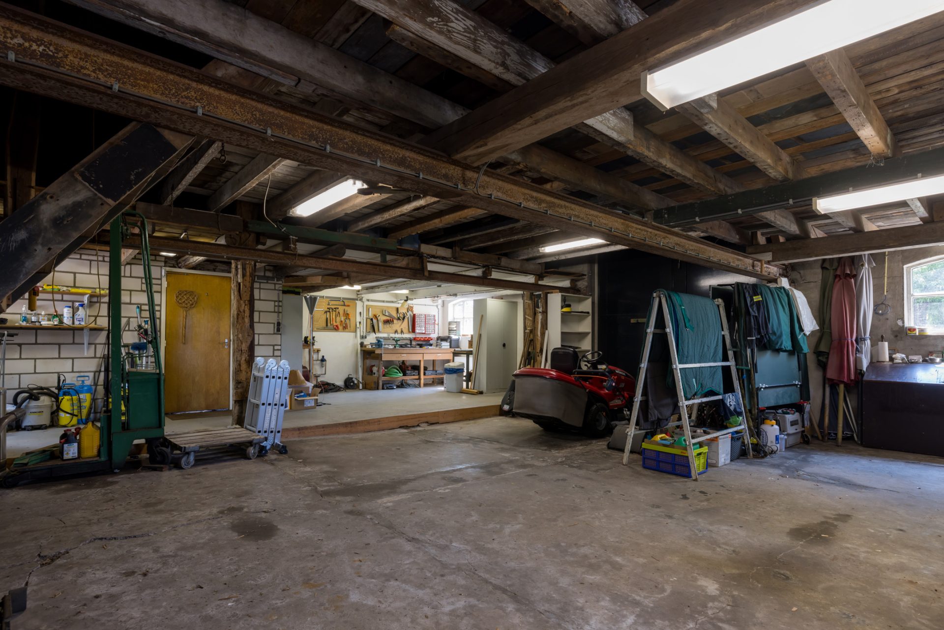 Een deel van de boerderij aan de straatzijde wordt momenteel gebruikt als inpandige werkschuur met 3 grote openslaande deuren, en is ideaal voor uw hobby’s, zoals bijvoorbeeld het onderhoud van uw oldtimer.