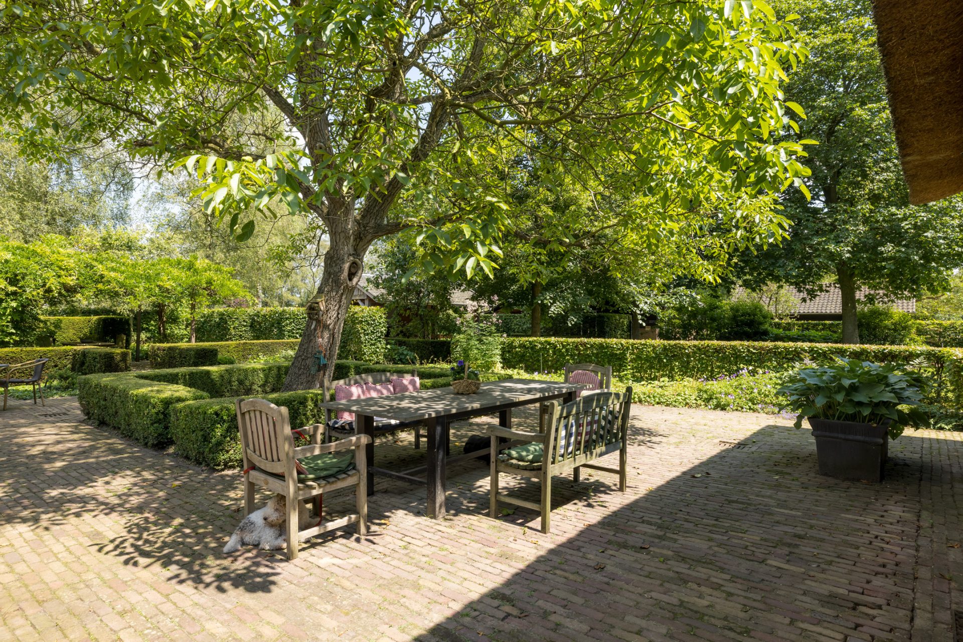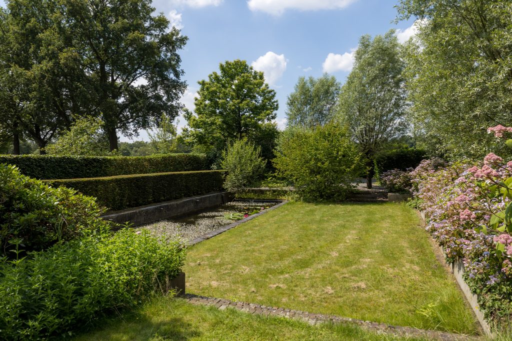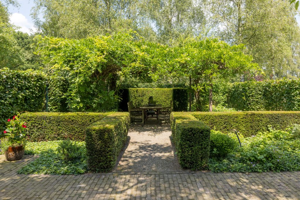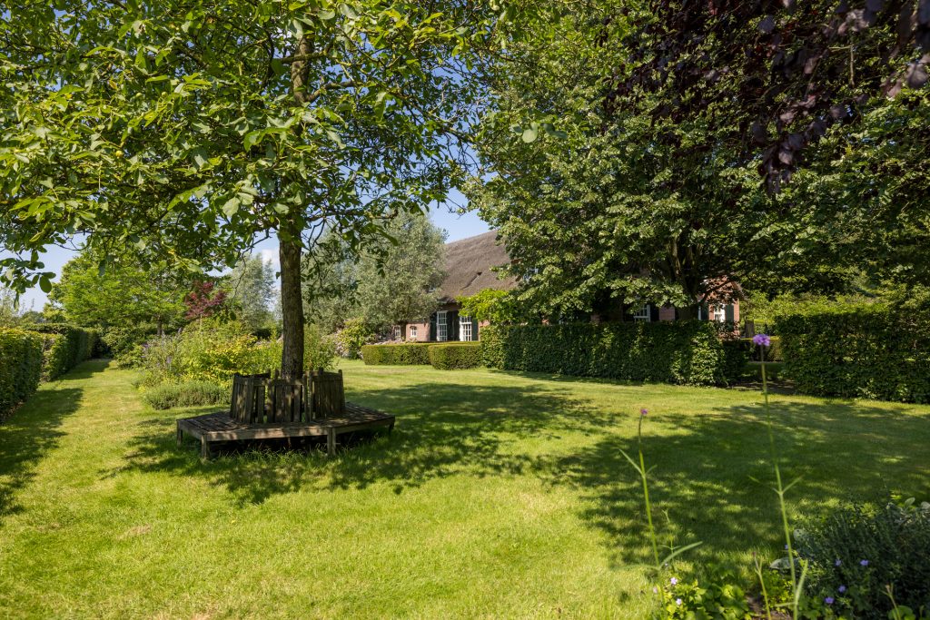 De boerderij wordt omringd door een prachtige tuin met een eigen appelboomgaard en een op het zuiden gelegen visvijver. Een smaakvolle overkapping met haard ontbreekt natuurlijk niet, perfect om lange zomeravonden door te brengen. De tuin is volledig omheind met een Heras hekwerk met een van 1.5 meter. Hierdoor kunnen huisdieren of erf niet af.