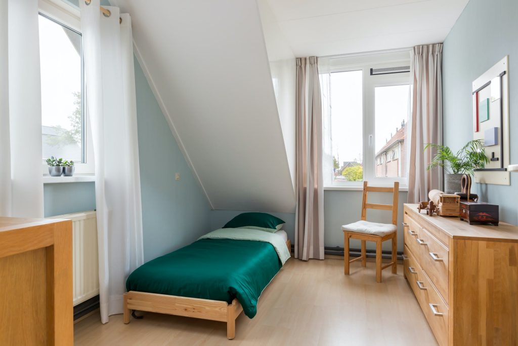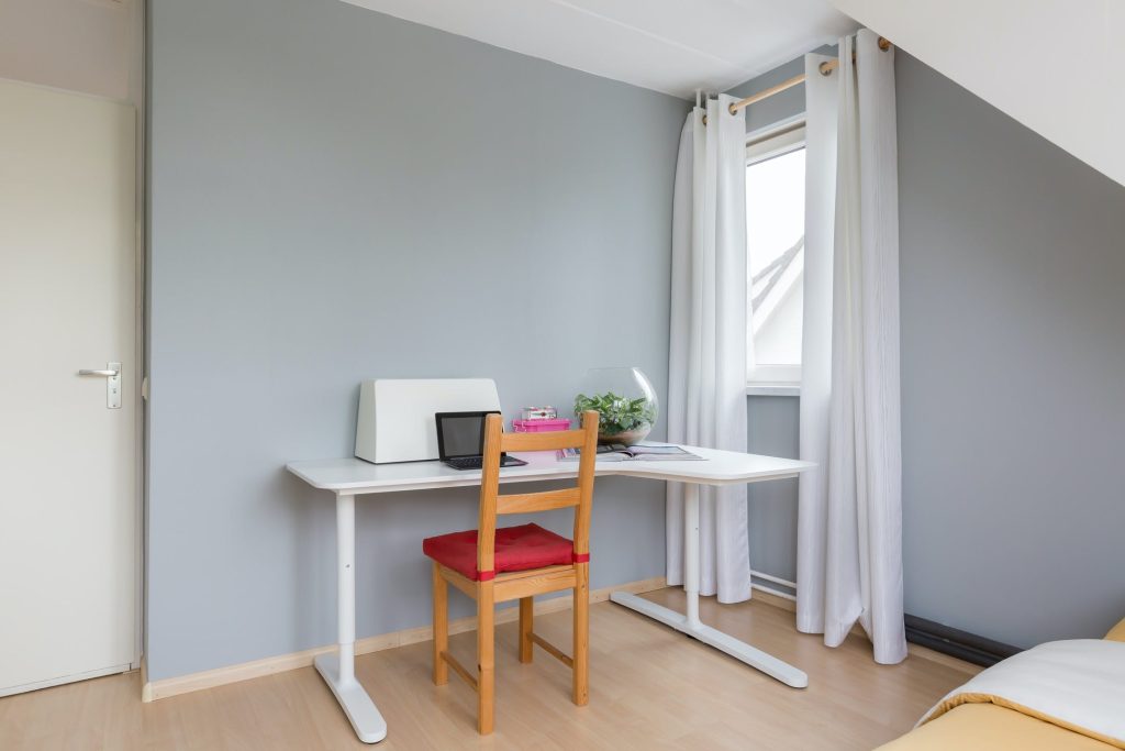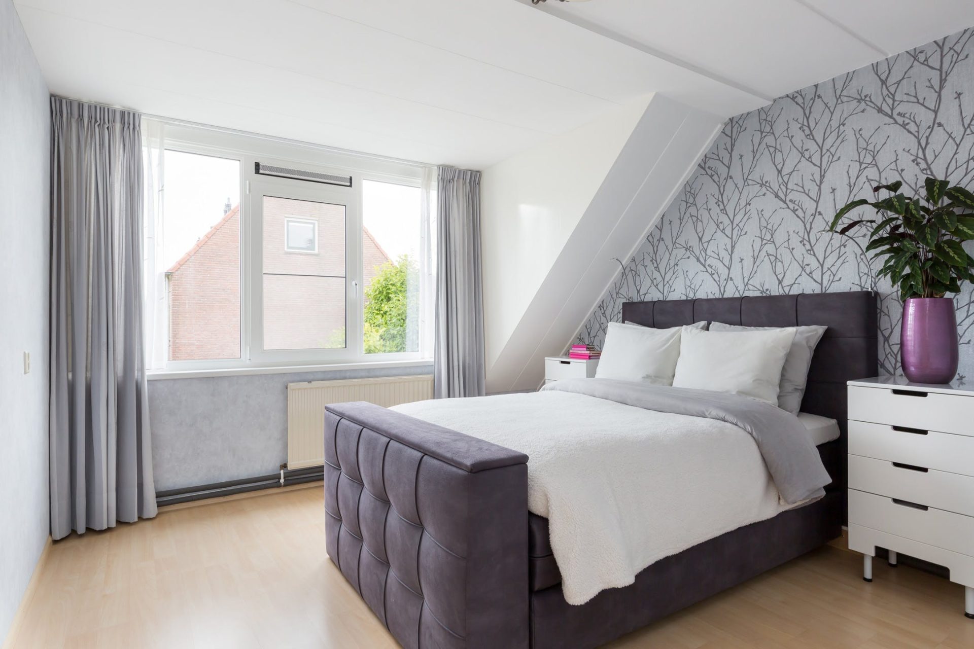 Vanaf de overloop, waar het raam in de zijgevel voor veel lichtinval zorgt, zijn vier slaapkamers en de badkamer te bereiken. Dankzij de brede dakkapellen aan de voor- en achterzijde zijn de slaapkamers verrassend ruim. Aan de voorzijde zijn de twee grootste slaapkamers, waarvan een is ingericht als hoofdslaapkamer.