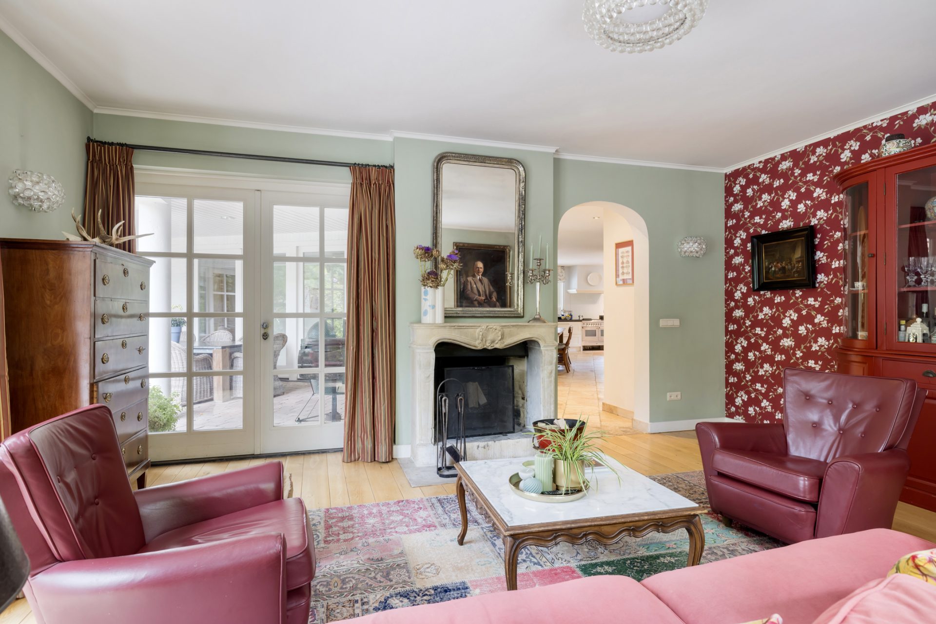 • een aangrenzende tuinkamer met openslaande deuren naar het terras