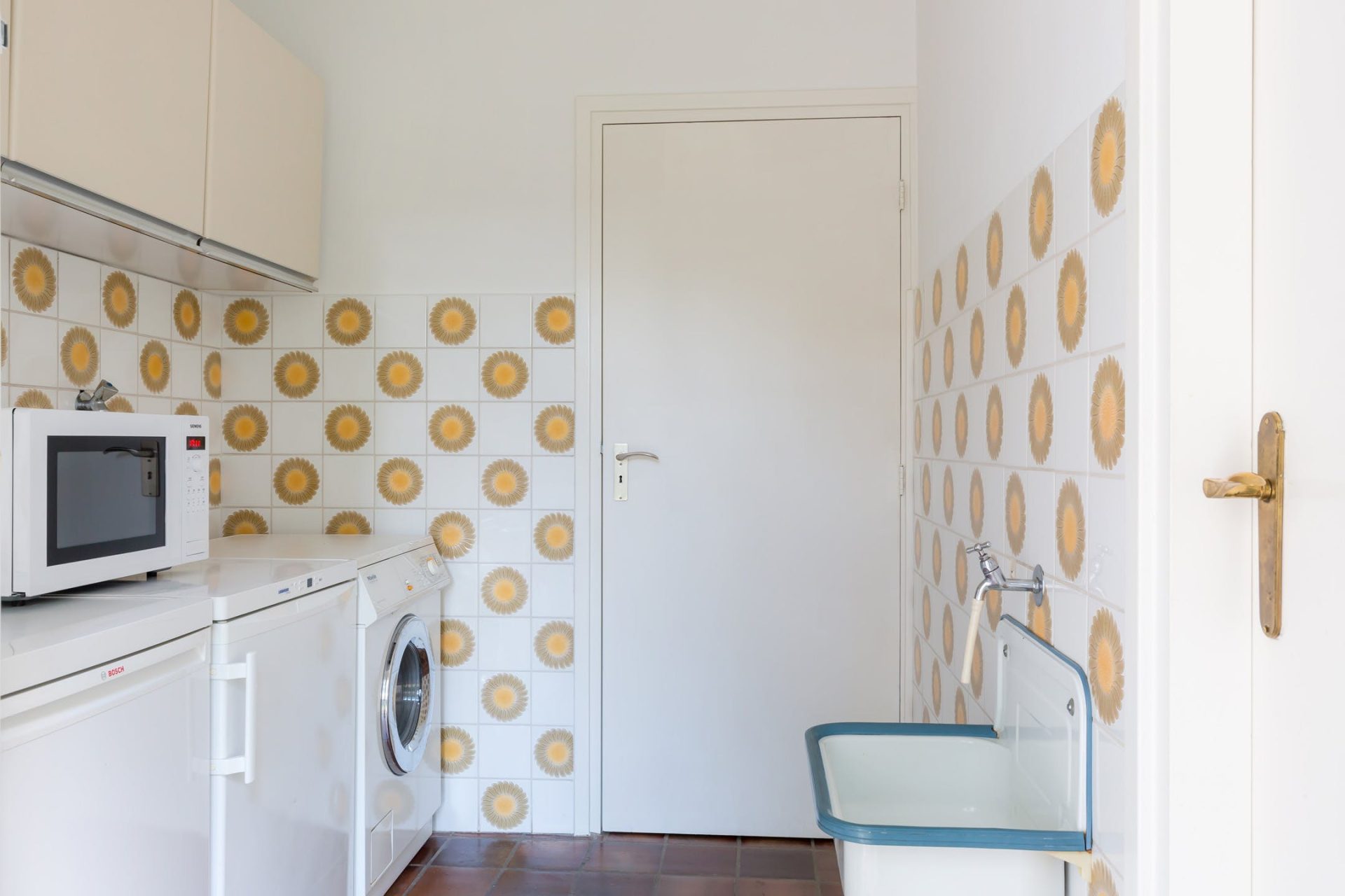 Aansluitend op de semi-open keuken ligt een praktische bijkeuken. De keuken heeft een praktische U-opstelling en is verbonden met de eetkamer. Vanuit de bijkeuken bereikt u een praktische wijn-/provisiekelder.