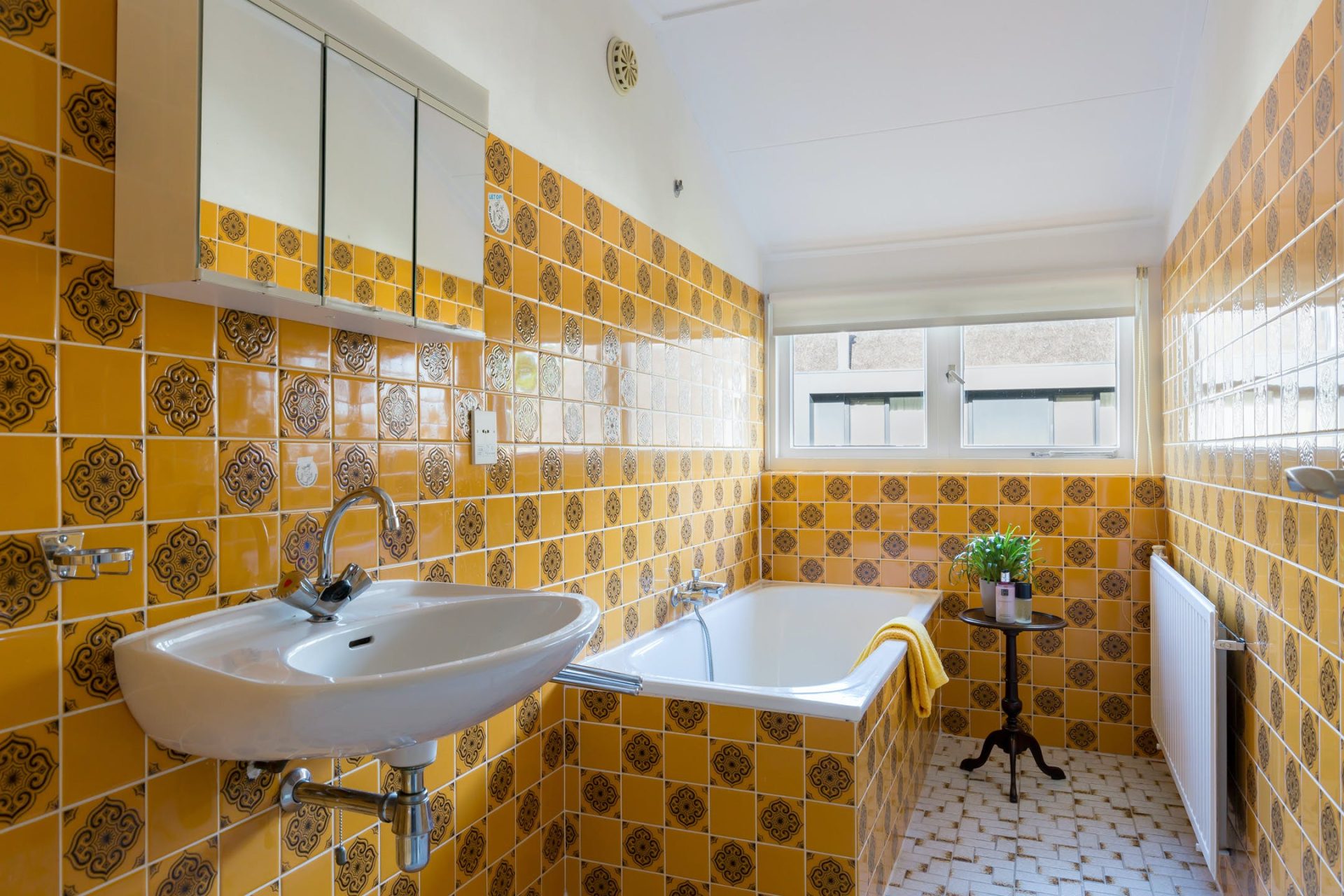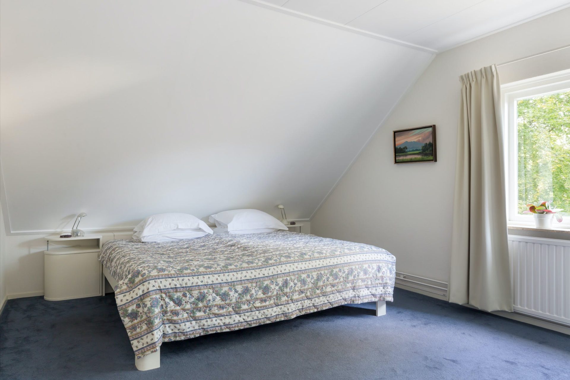 Geheel gelijkvloers wonen is hier goed mogelijk dankzij een ruime slaapkamer en de badkamer op de begane grond. De slaapkamer heeft een grote kastenwand en een mooi uitzicht over de achtertuin. De bijbehorende badkamer beschikt over een ligbad, douche, twee wastafels en een toiletruimte.