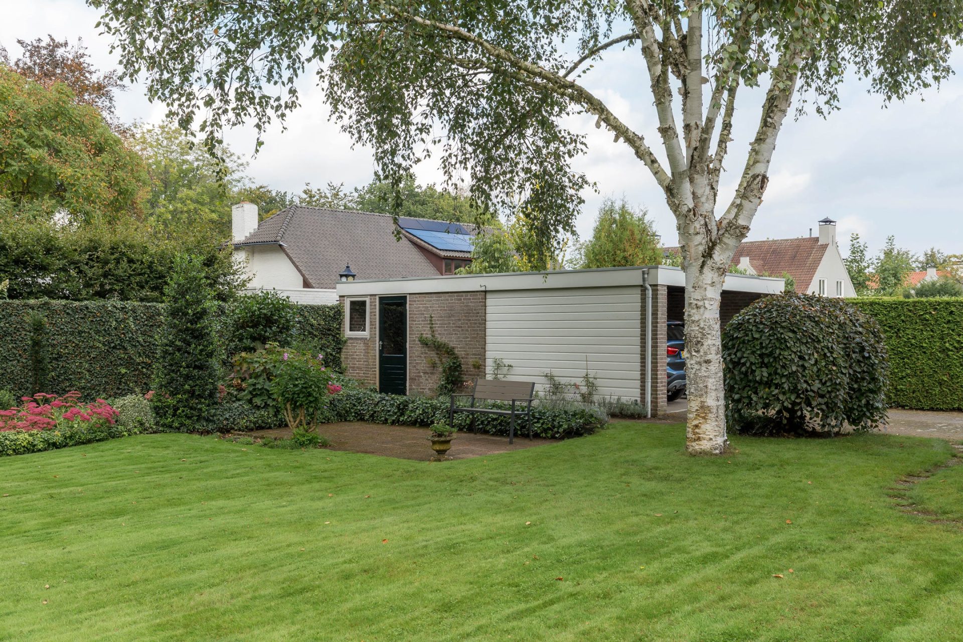 De villa staat op een mooi perceel van 1.061 m², gesitueerd aan het mooiste stuk van de Kivitslaan. Er is voldoende parkeerruimte voor meerdere auto’s en onder de carport is ruimte voor twee auto’s. De fraaie tuin is, net als de woning, goed onderhouden en ingericht met een groot gazon, diverse terrassen, bomen, groenblijvende hagen en brede borders. Diverse leuke details zoals de buitenhaard en het doorkijkje bij het overdekte terras geven deze villa haar eigen karakter en charme.