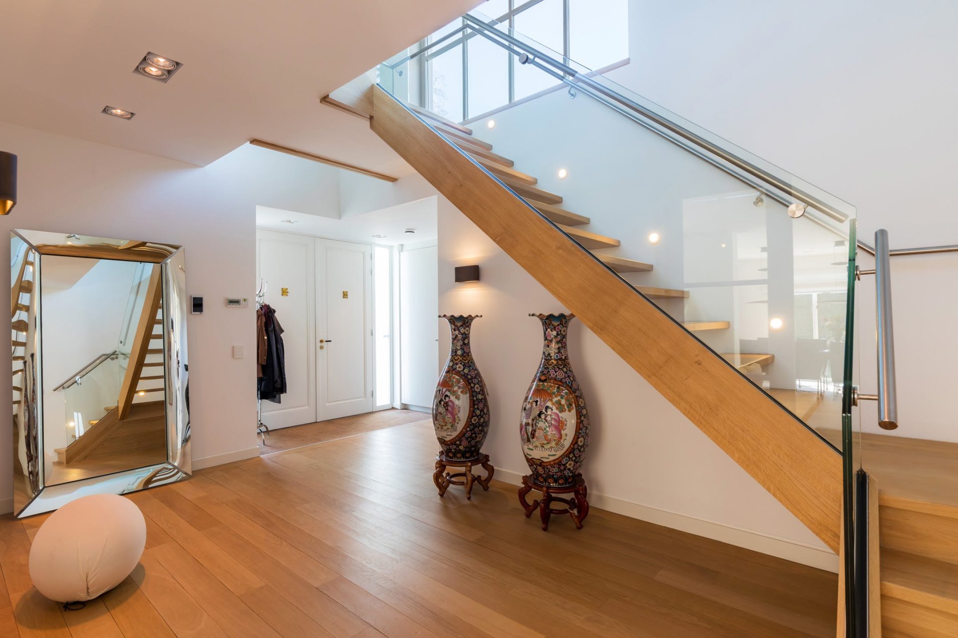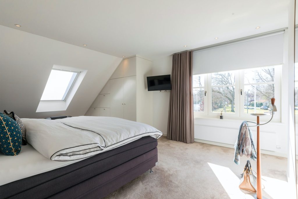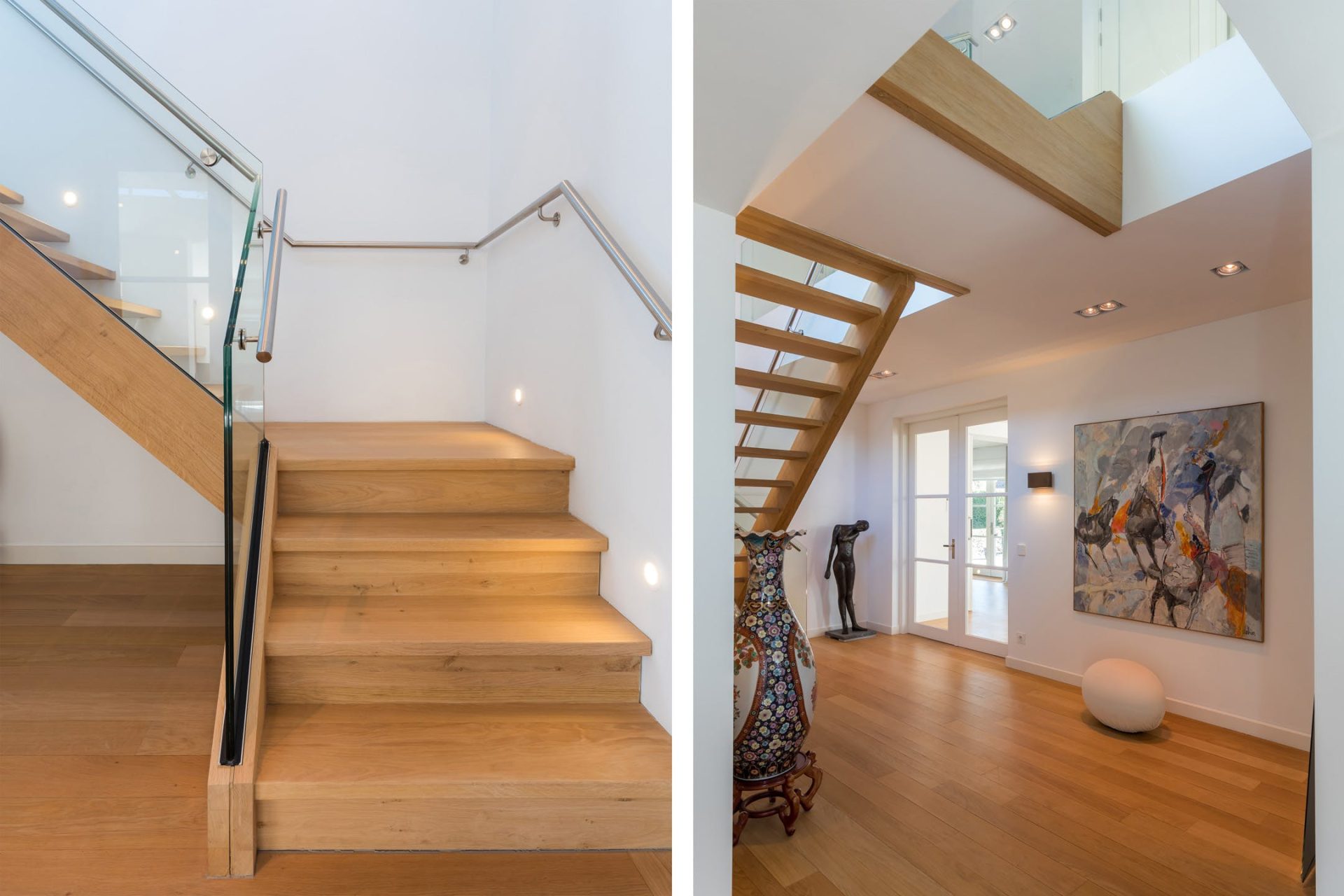 De eerste verdieping wordt ook weer gekenmerkt door de mooie lichtinval en biedt plaats aan 3 slaapkamers, en 2 badkamers.