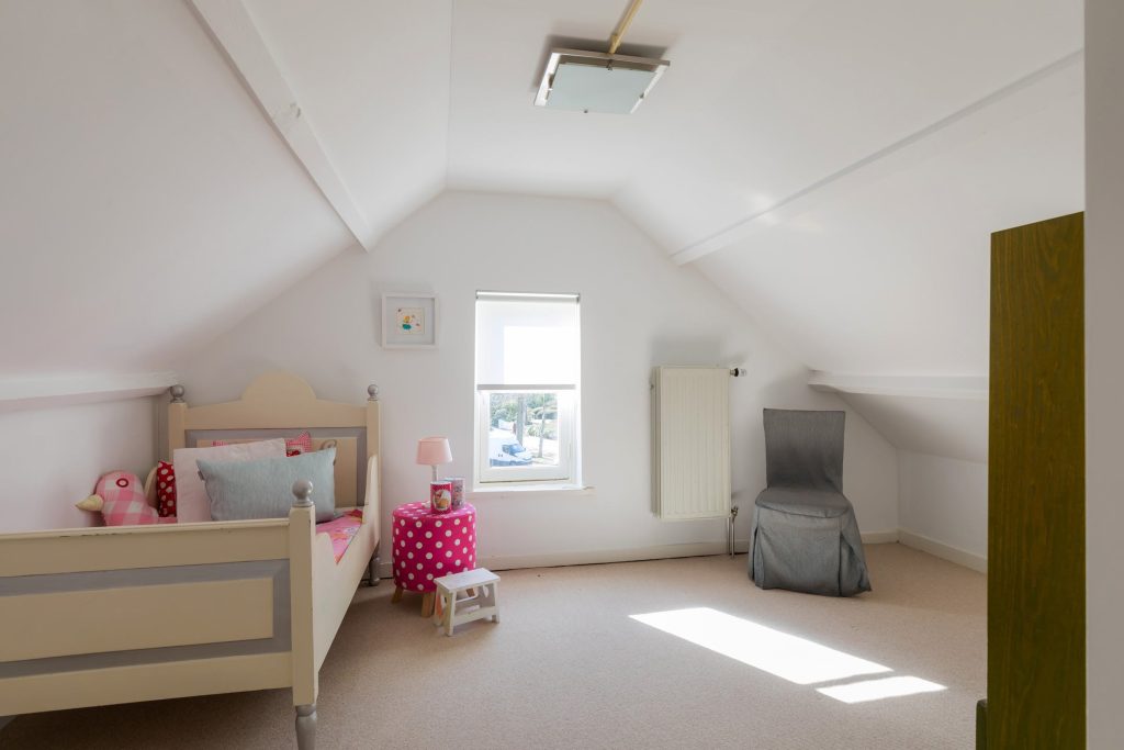 De tweede verdieping biedt plaats aan een bescheiden slaapkamers voor logé’s en een bergruimte.