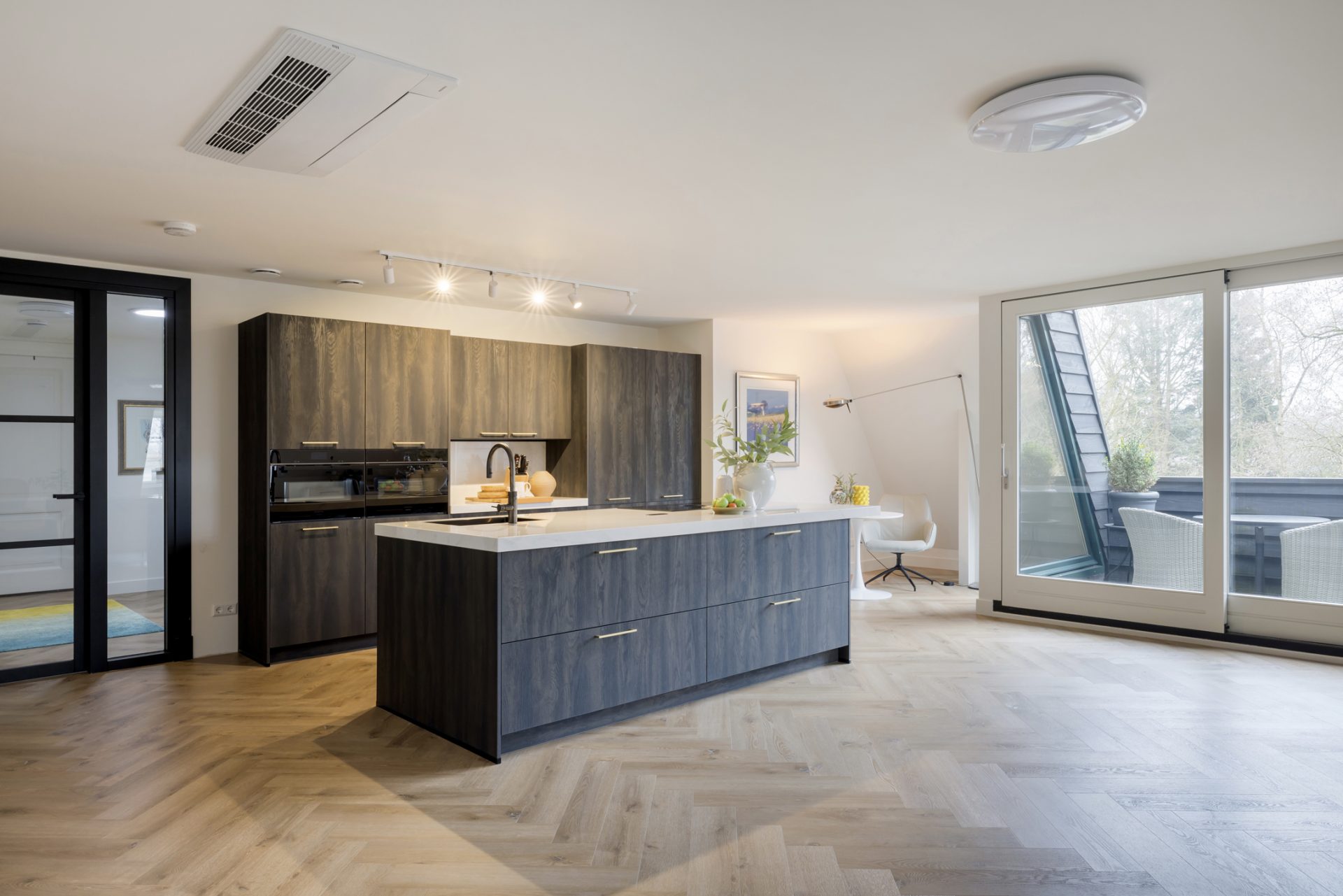 De open keuken sluit naadloos aan op de woonruimte en vormt een functioneel en stijlvol geheel. De opzet is praktisch en tegelijkertijd uitnodigend, ideaal voor zowel dagelijks gebruik als voor het ontvangen van gasten.