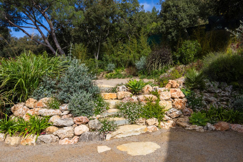 Je komt deze oase (1225m²) in La Croix Valmer, Gigaro binnen via een elektrische poort. Je kunt je auto parkeren in de dubbele garage of op de royale oprit.