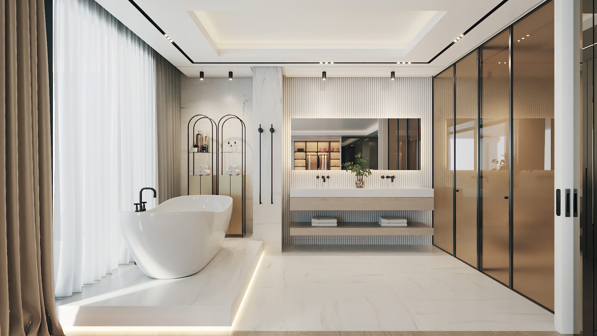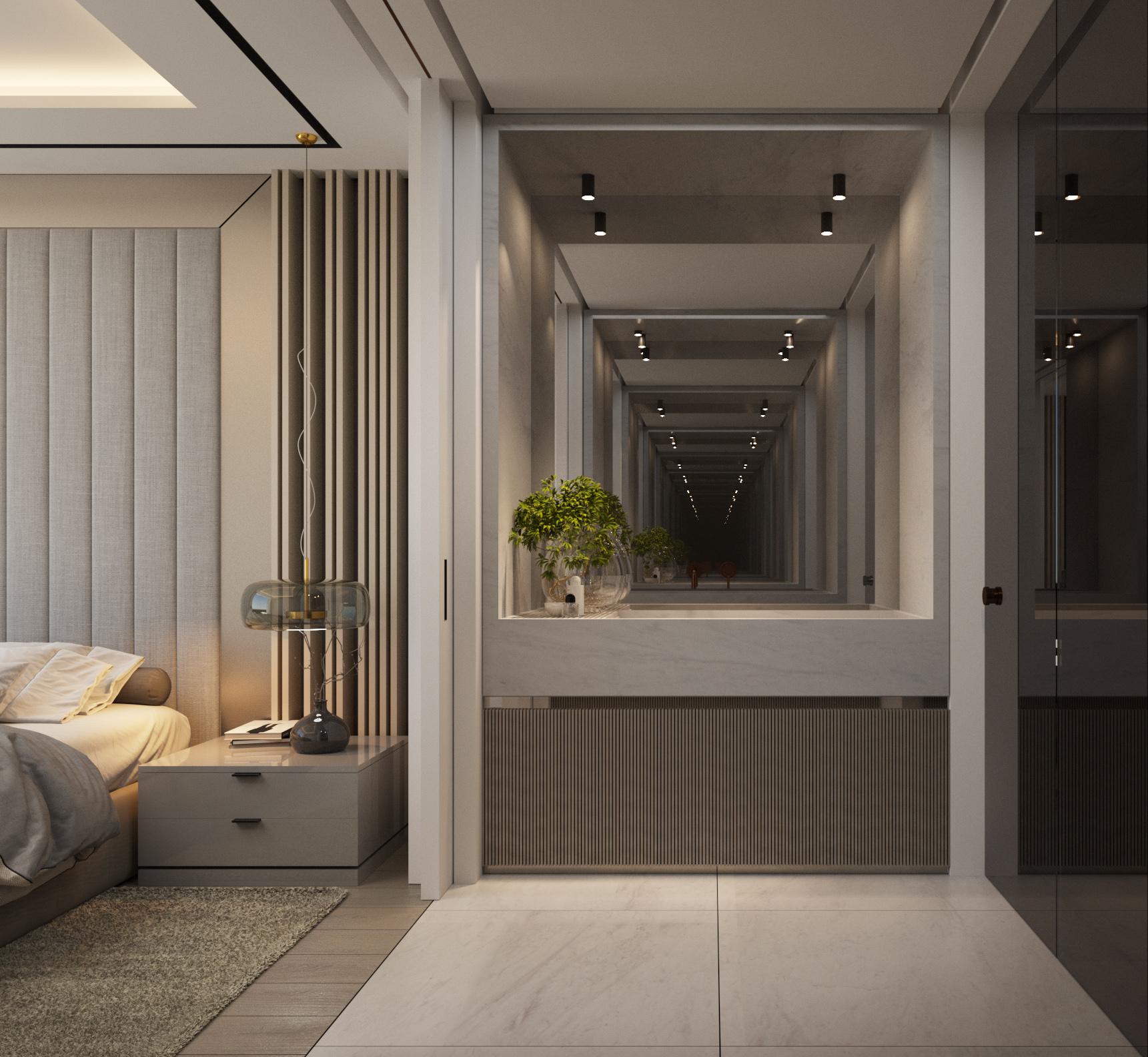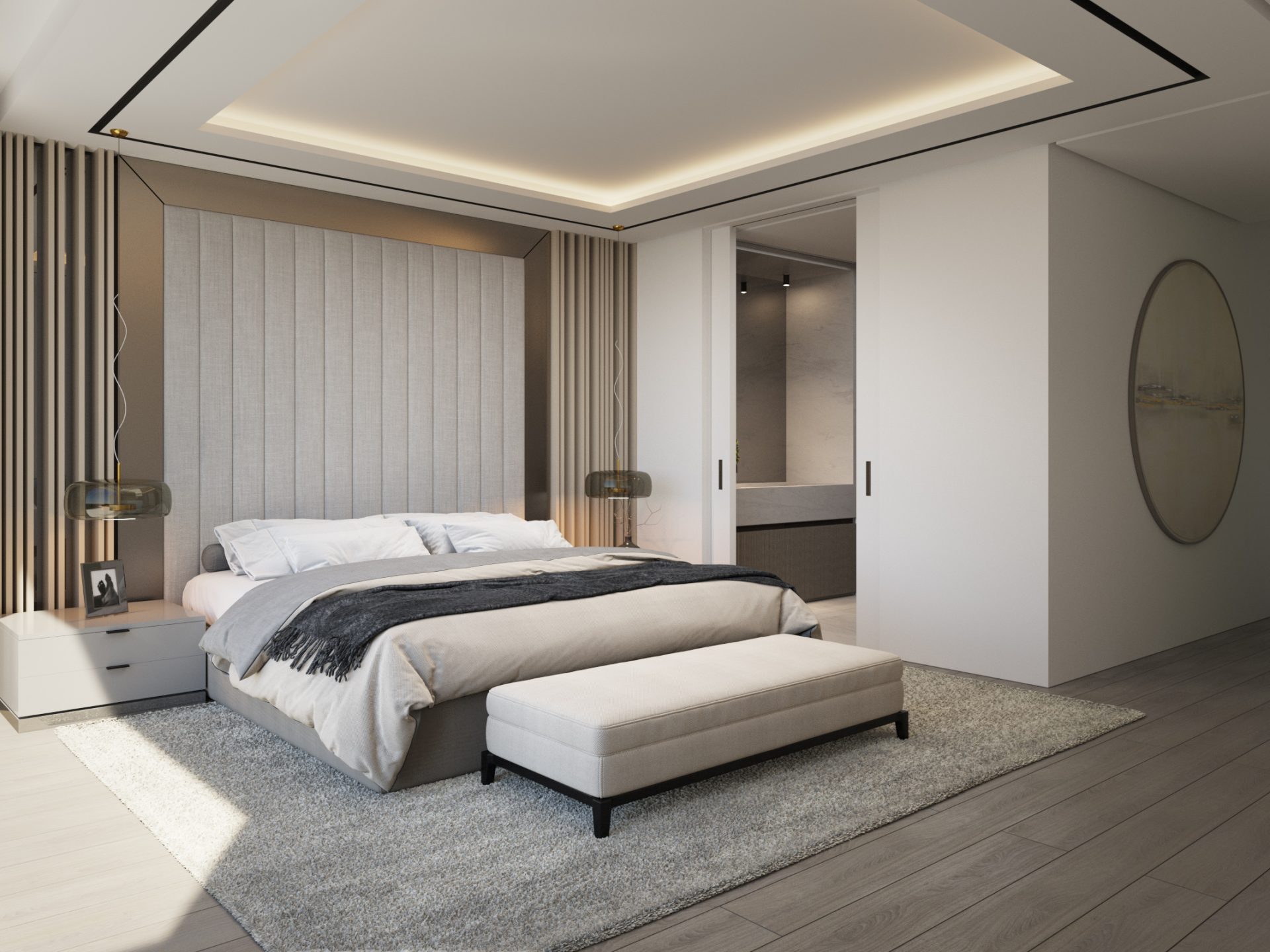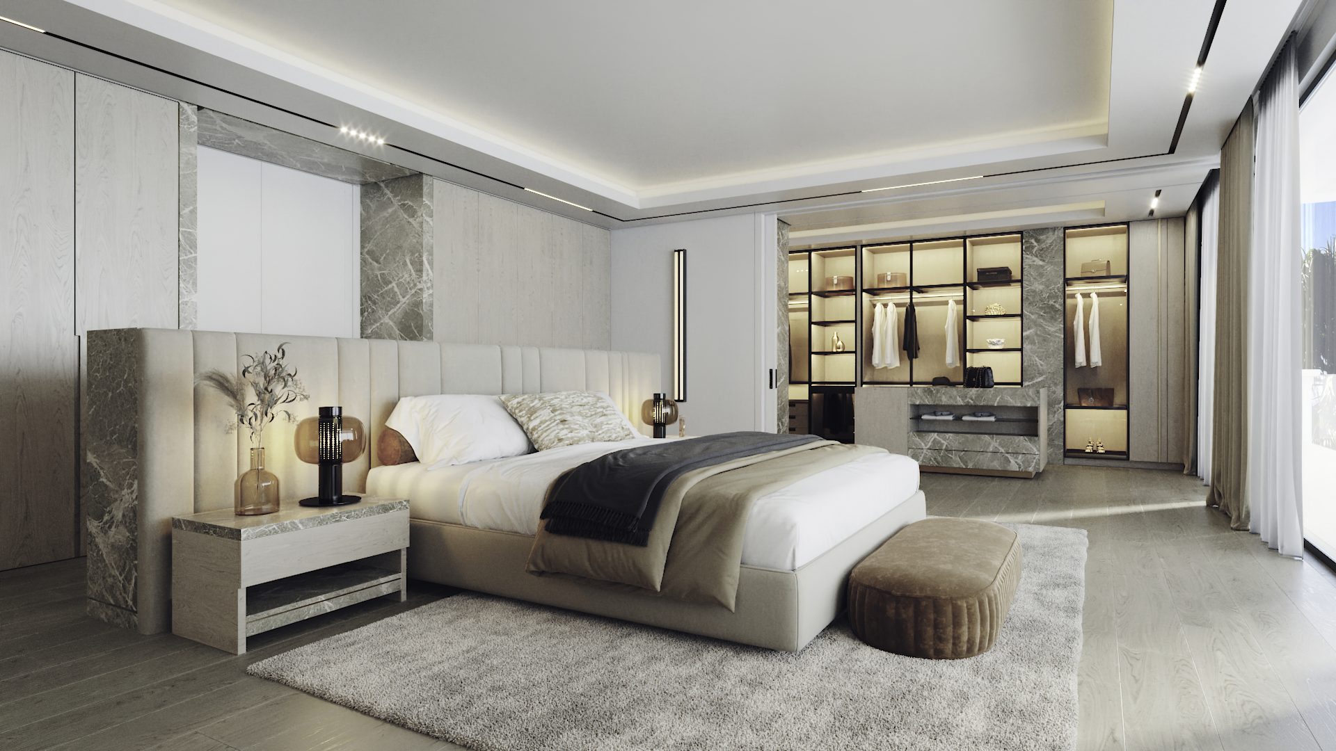 Boven geniet de indrukwekkende hoofdslaapkamer suite van een bevoorrechte positie met een privé open terras en panoramisch uitzicht. Vier extra slaapkamer suites, allemaal met privé terrassen, bieden royale accommodatie.