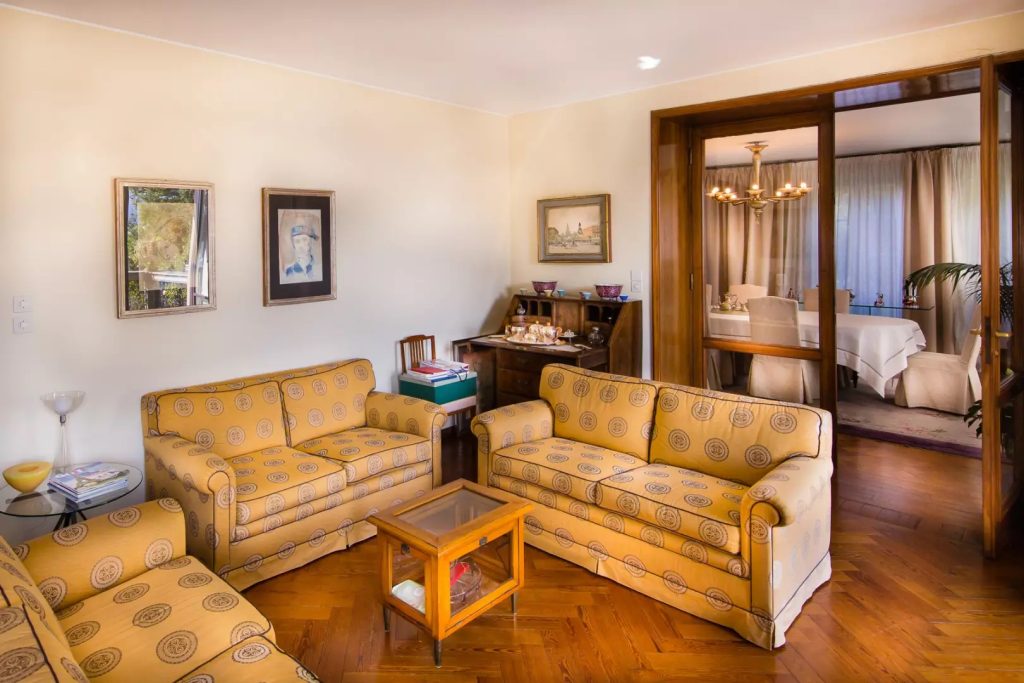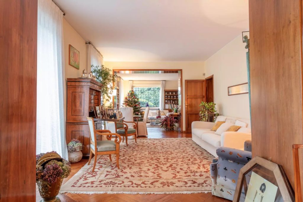 De entree leidt naar de grote kamers vanwaar je toegang hebt tot het grote terras. Op dezelfde verdieping is ook de formele eetkamer voor gasten. Het meest opvallende kenmerk is de grote helderheid van de kamers en het uitzicht op het Lago Maggiore.