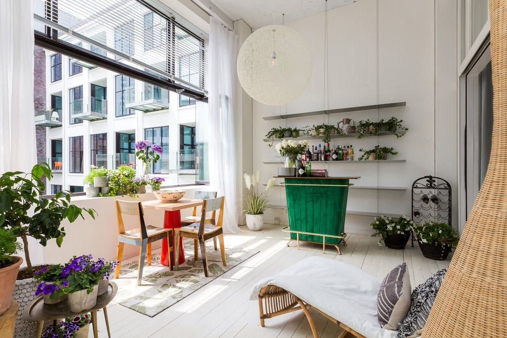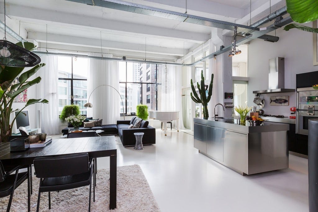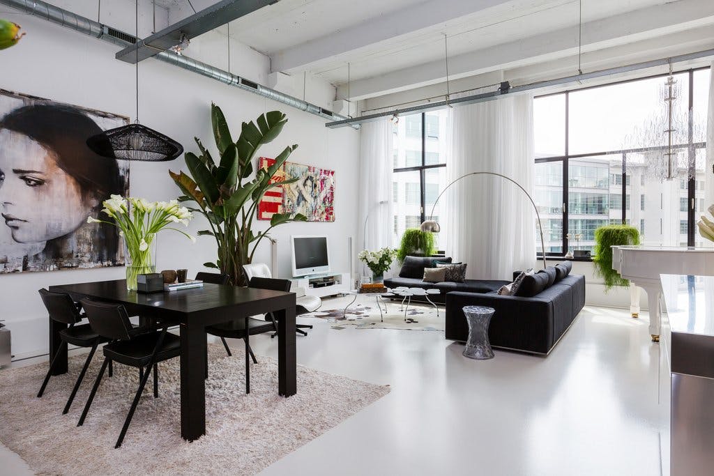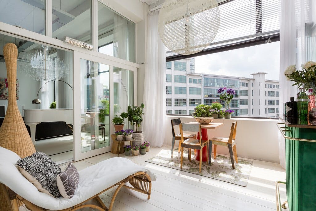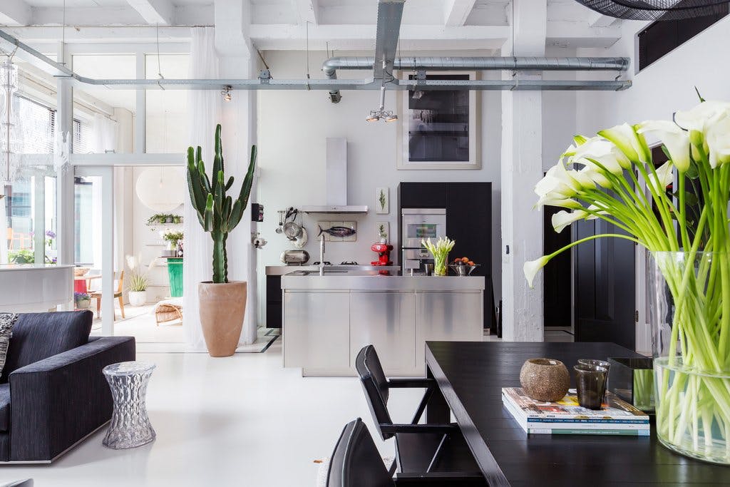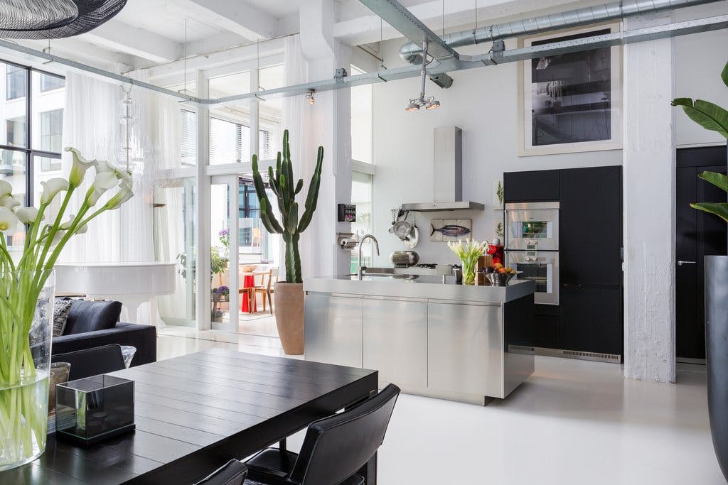 De woonkamer met open keuken is een fantastische leefruimte met de allure van een loft en diverse elementen met een sterk industrieel karakter. In de woonkamer is ruimte om TV te kijken, te musiceren, eten en gasten te ontvangen waarbij het open karakter en de lichtinval niet onvermeld mogen blijven. Naast de piano is een brede toegang tot de serre waar je beschut achter het glas kunt zitten. Met een simpele handeling zijn de glazen harmonicaramen te openen voor het ultieme buitengevoel.