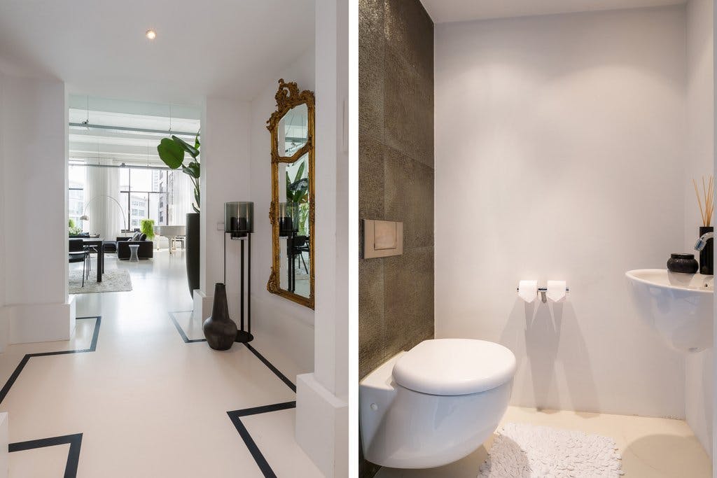 Kom binnen in de hal van dit fantastische appartement en laat je omringen door sfeer en luxe. Vanuit de hal zijn de toiletruimte met fonteintje en de inpandige berging annex wasruimte te bereiken, gemaakt van prachtige materialen en met een zeer hoog afwerkingsniveau.
