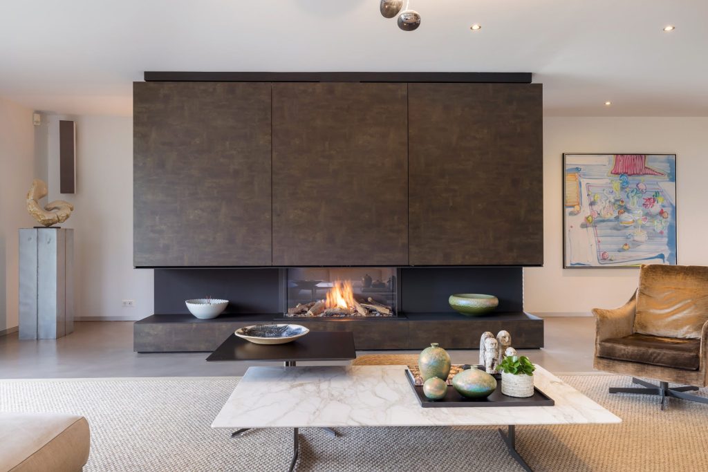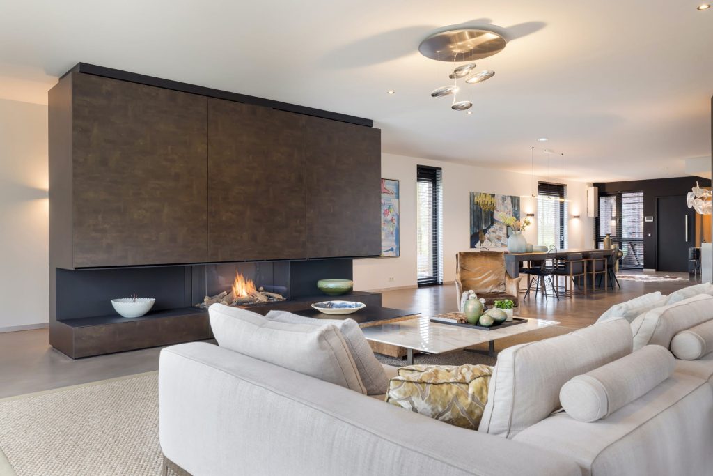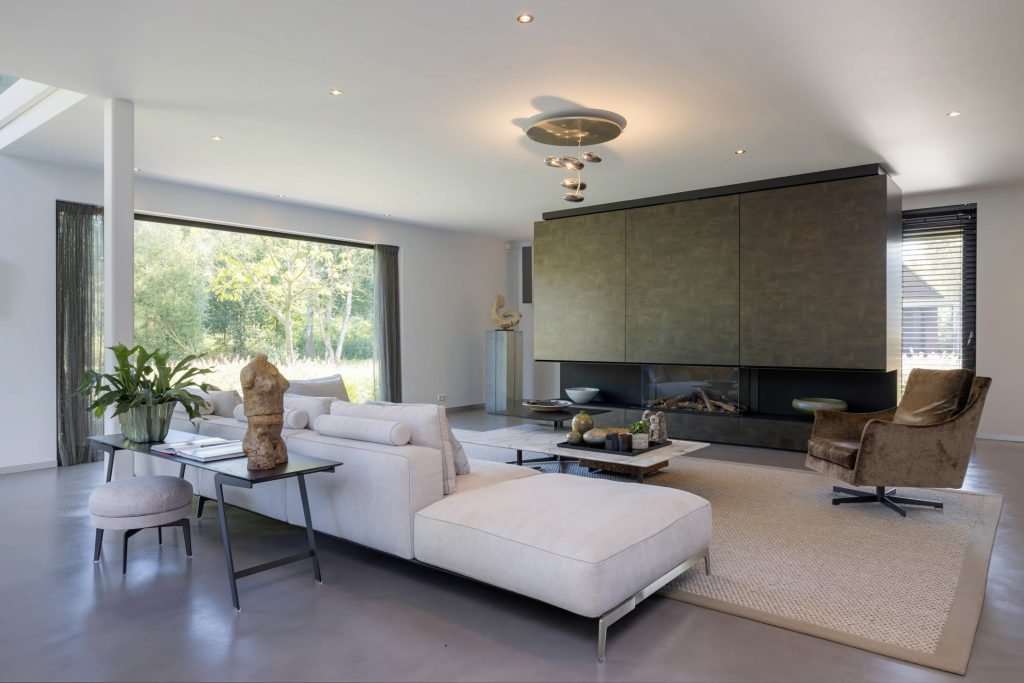 Echte eye-catchers van de woonkamer zijn de hoge vide en de fijne zithoek bij de gashaard. Een plek waar u tot rust kan komen en ontspannen.