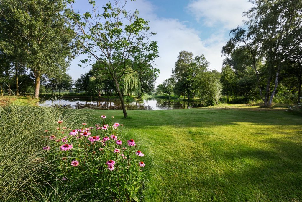 Niet alleen de villa maar ook de buitenplaats verkeert in topconditie. De grote gazons, hoge oude bomen, stijlvol aangelegde borders en het privémeer met zwemsteiger etaleren al hun schoonheid. Er zijn verschillende plekken om in de zon of schaduw te zitten waarbij de aanwezige kunst uw aandacht zal trekken.