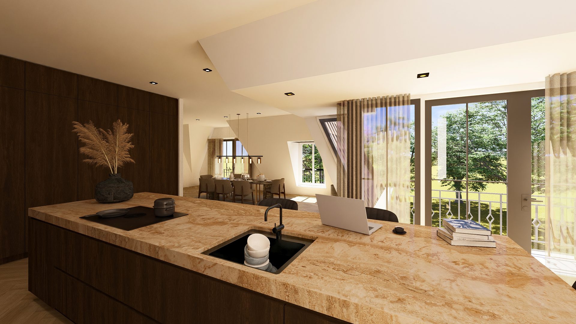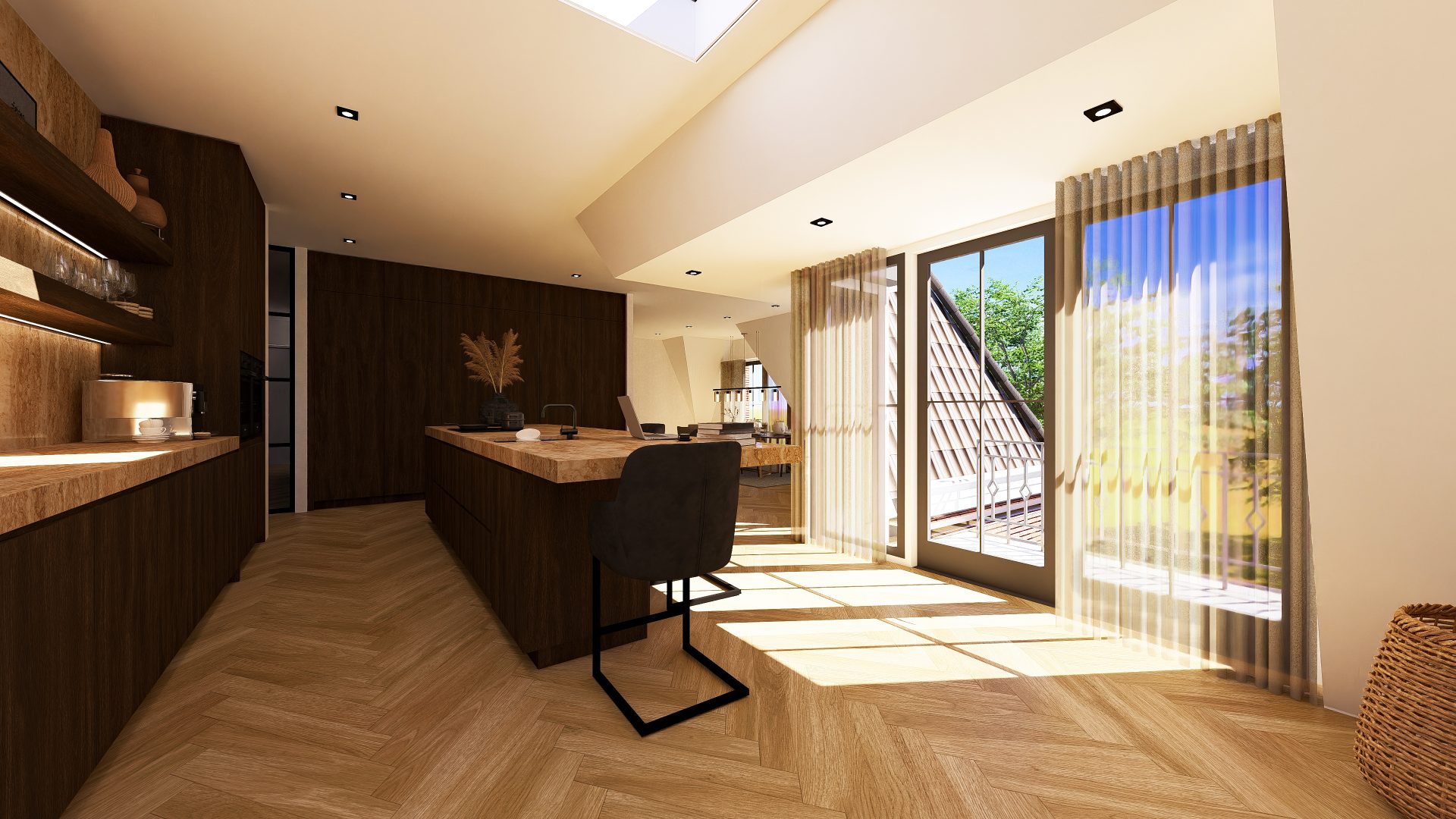 Appartement 2, het penthouse is beschikbaar. Het penthouse kenmerkt zich door veel ruimte en vrije uitkijk rondom. Grote raampartijen en lichtstraten zorgen voor veel natuurlijke lichtinval.
