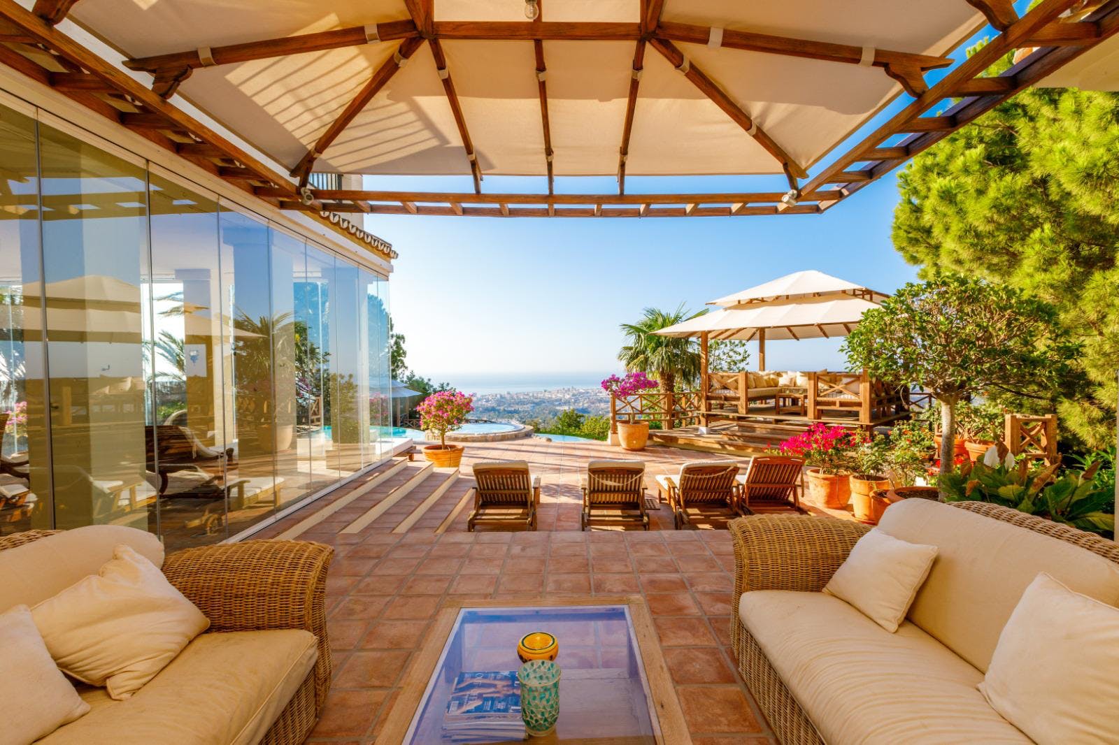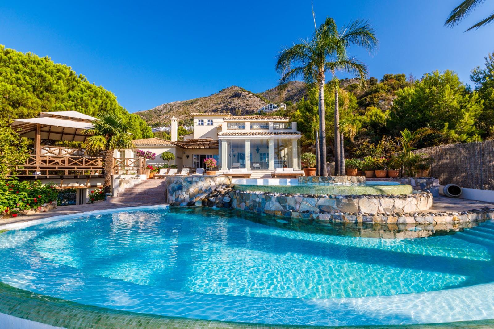 Unieke, prachtige villa gelegen net onder Mijas Pueblo. Gelegen op een groot perceel, volledig privé en rustig. Op het zuiden gelegen met spectaculair panoramisch uitzicht op zee en de kust.