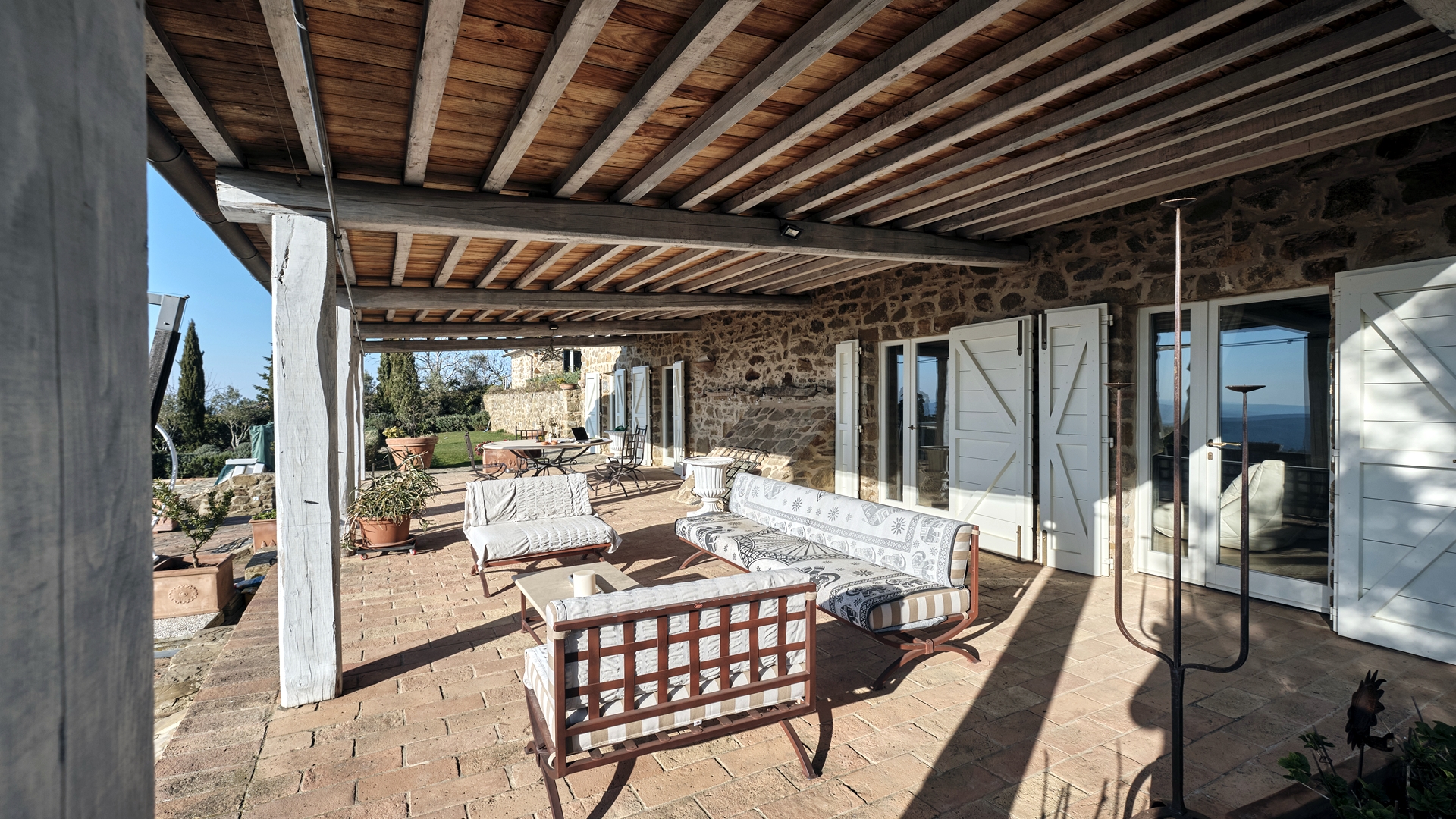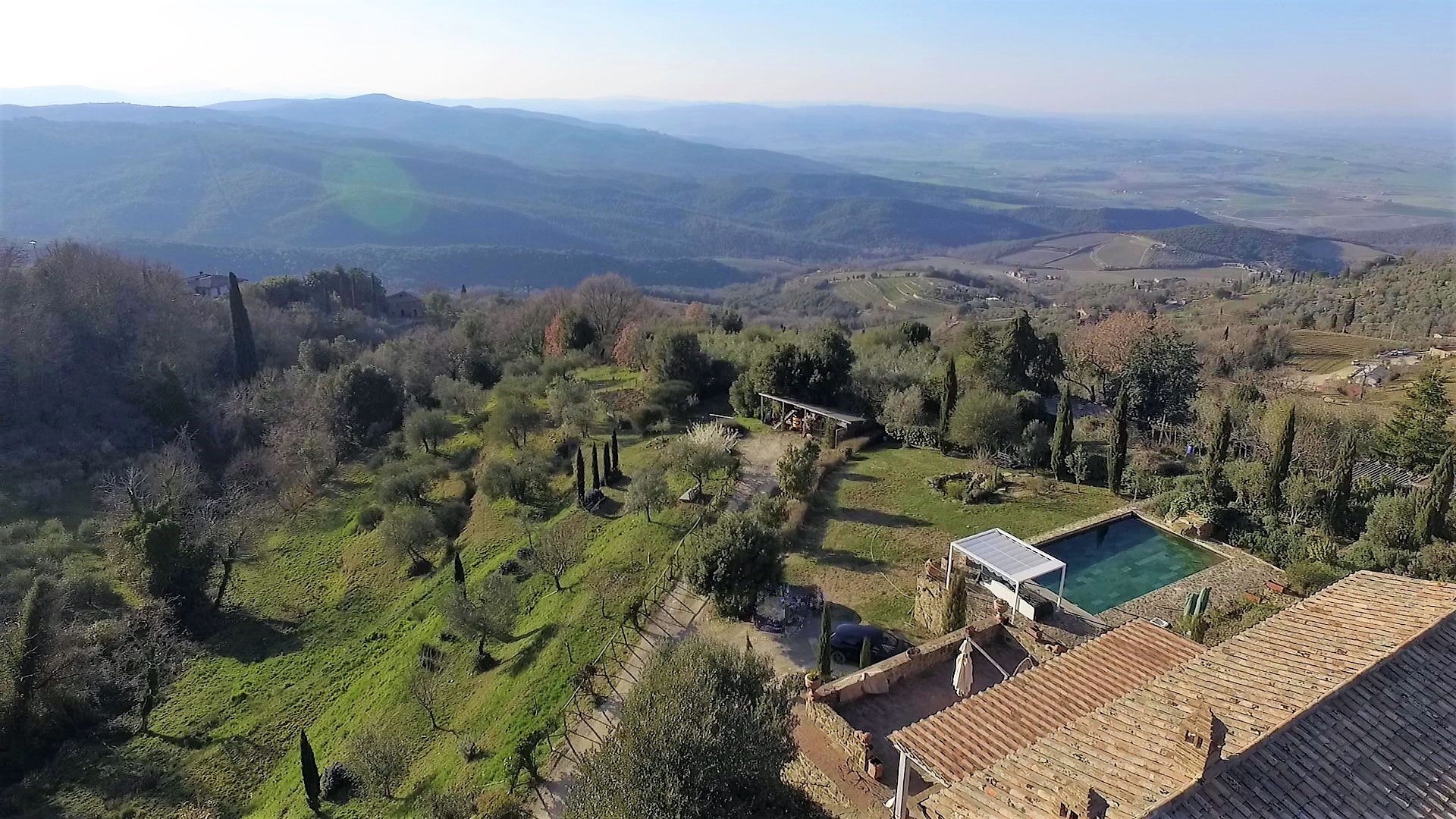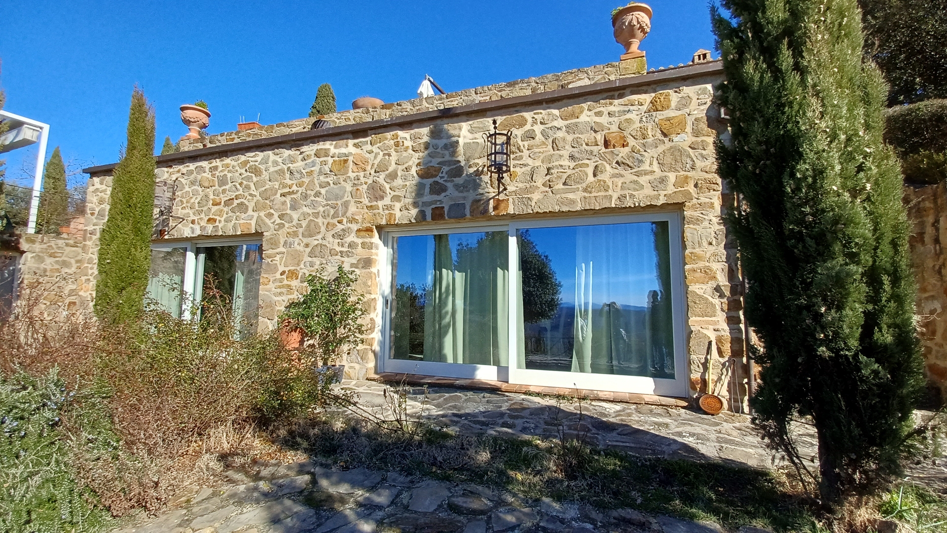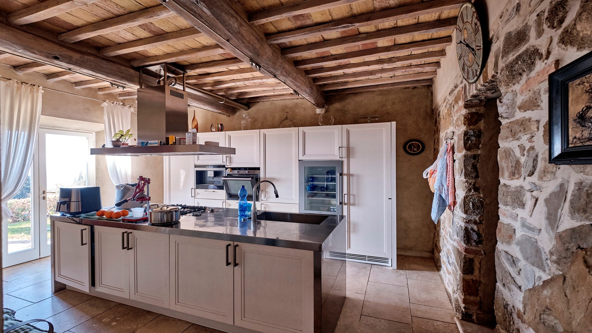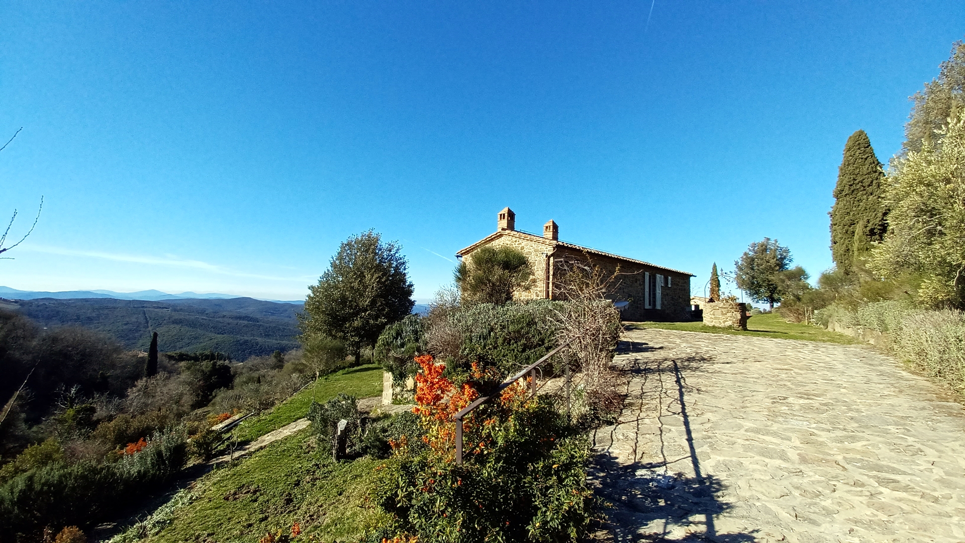 Stap binnen in deze prachtig gerenoveerde boerderij en je zult meteen onder de indruk zijn van het elegante ontwerp en de aandacht voor detail. Het landhuis, dat ongeveer 300 vierkante meter beslaat en verdeeld is over drie verdiepingen, biedt een naadloze mix van modern comfort en traditionele Toscaanse charme. Op de middelste verdieping bevindt zich het woongedeelte, met een ruime keuken met een centraal eiland, een badkamer, een eethoek en een dubbele woonkamer met open haard, gescheiden door een prachtige stenen boog. Elke kamer op deze verdieping biedt toegang tot een groot terras met prachtig uitzicht op de omliggende heuvels en een pittoresk zwembad compleet met een prachtige stenen waterval en een zonovergoten solarium met een prieel.