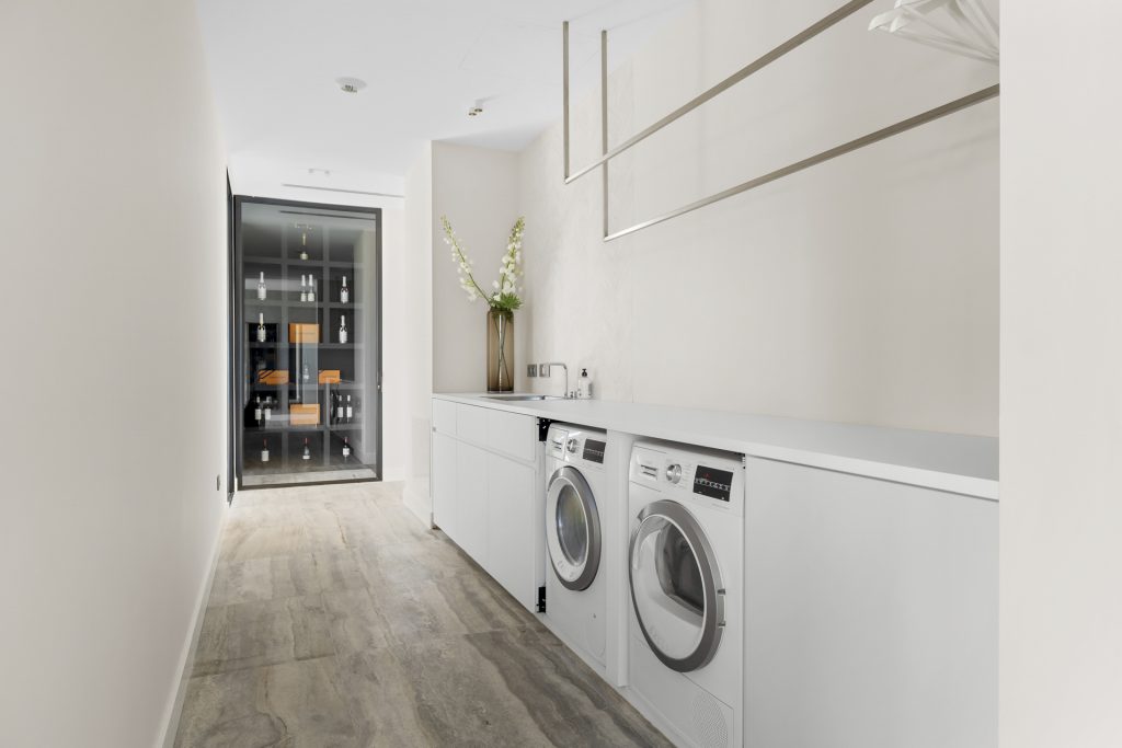 Benedenverdieping: Twee slaapkamers met badkamers, grote garage, mogelijke bioscoop of fitnessruimte, wasruimte, opslagruimte.