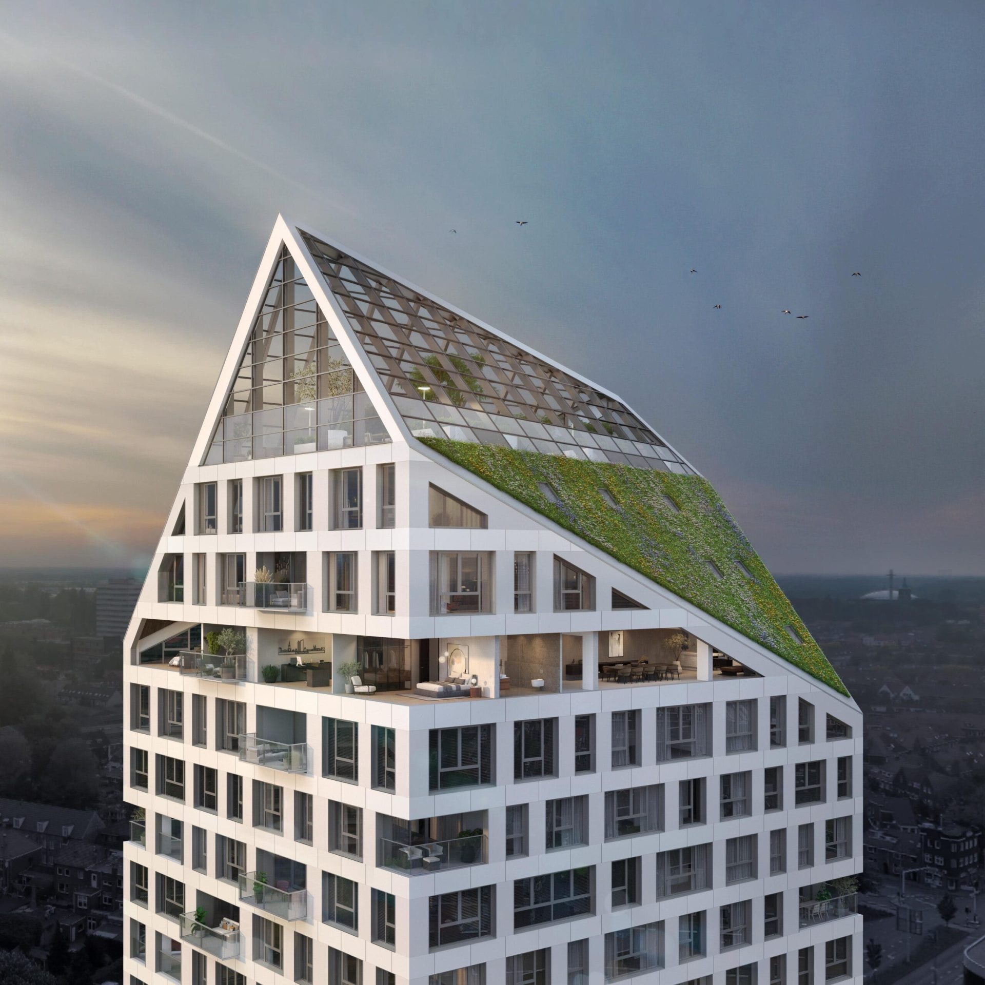 a staggering view of Eindhoven and the surrounding area. The high ceilings and the wealth of natural light indoors give these penthouses an utterly unique touch. Of course, the iconic penthouse lofts will be finished
