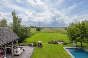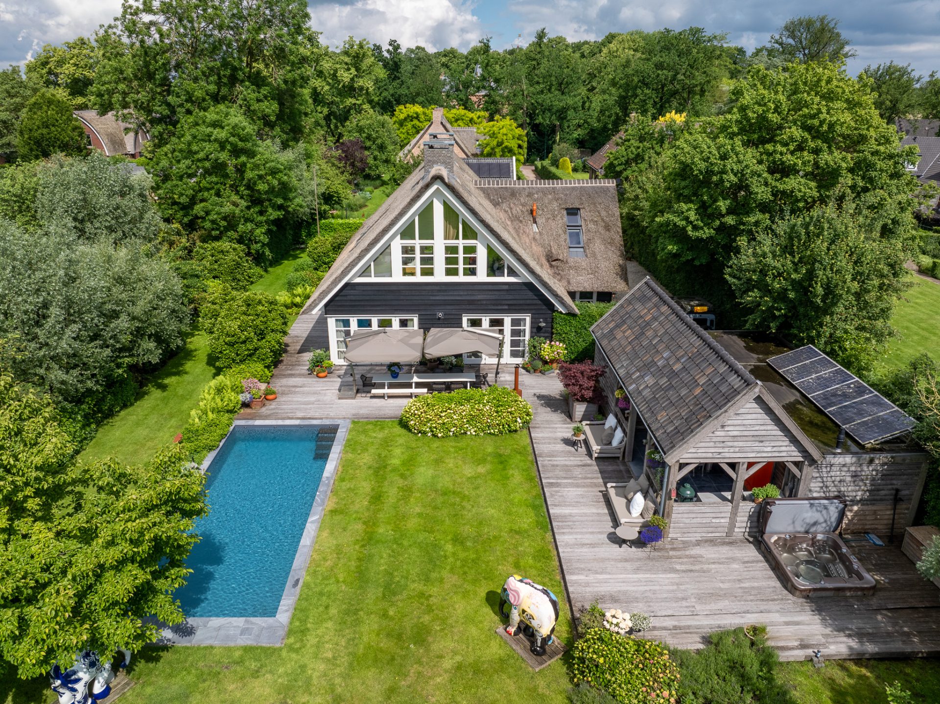 Soms moet je moeite doen om de allermooiste dingen te ontdekken. Dit geldt ook voor deze droomvilla in Loosdrecht, die vanaf de openbare weg nauwelijks zichtbaar is. Tegenover Kasteel Sypesteyn zie je een diepe oprit, die leidt naar een perceel van 13.900 m² waar in 2014 deze duurzame villa met verwarmd buitenzwembad is gebouwd. Hier ben je weg van het dagelijks leven van Loosdrecht en geniet je volop van het kilometers vrije uitzicht over het typisch Hollandse landschap met grasland en slootjes. Je wordt niet alleen de eigenaar van de villa en tuin, maar ook van een flink stuk grasland en een heuse boomgaard.