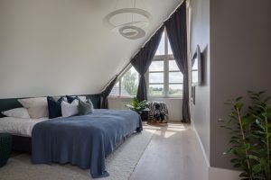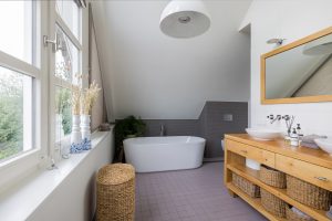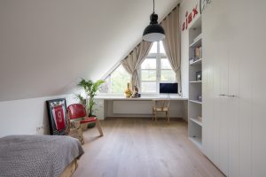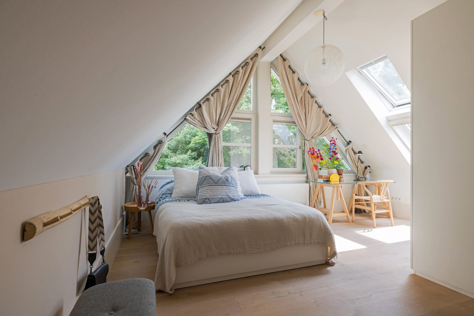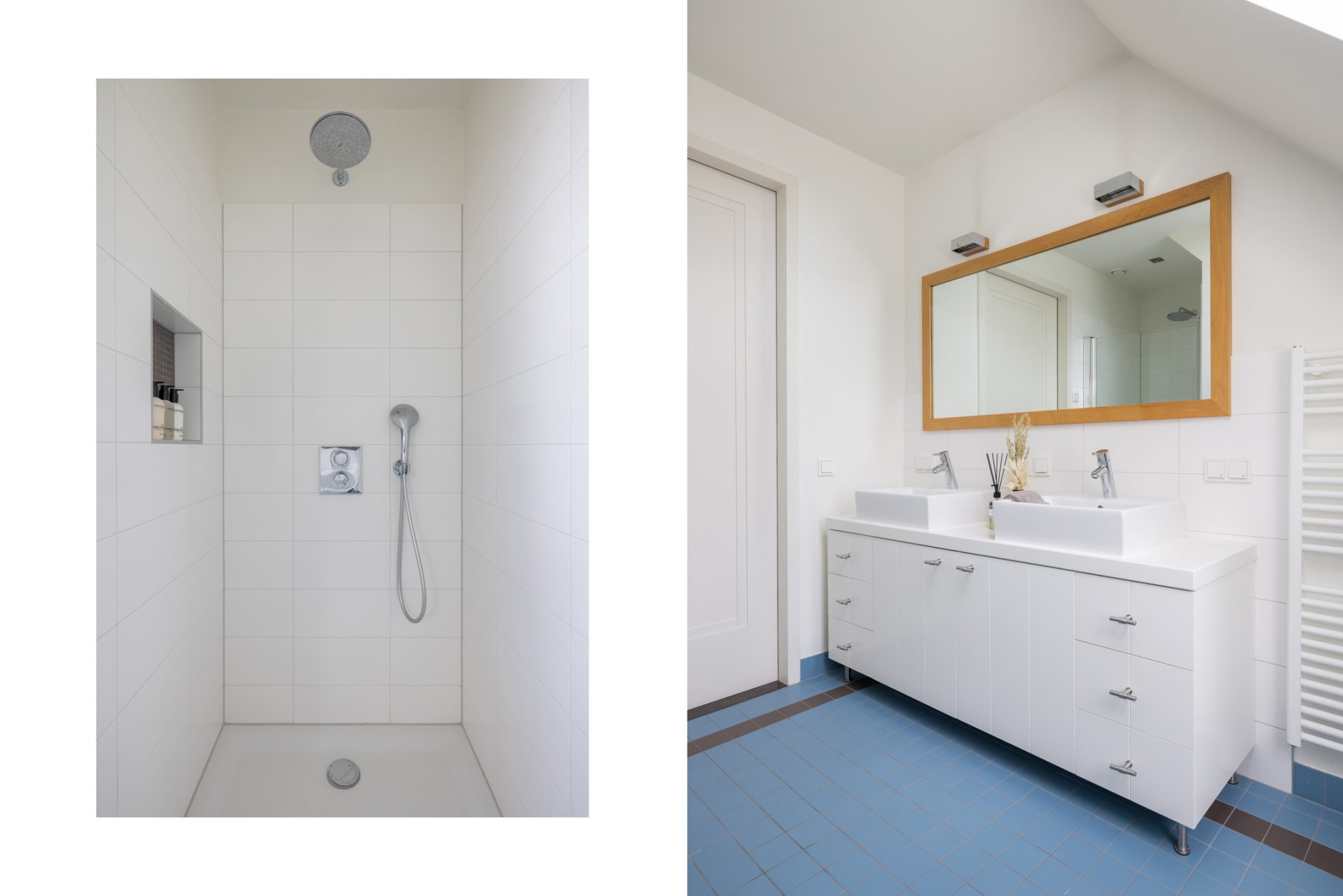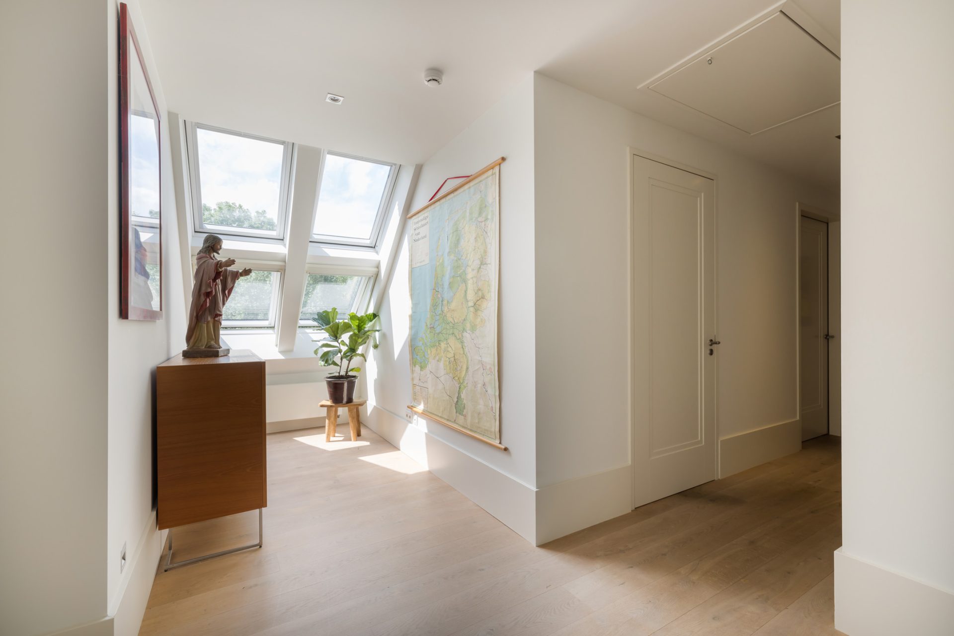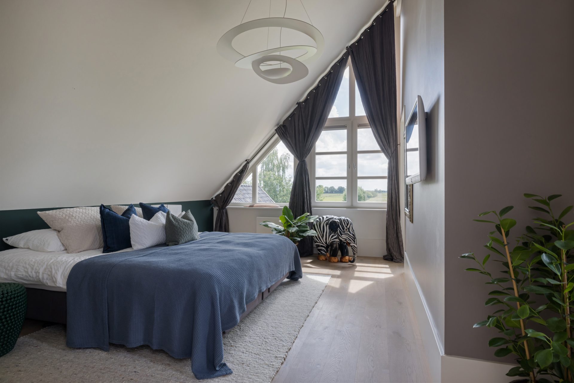 Volg de trap vanuit de hal naar de eerste verdieping, waar de overloop met 4 grote dakramen een fantastische plek met veel lichtinval is. Aan de overloop grenzen vier ruime slaapkamers, waaronder de master bedroom met inloopkast en eigen badkamer. Het uitzicht vanuit de master bedroom is van ongekende schoonheid en de inloopkast is voorzien van een op maat gemaakt interieur. In de badkamer zorgen een vrijstaand bad en dubbele inloopdouche voor veel comfort.