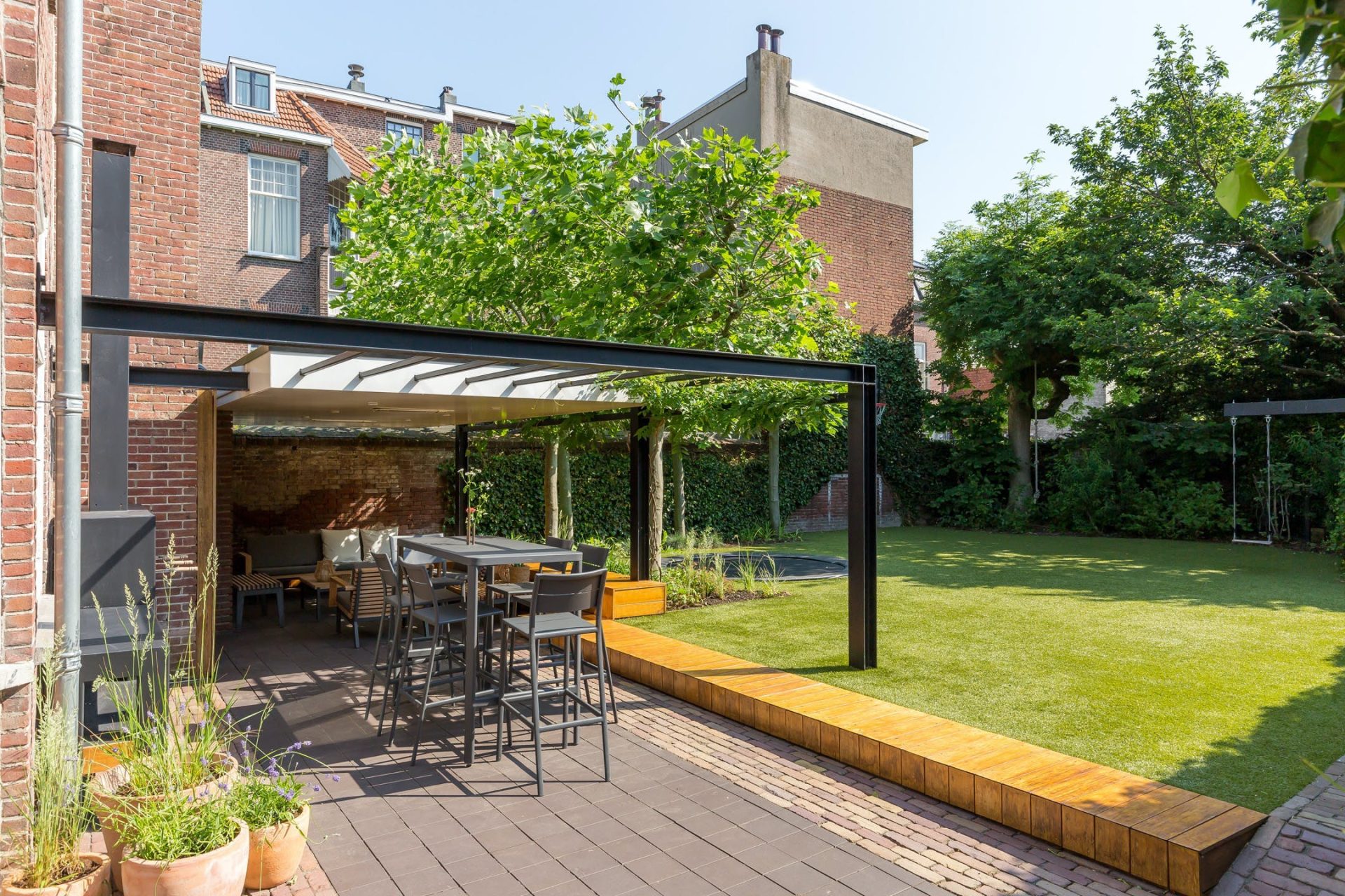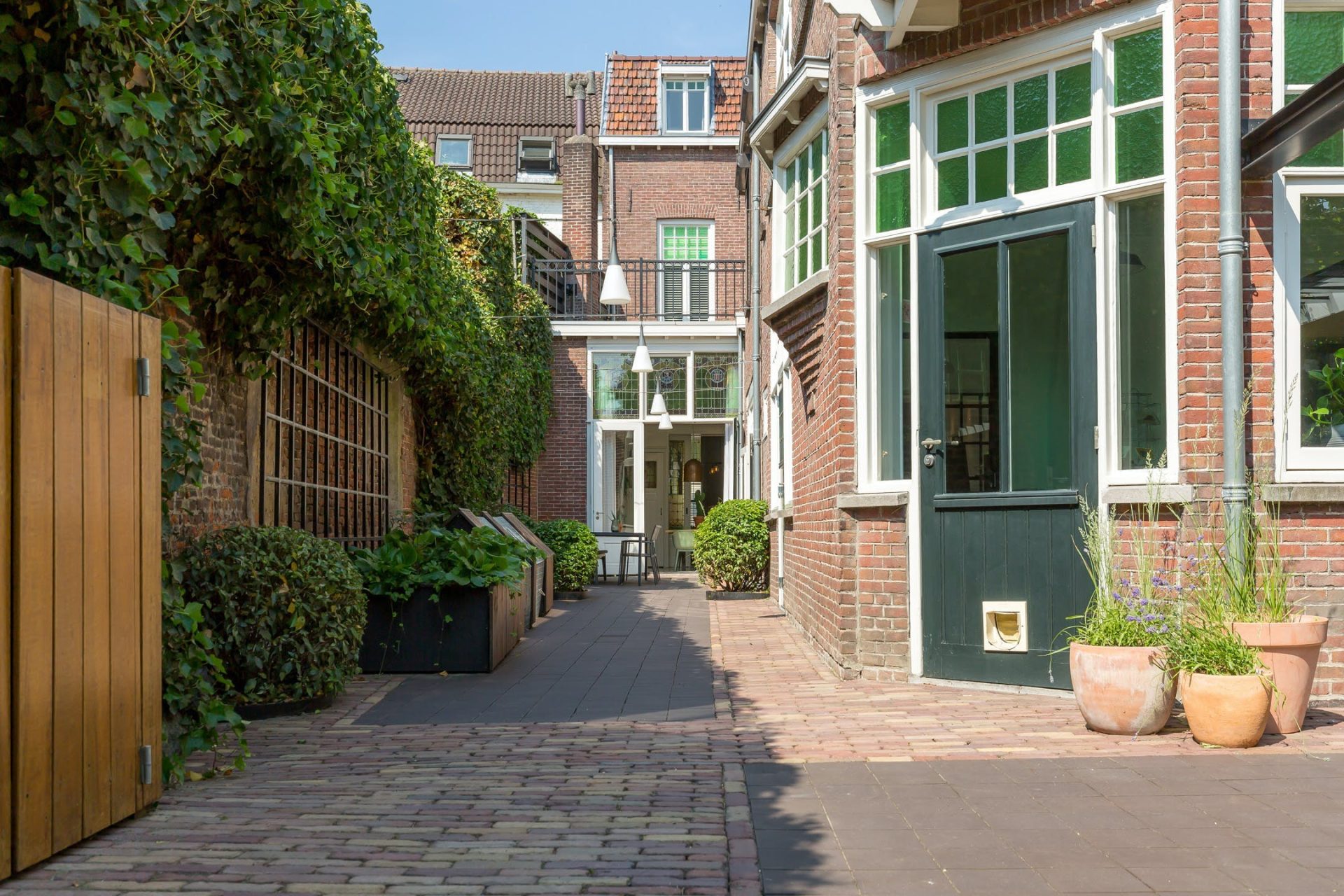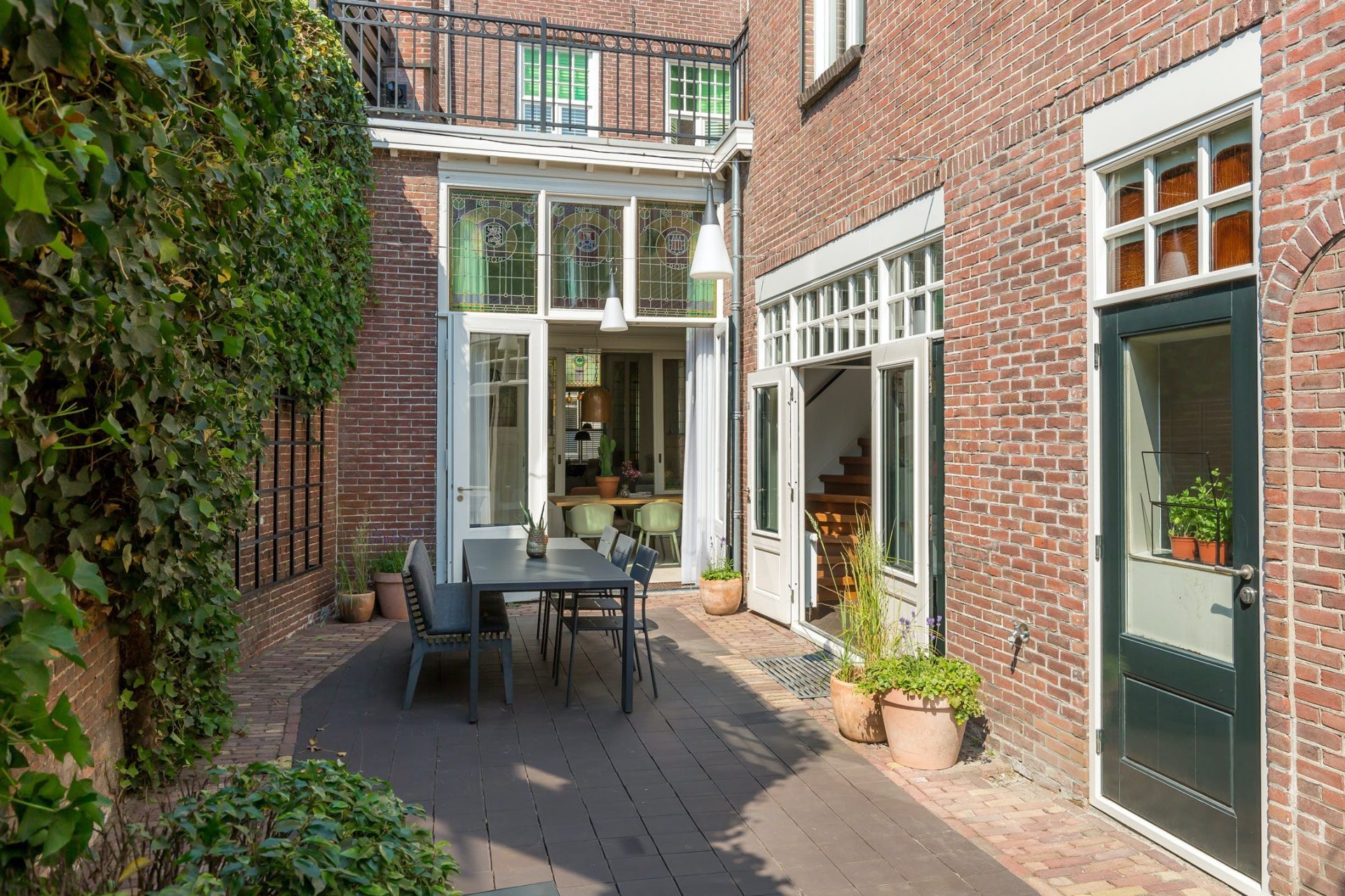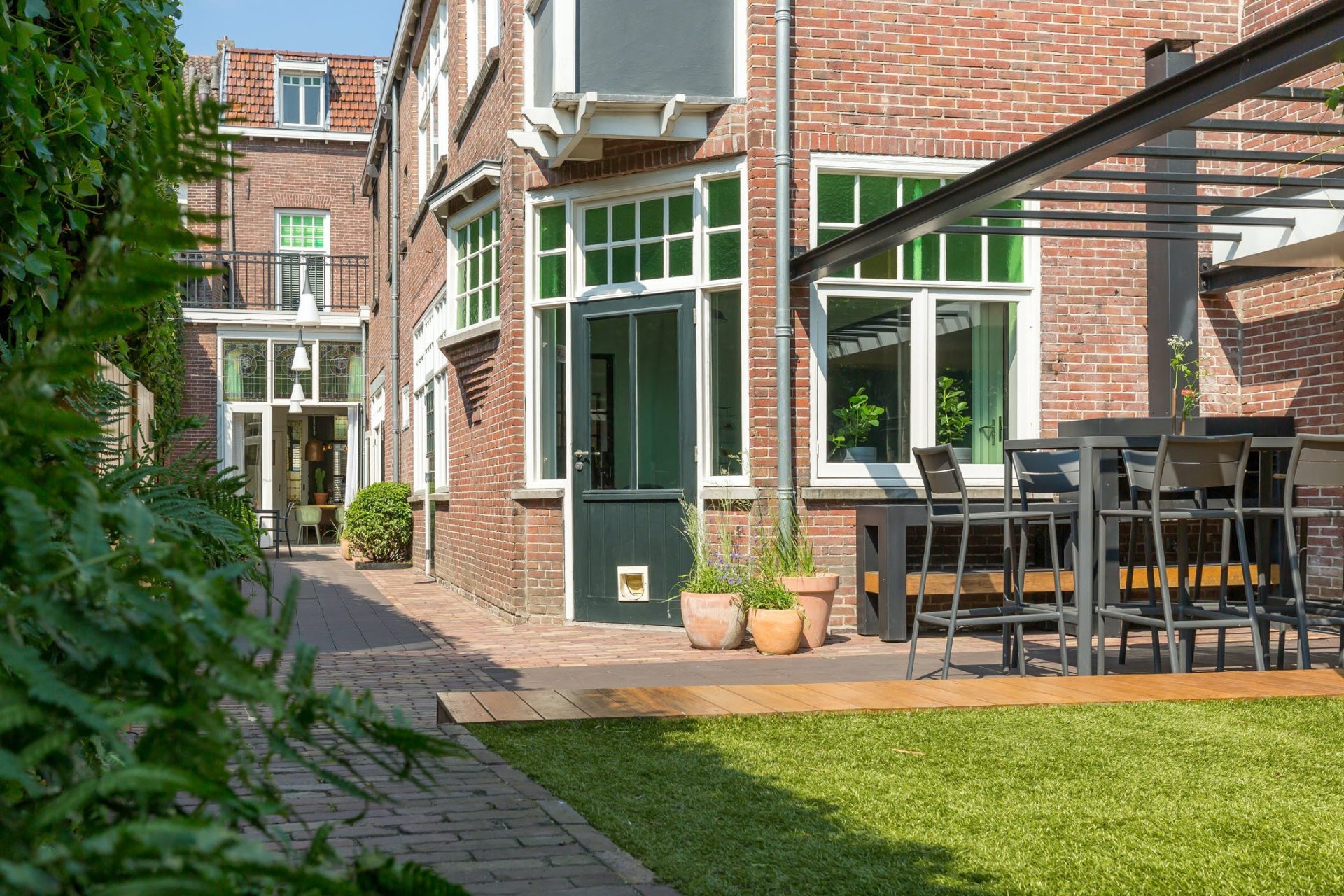 Verrassend is de grootte van de tuin die de kwalificatie van stadstuin ontstijgt. De tuin is circa 17 meter diep en 12 meter breed, doordat deze doorloopt achter nummer 8. Kinderen hebben alle ruimte om te spelen en de beplanting zorgt voor veel privacy. Bij de eetkamer en keuken is een fijn terras om te eten en het grote, overdekte terras is een heerlijke plek voor een loungeset en een hoge (eet)tafel. In de hoek van de tuin, verscholen achter het groen, is een houten berging en via de poort kom je op een pad dat naar de Mariastraat leidt. Zo hoeven fietsen niet op straat te staan maar vinden zij een mooie plek in de berging.