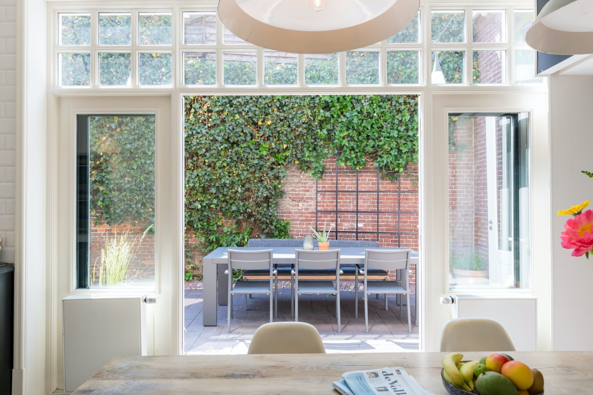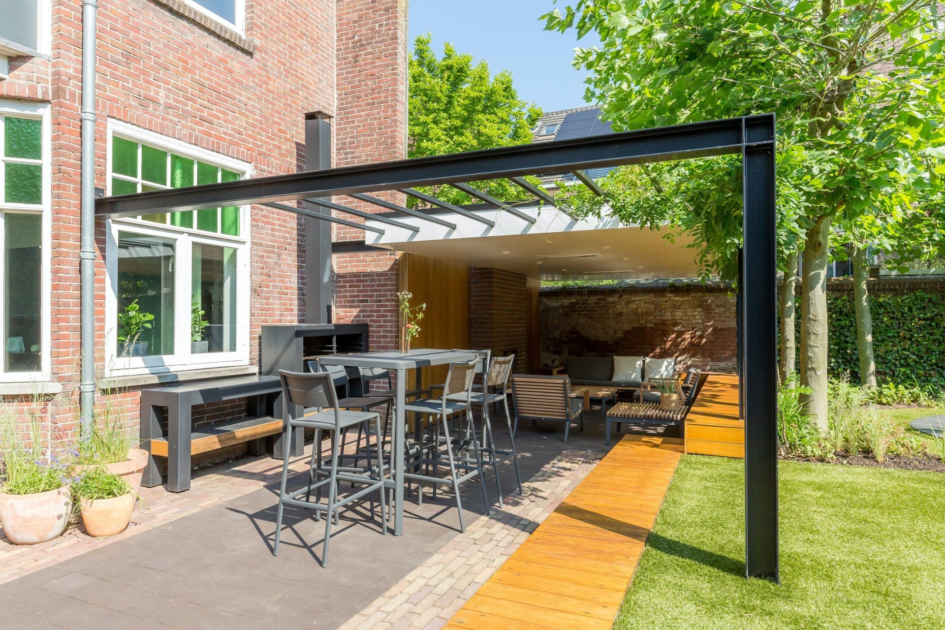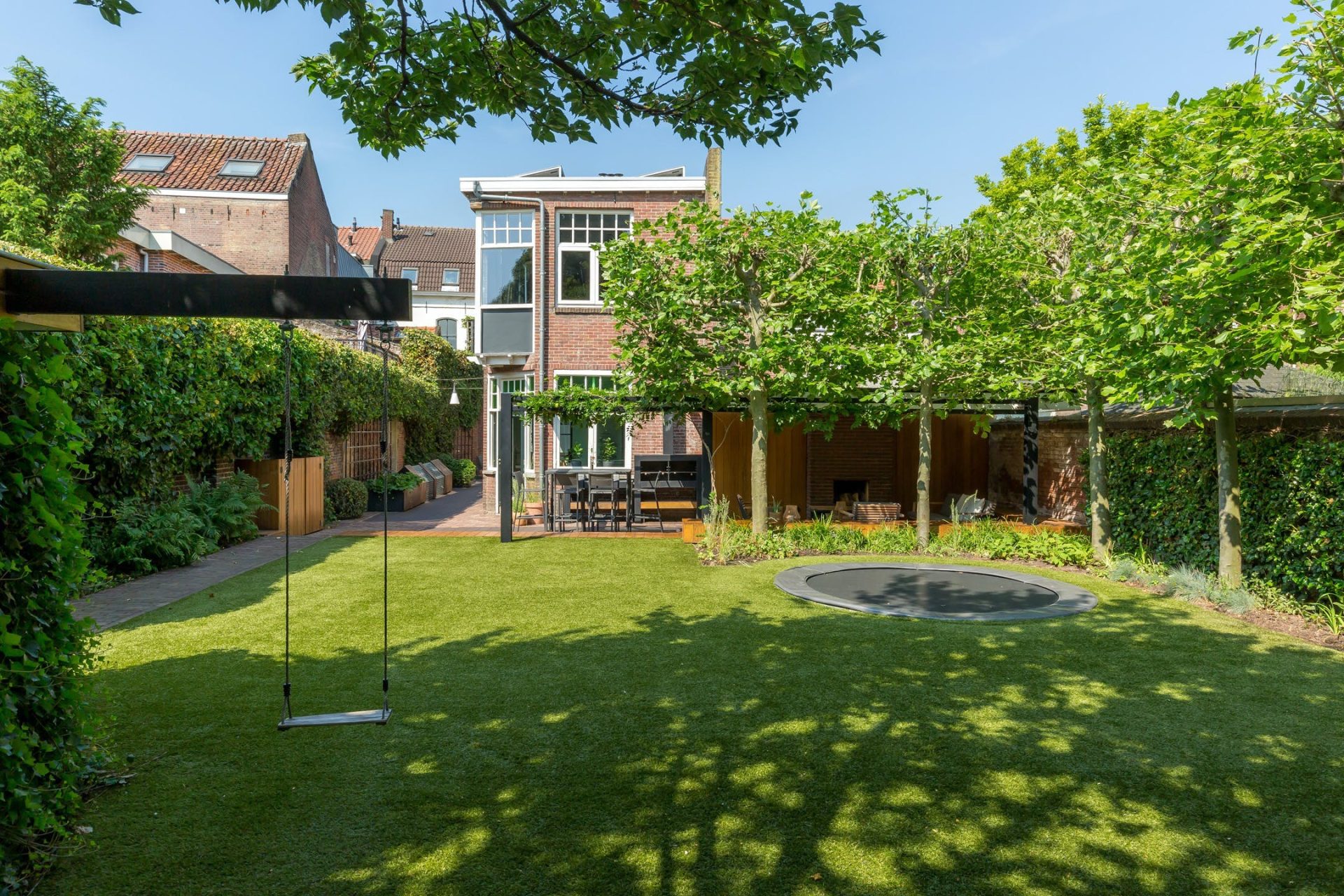 Verrassend is de grootte van de tuin die de kwalificatie van stadstuin ontstijgt. De tuin is circa 17 meter diep en 12 meter breed, doordat deze doorloopt achter nummer 8. Kinderen hebben alle ruimte om te spelen en de beplanting zorgt voor veel privacy. Bij de eetkamer en keuken is een fijn terras om te eten en het grote, overdekte terras is een heerlijke plek voor een loungeset en een hoge (eet)tafel. In de hoek van de tuin, verscholen achter het groen, is een houten berging en via de poort kom je op een pad dat naar de Mariastraat leidt. Zo hoeven fietsen niet op straat te staan maar vinden zij een mooie plek in de berging.