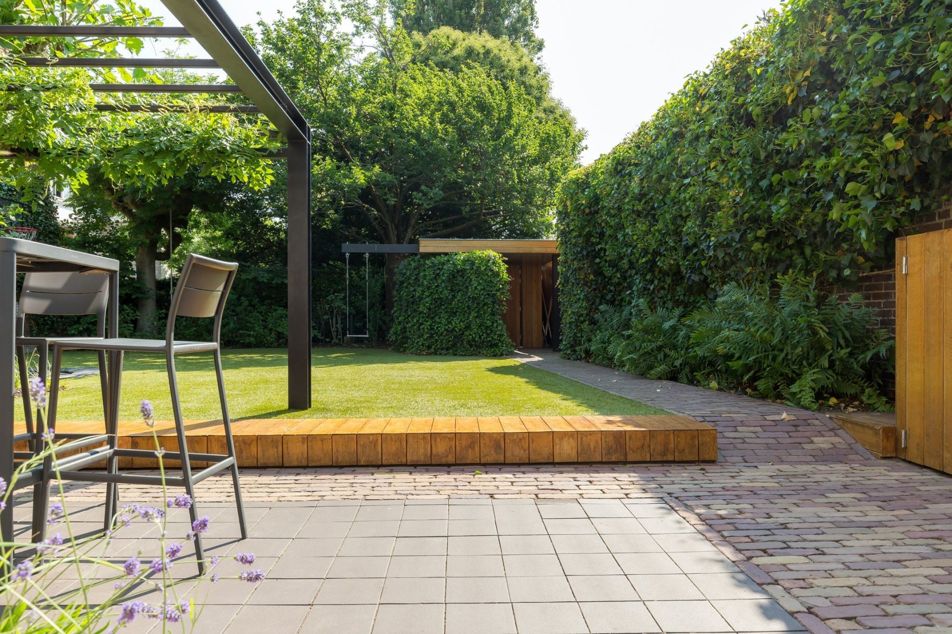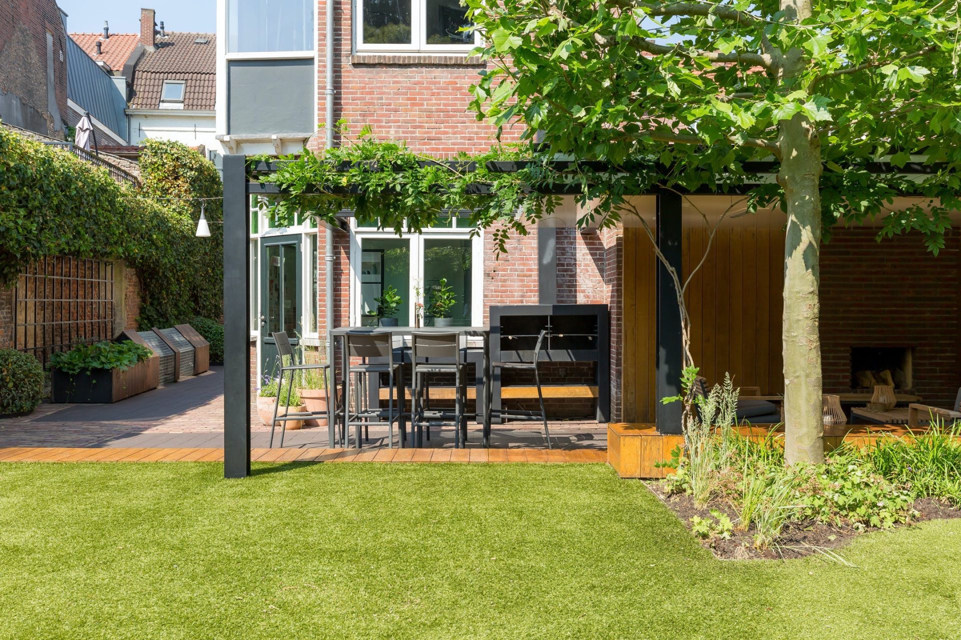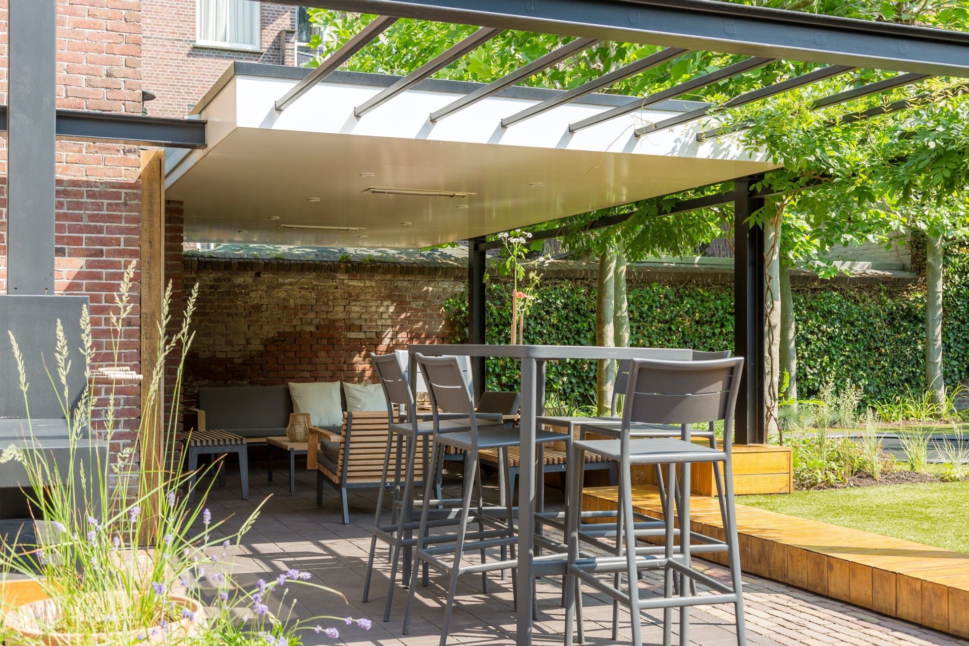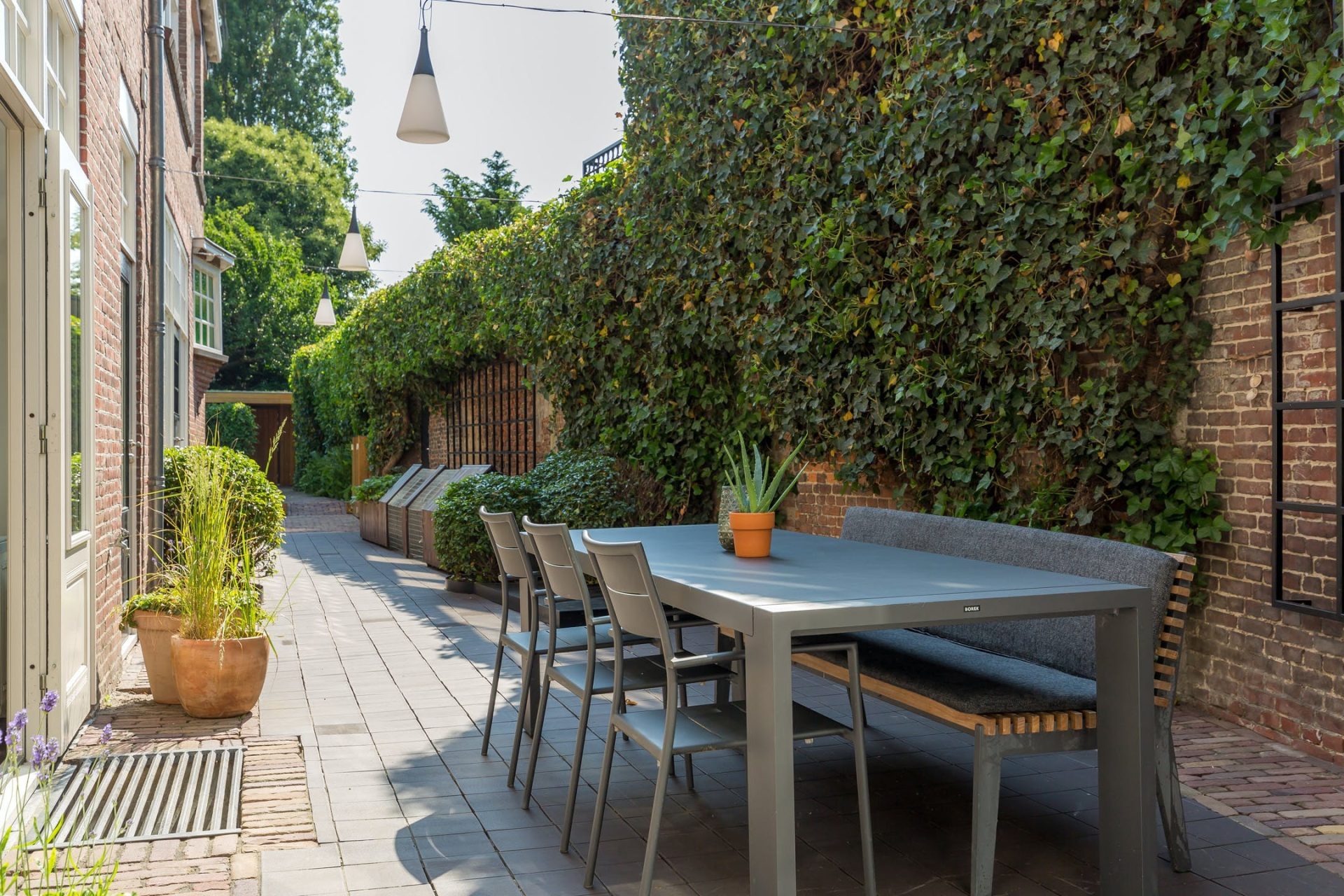 Verrassend is de grootte van de tuin die de kwalificatie van stadstuin ontstijgt. De tuin is circa 17 meter diep en 12 meter breed, doordat deze doorloopt achter nummer 8. Kinderen hebben alle ruimte om te spelen en de beplanting zorgt voor veel privacy. Bij de eetkamer en keuken is een fijn terras om te eten en het grote, overdekte terras is een heerlijke plek voor een loungeset en een hoge (eet)tafel. In de hoek van de tuin, verscholen achter het groen, is een houten berging en via de poort kom je op een pad dat naar de Mariastraat leidt. Zo hoeven fietsen niet op straat te staan maar vinden zij een mooie plek in de berging.