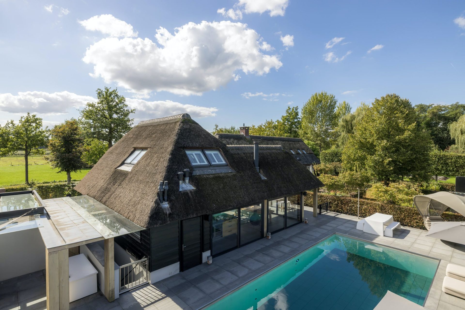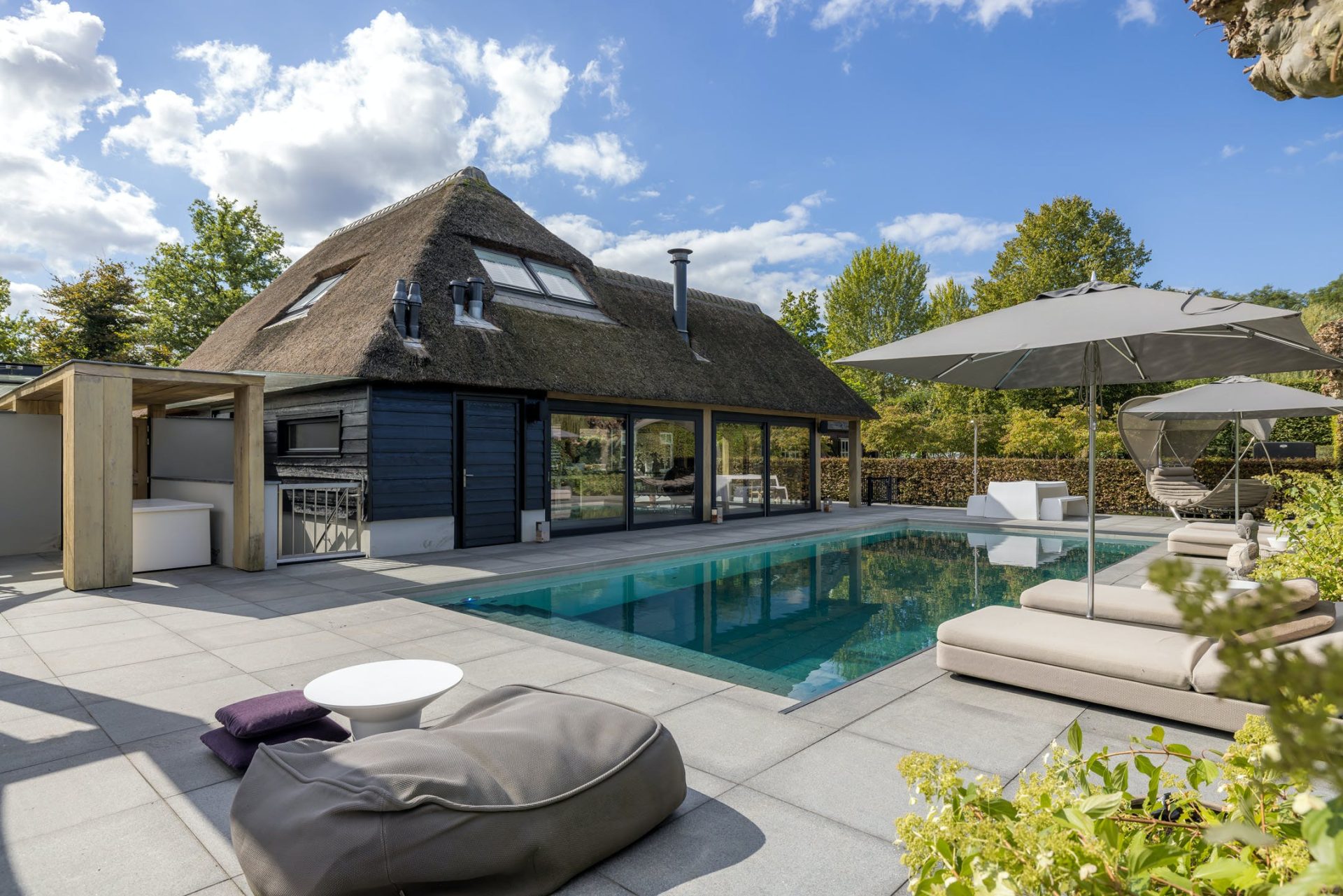 “Vivat Crescat Floreat”; leef, geloof en bloei! Het landelijke karakter van deze typische Brabantse langgevelboerderij vormt hier een perfecte combinatie met de luxe en het wooncomfort van nu. Op een prachtige plek net buiten Sint-Oedenrode staat deze in 2003 herbouwde woonboerderij op een perceel van maar liefst 3.360 m². Aan de rechterzijde is enkele jaren later een groot bijgebouw gerealiseerd met daarin een tweede woning/annex gastenverblijf en zeer exclusieve wellness-faciliteiten in het souterrain. Het buitenzwembad, de prachtig aangelegde tuin en optimale privacy zorgen ervoor dat het u hier aan niets ontbreekt.