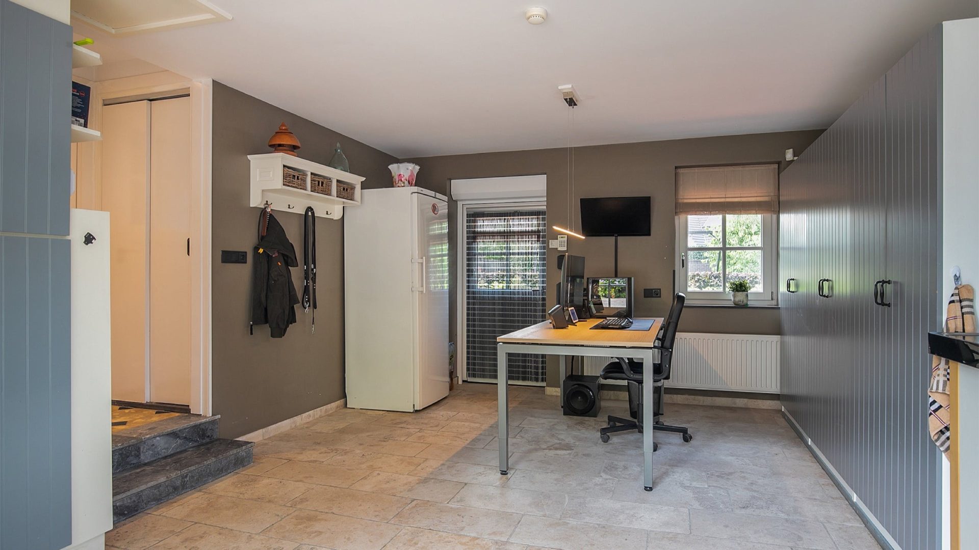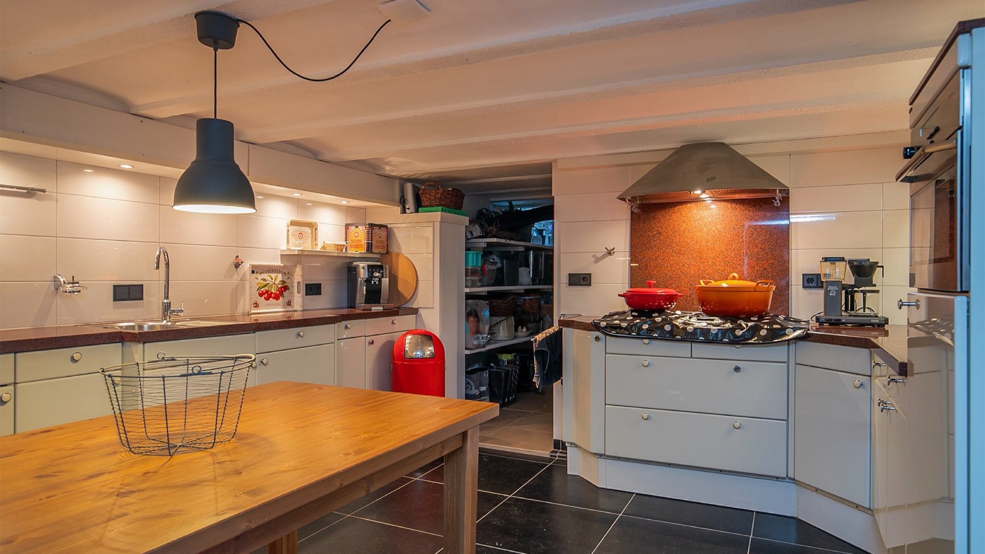Aansluitend aan de keuken is een praktische bijkeuken aanwezig.