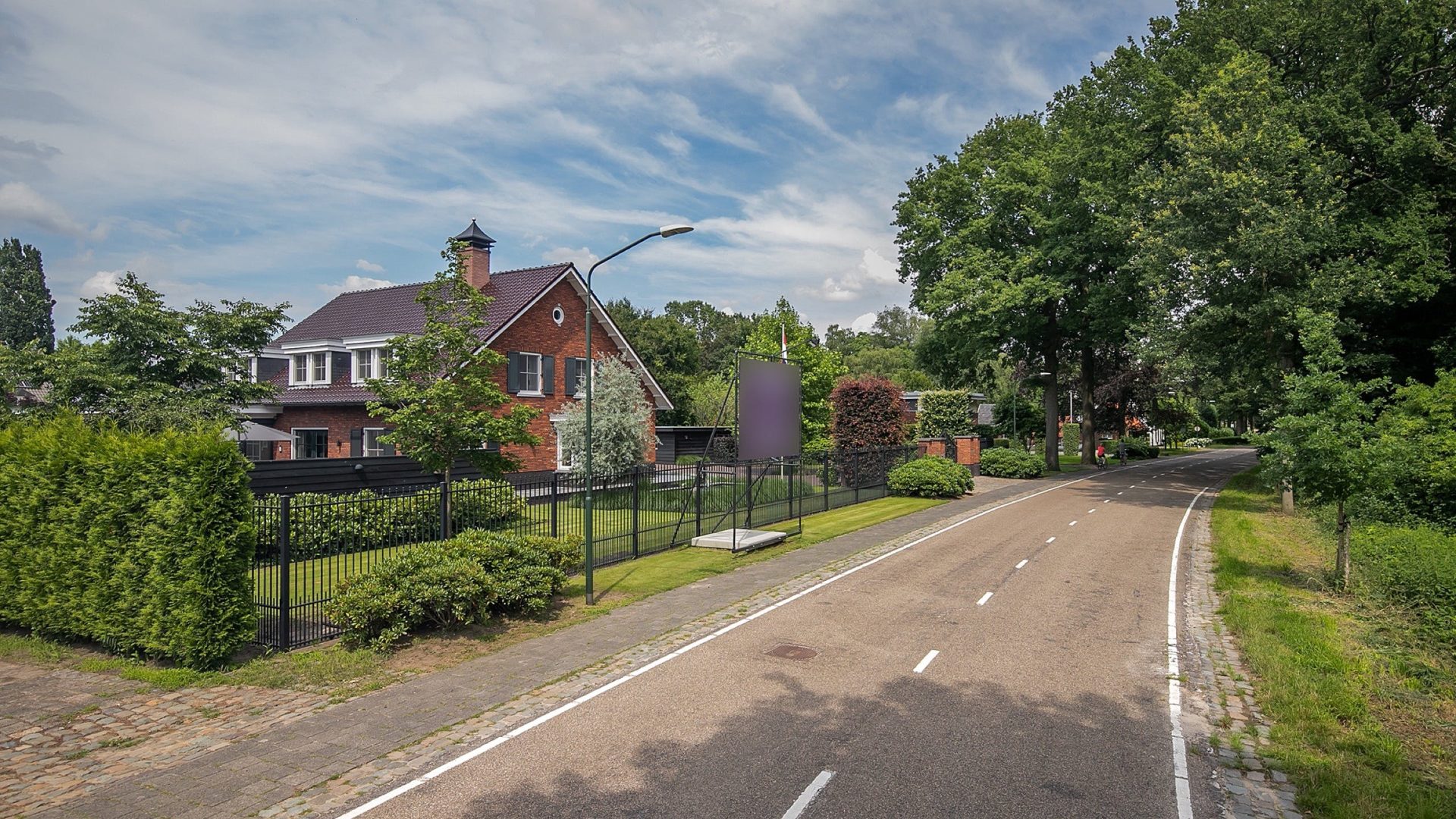 Aan de voorzijde van de villa is een statig hekwerk, een ruime oprit met twee fietspoortjes en een elektrische hoofdpoort die via video/ intercom (Siedele) kan worden geopend of gesloten.