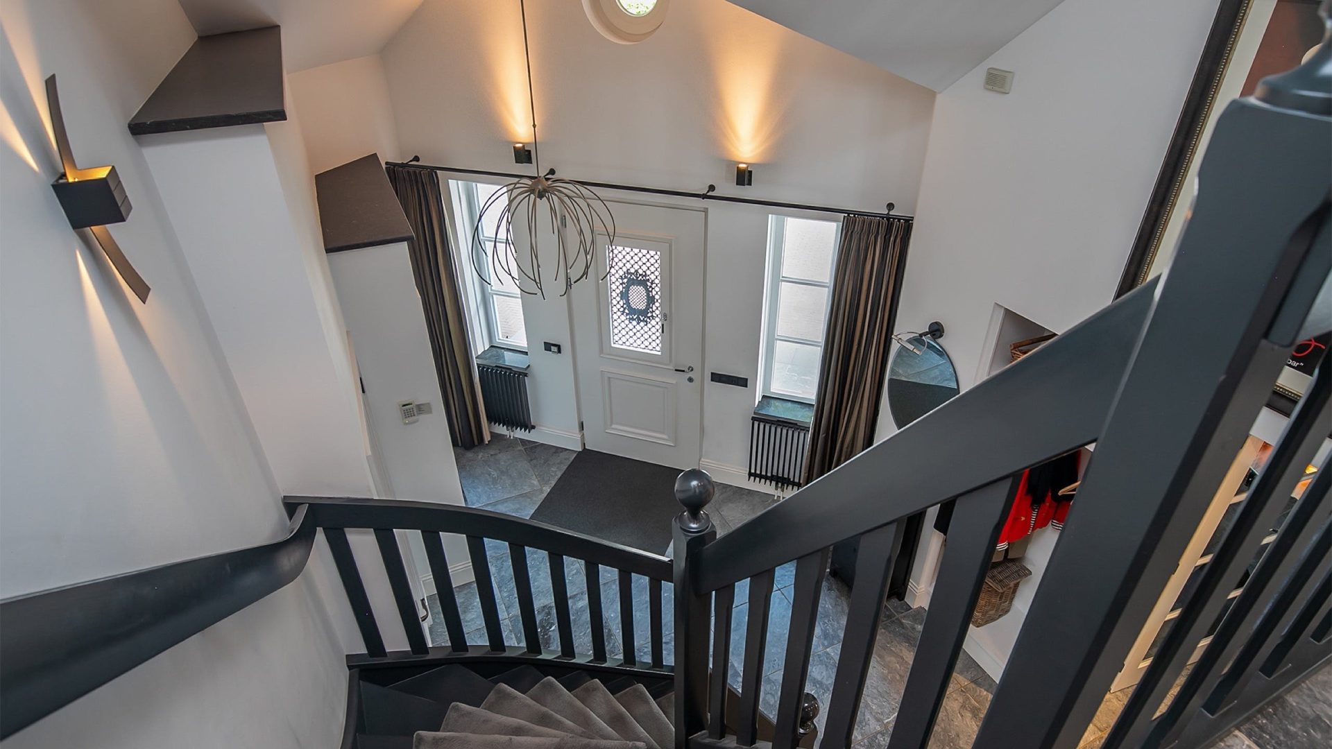 Via een statige entree met vide betreedt u de villa. In de hal zijn een meterkast en garderobe kasten aanwezig.