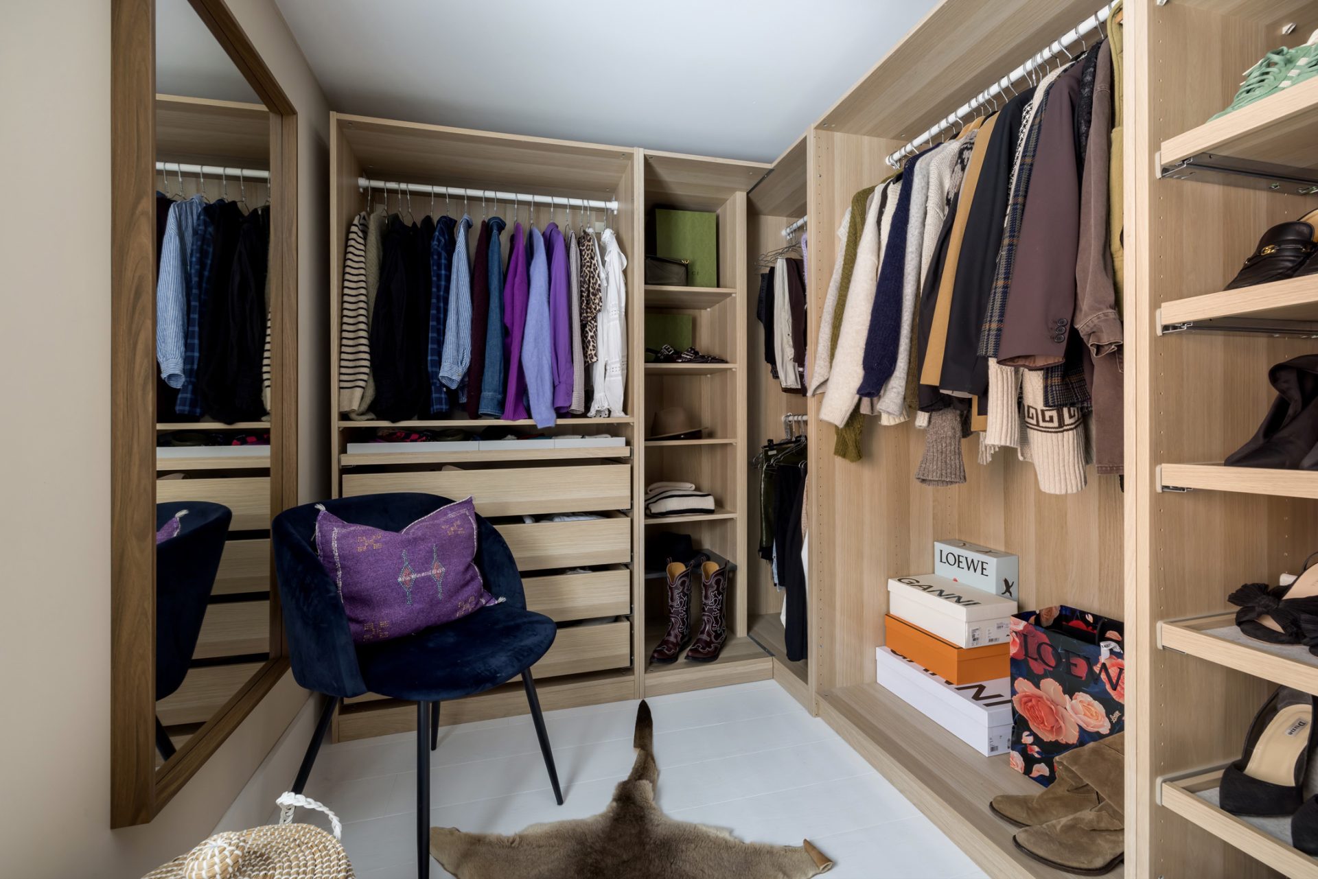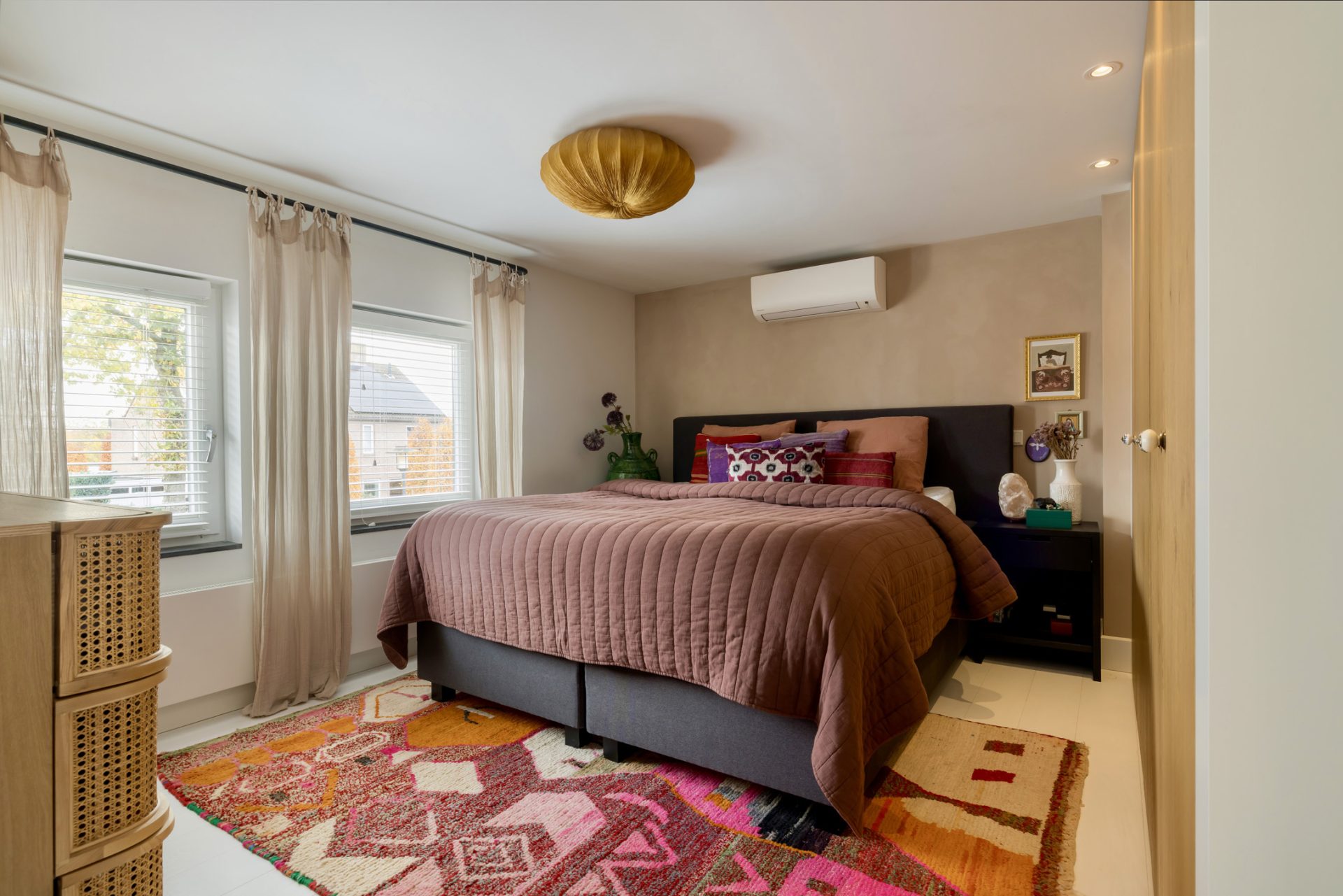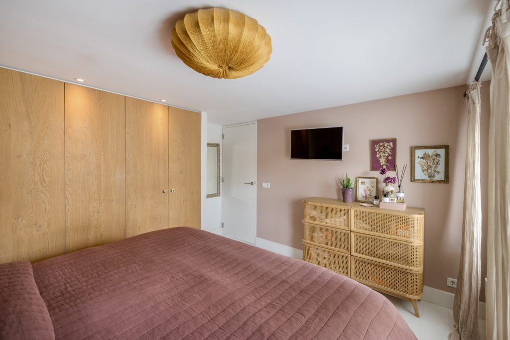 De master bedroom met airco en grote kastenwand bevindt zich aan de voorzijde, terwijl de slaapkamer aan de achterzijde een geweldige kinderkamer is. In de walk in closet heeft de interieurbouwer vakwerk geleverd, met brede lades en vakken om je favoriete schoenen een prominente plek te geven.