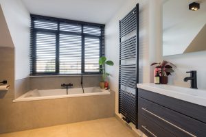 Op deze verdieping bevinden zich twee volwaardige slaapkamers: één van circa 15 m² met dakkapel en inbouwkast, en een tweede kamer van circa 17 m² over de volle breedte, eveneens voorzien van een dakkapel. De tweede badkamer is compleet uitgerust met een ligbad, inloopdouche, wastafelmeubel, toilet en designradiator.