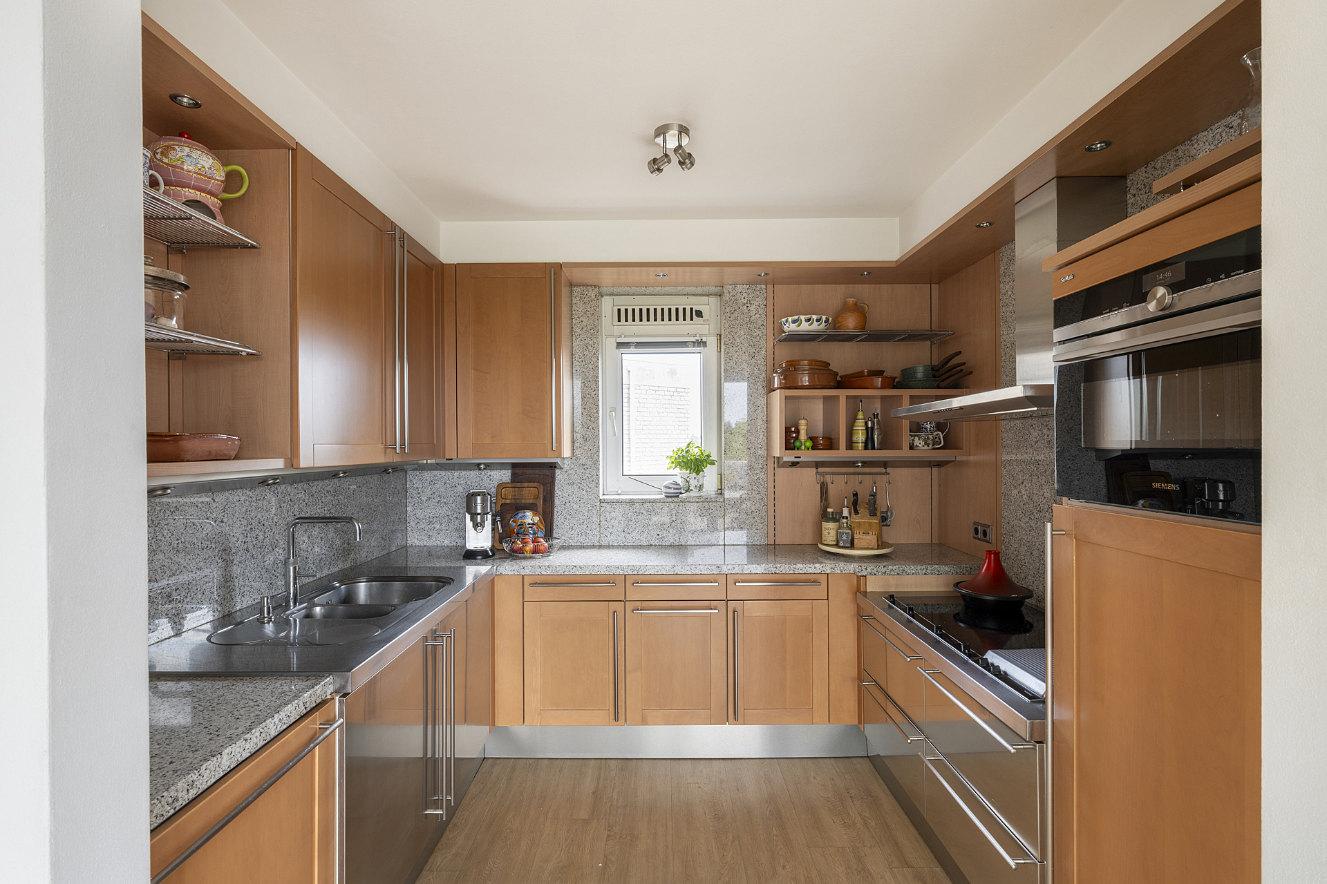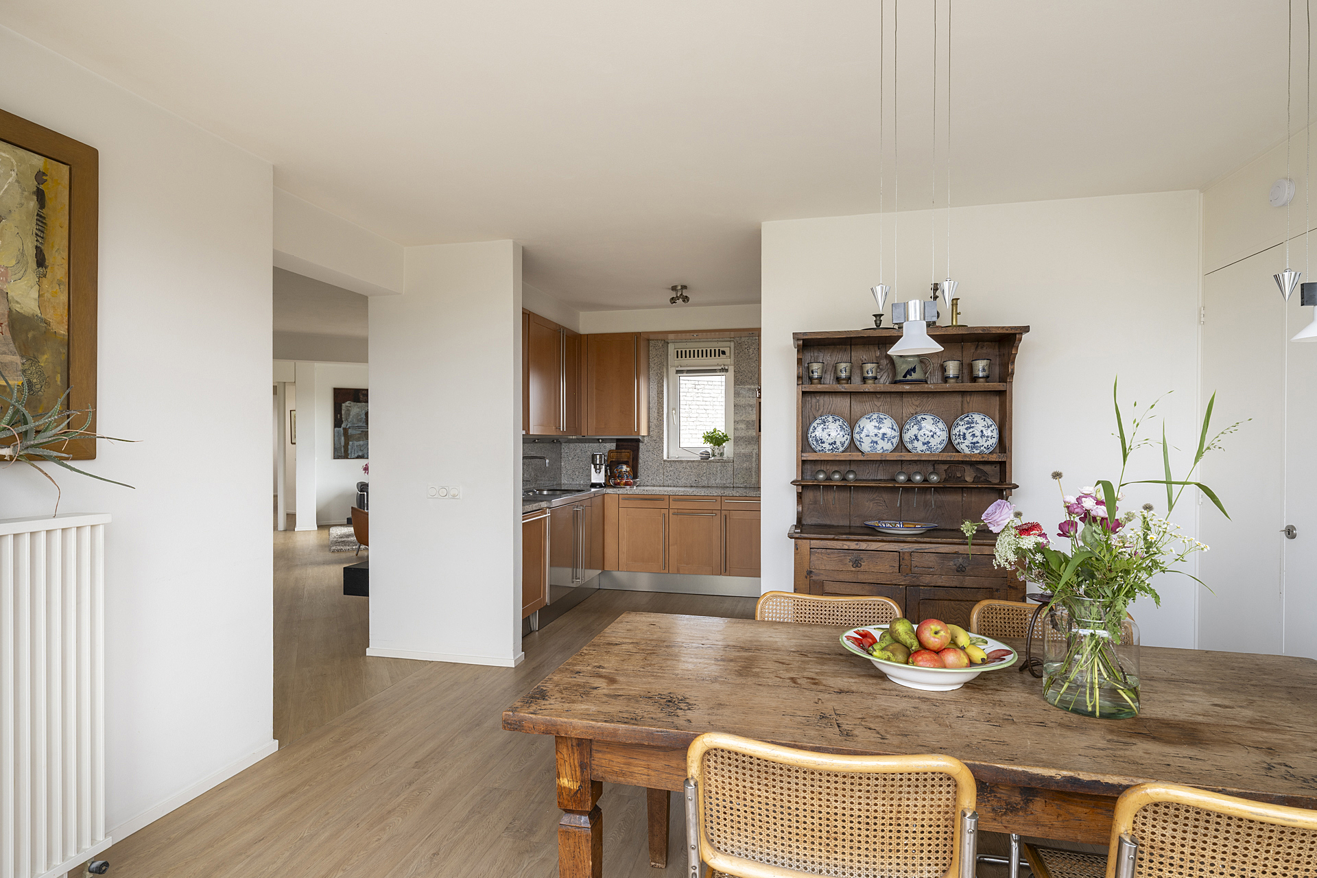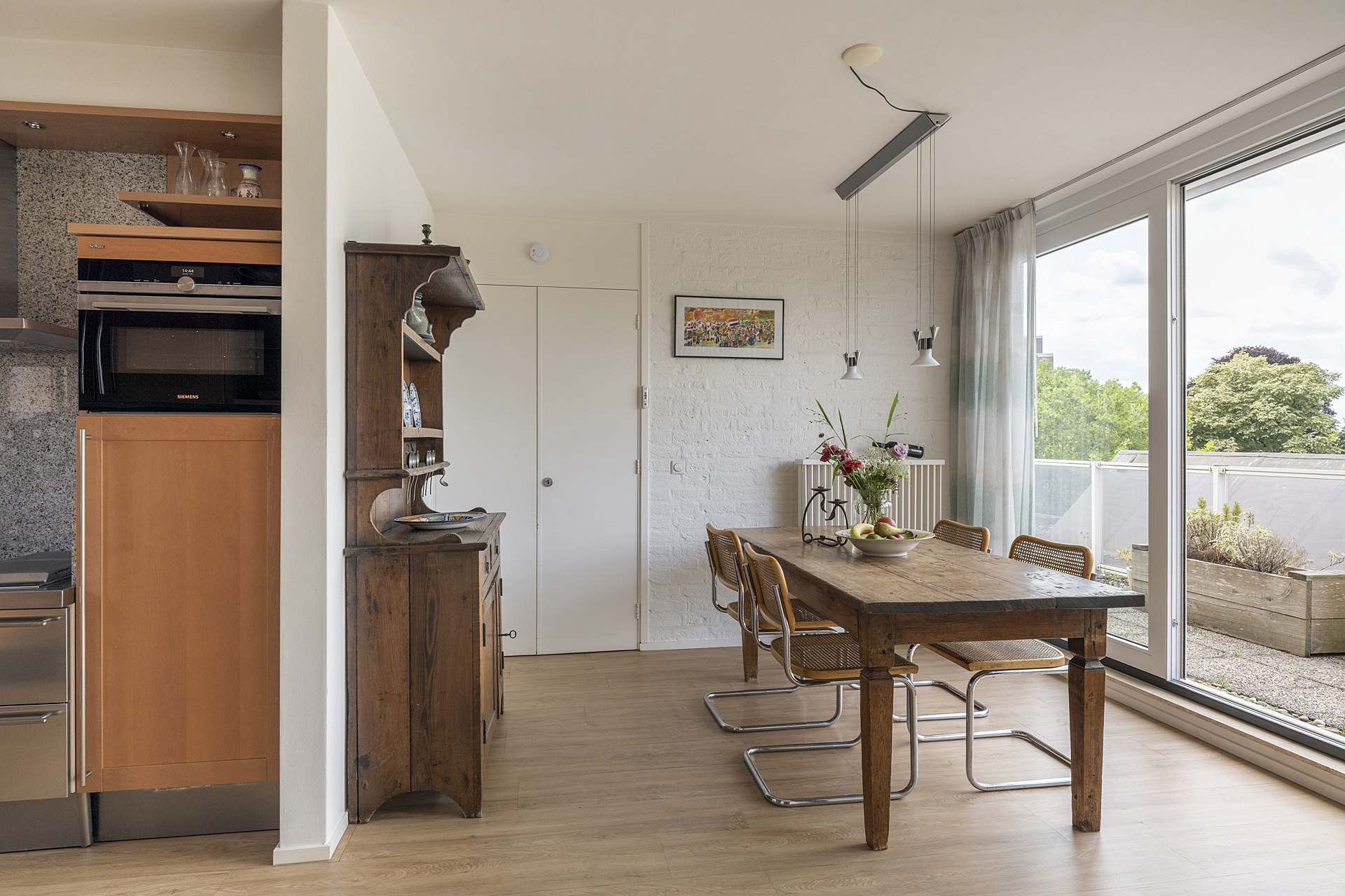 Vanuit de woonkamer loopt u de eetkamer en keuken in, waar koken en lekker eten centraal staan. Bij het eetgedeelte is een schuifpui naar het tweede balkon, op het zonnige westen, en de keuken is ingericht met een U-opstelling. Een deel van de apparatuur is in de periode 2017-2022 vernieuwd.