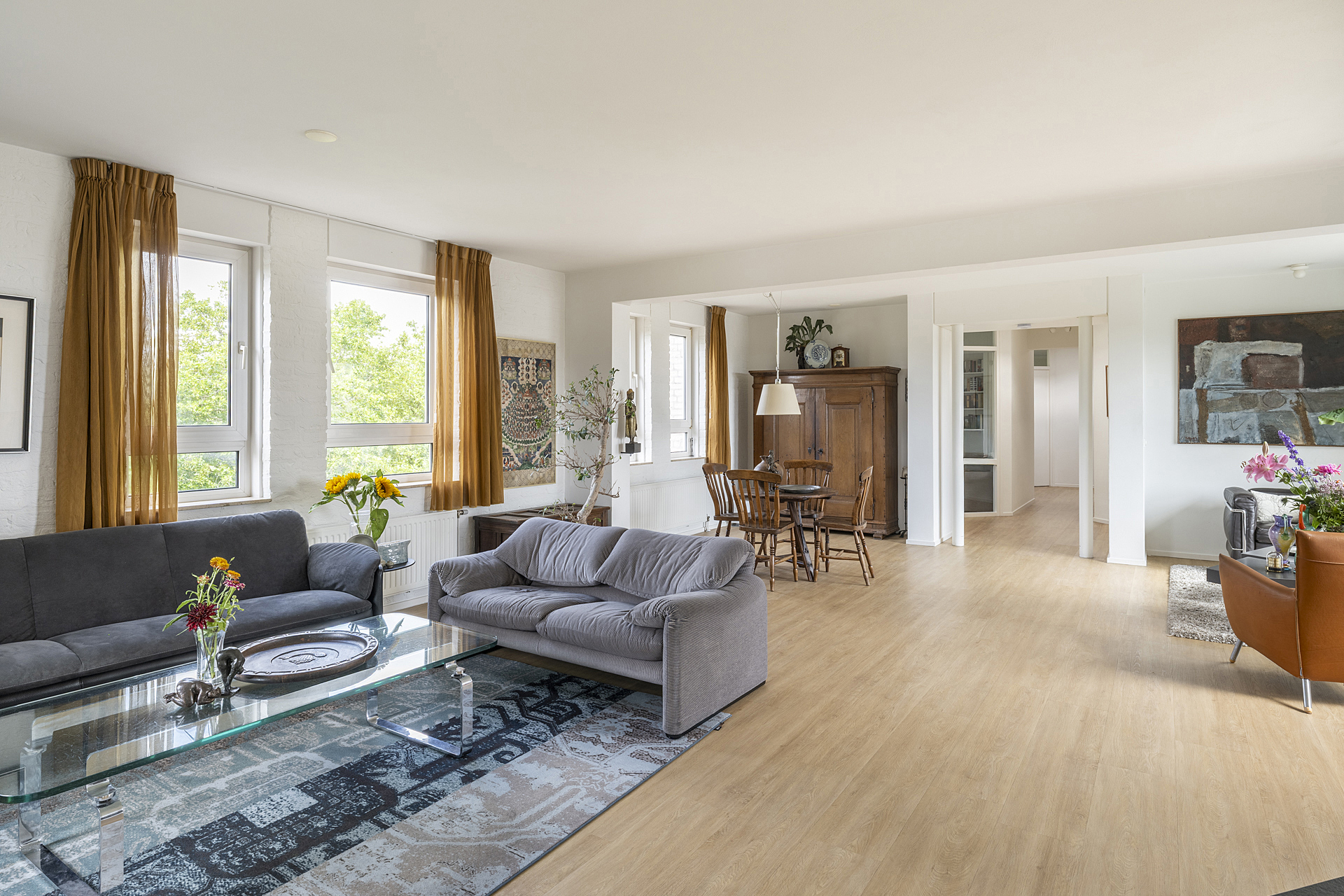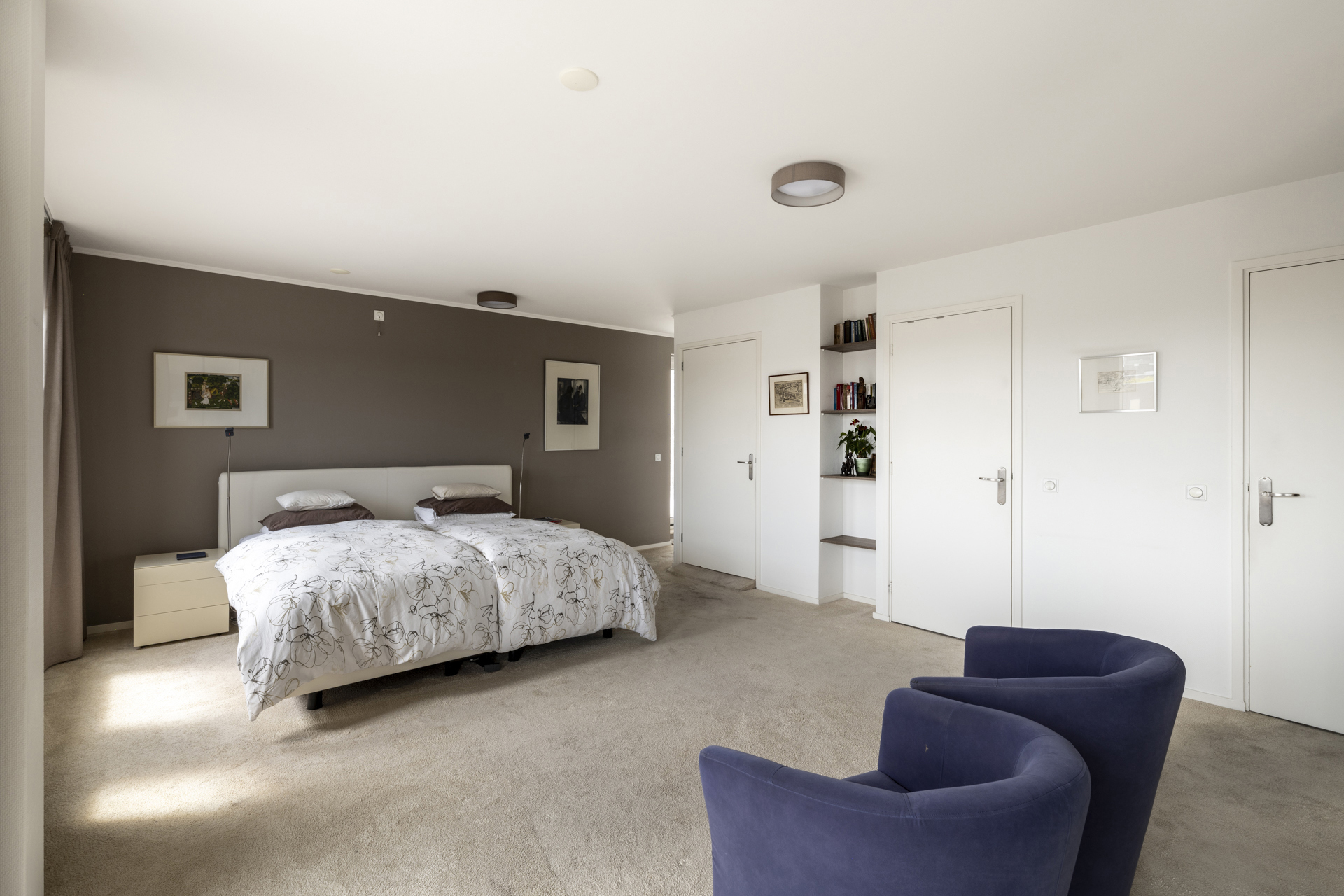 Dit zeer royale appartement heeft drie slaapkamers en twee badkamers, perfect om in de stad te wonen en gasten te ontvangen. De master bedroom met kleedruimte en eigen badkamer bevindt zich aan de achterzijde, met toegang tot een balkon op het zuiden.