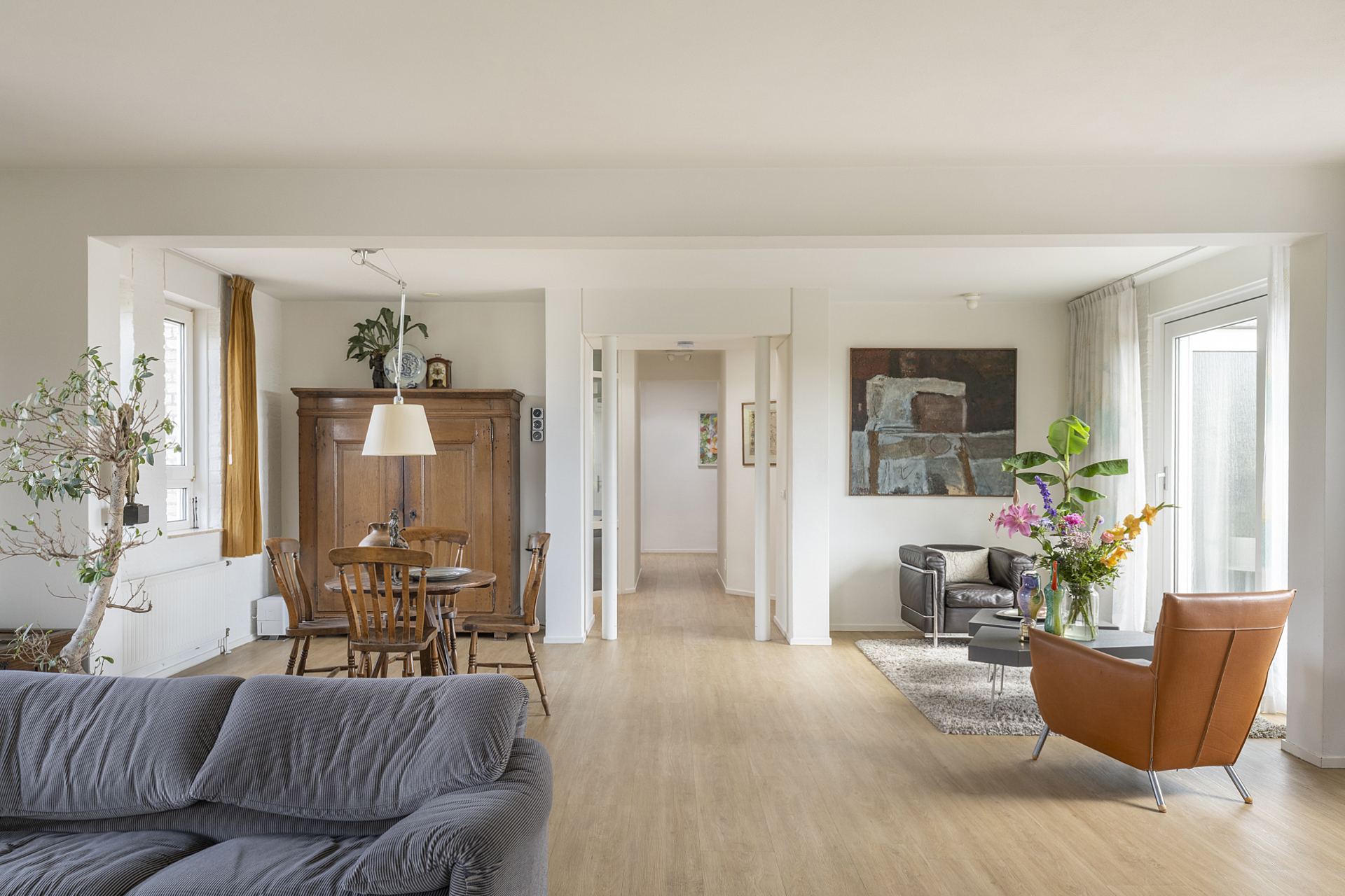 Aan het einde van de hal loopt u de woonkamer in, met prachtig uitzicht over dit mooie stukje Eindhoven. De leefruimte is goed in te delen met een zit- en een eethoek, zonder dat de ruimte vol oogt. Een schuifpui verbindt de woonkamer met een van de balkons, gesitueerd op het oosten.