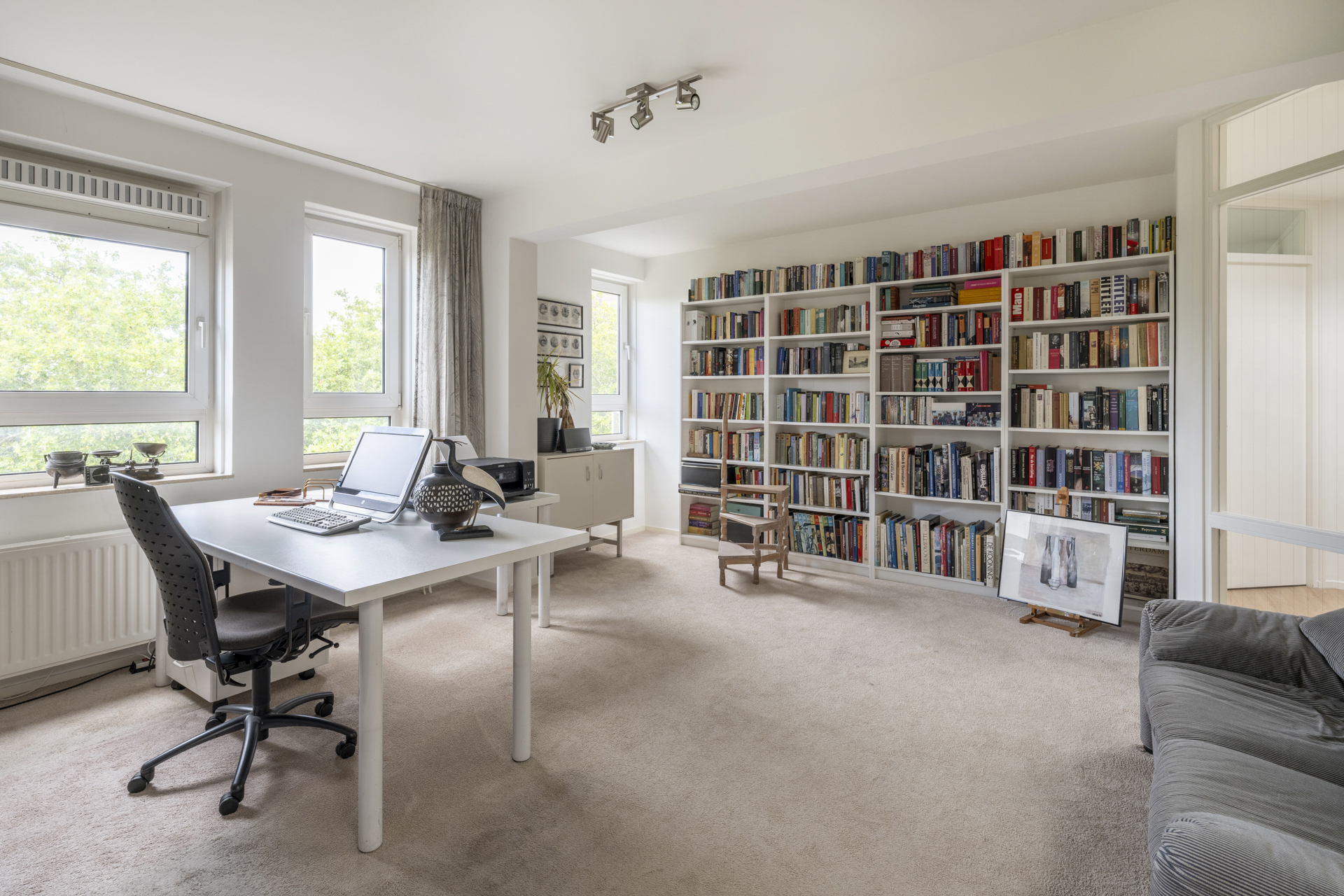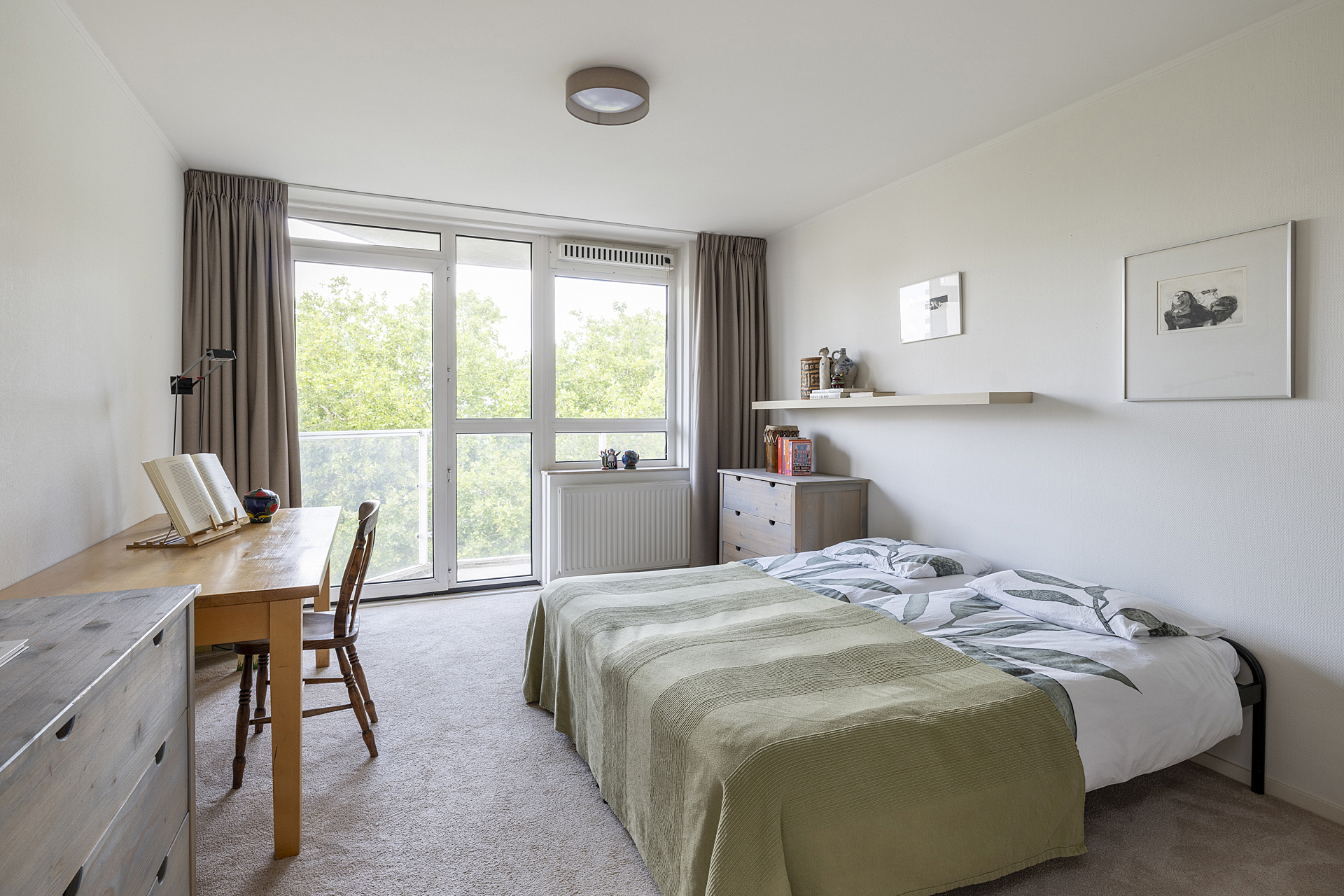 Aan de koele noordzijde zijn twee slaapkamers, waarvan een in gebruik is als werk-/studeerkamer. Door de grote ramen kijkt u naar een rij prachtige bomen, die naast de Sint-Joriskerk staan. Een van deze slaapkamers heeft een eigen badkamer en toegang tot het vierde balkon.