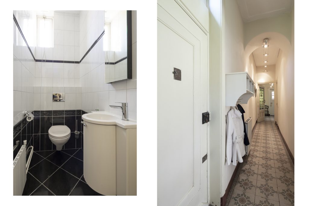 Trots hangt het wit-blauwe schild van Gemeentelijk Monument naast de prachtige, statige entree. Bewonder de kleurrijke glas-in-loodramen en open de voordeur naar de vestibule, die in verbinding staat met de hal. Hoge balkenplafonds, de mozaïek tegelvloer en roomwitte paneeldeuren met kleurrijk glas in lood zorgen voor een ontvangst in stijl.