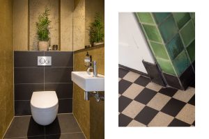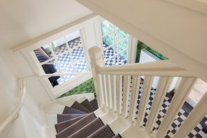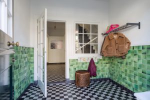 De hal met vestibule is een prachtige ontvangstruimte, boordevol karakter. Op de trap ligt een donkere loper, de originele wand- en vloertegels zijn behouden en het daglicht stroomt rijkelijk naar binnen. Vanuit de hal is er onder andere toegang tot het gastentoilet en de wijn-/provisiekelder.