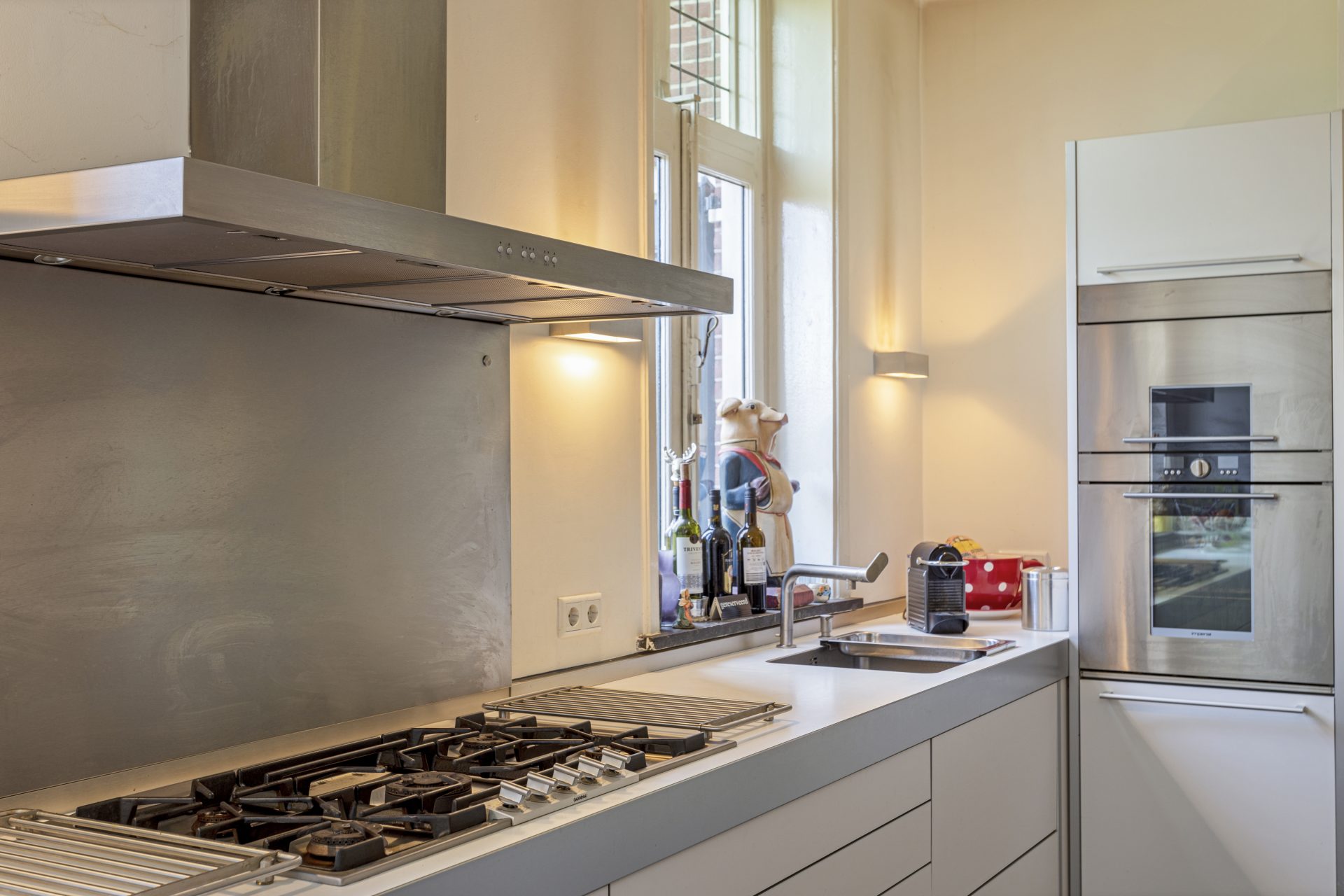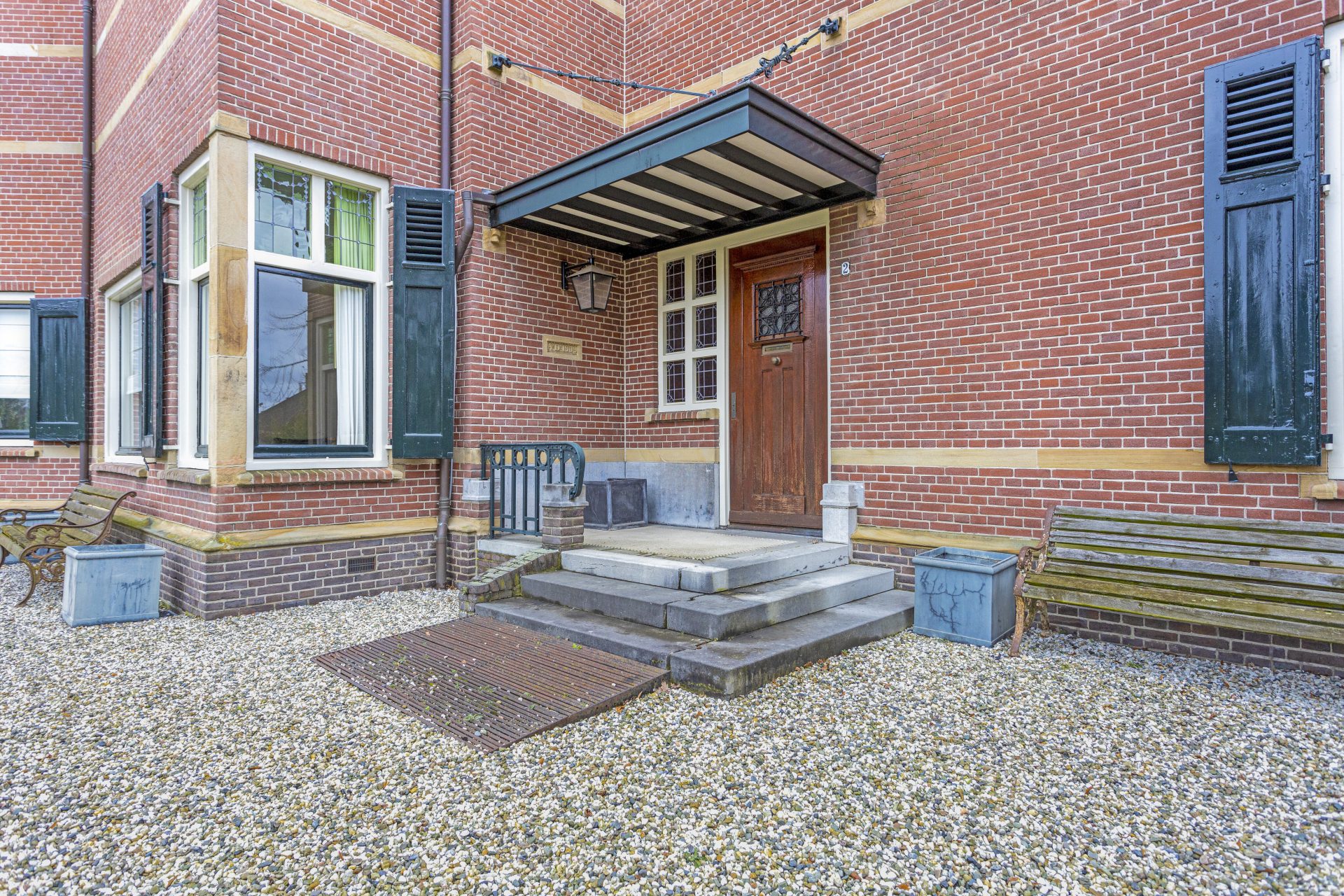 – Vele authentieke elementen zoals visgraatvloeren, glas-in-lood, uitkragende gootlijsten, hoge plafonds en buiten zandstenen speklagen